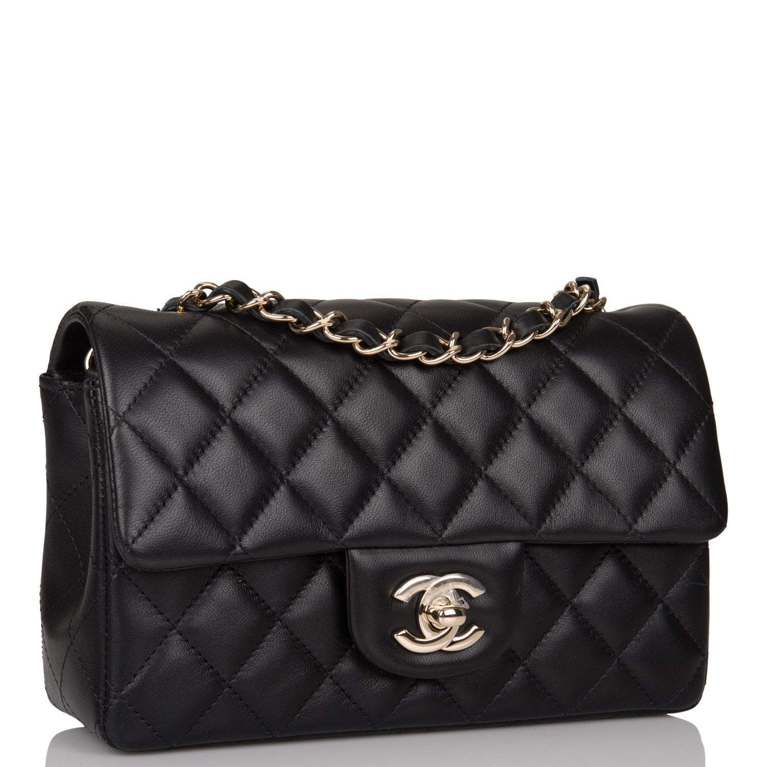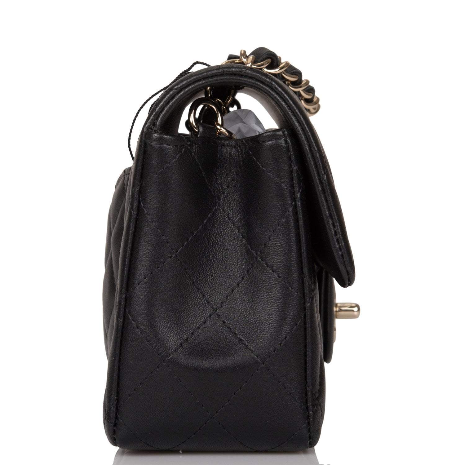 Chanel Black Quilted Lambskin Rectangular Mini Classic Flap Bag Light Gold Hardware