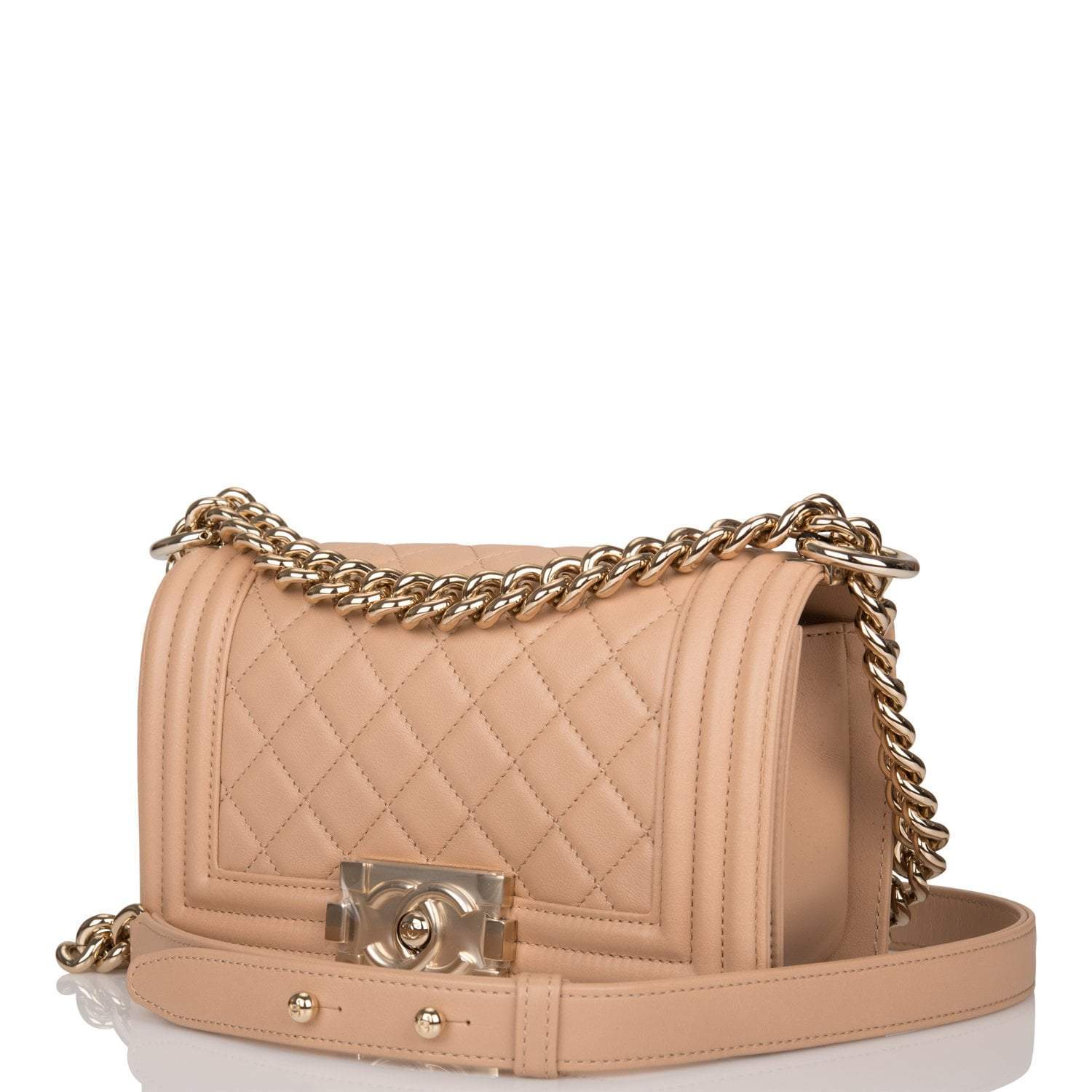 Chanel Camel Quilted Lambskin Small Boy Bag Light Gold Hardware