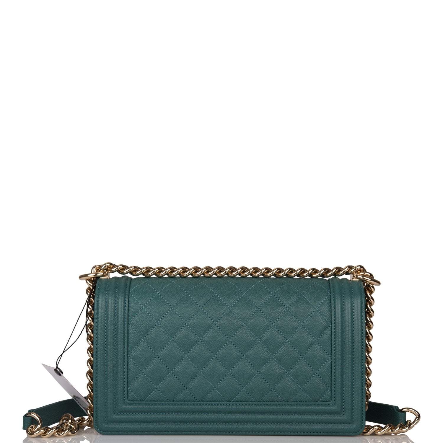 Chanel Green Quilted Caviar Medium Boy Bag Light Gold Hardware