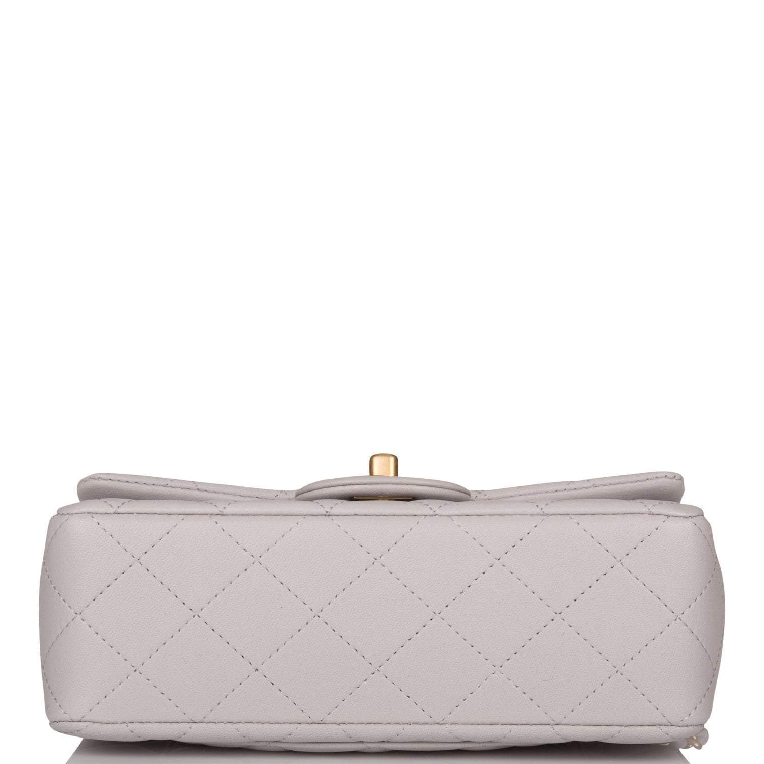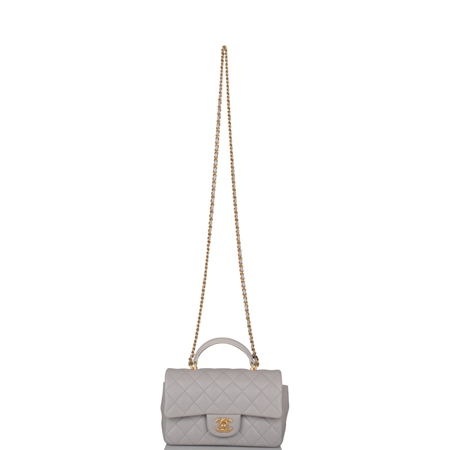 Chanel Grey Quilted Lambskin Rectangular Mini Flap Bag with Top Handle Antique Gold Hardware