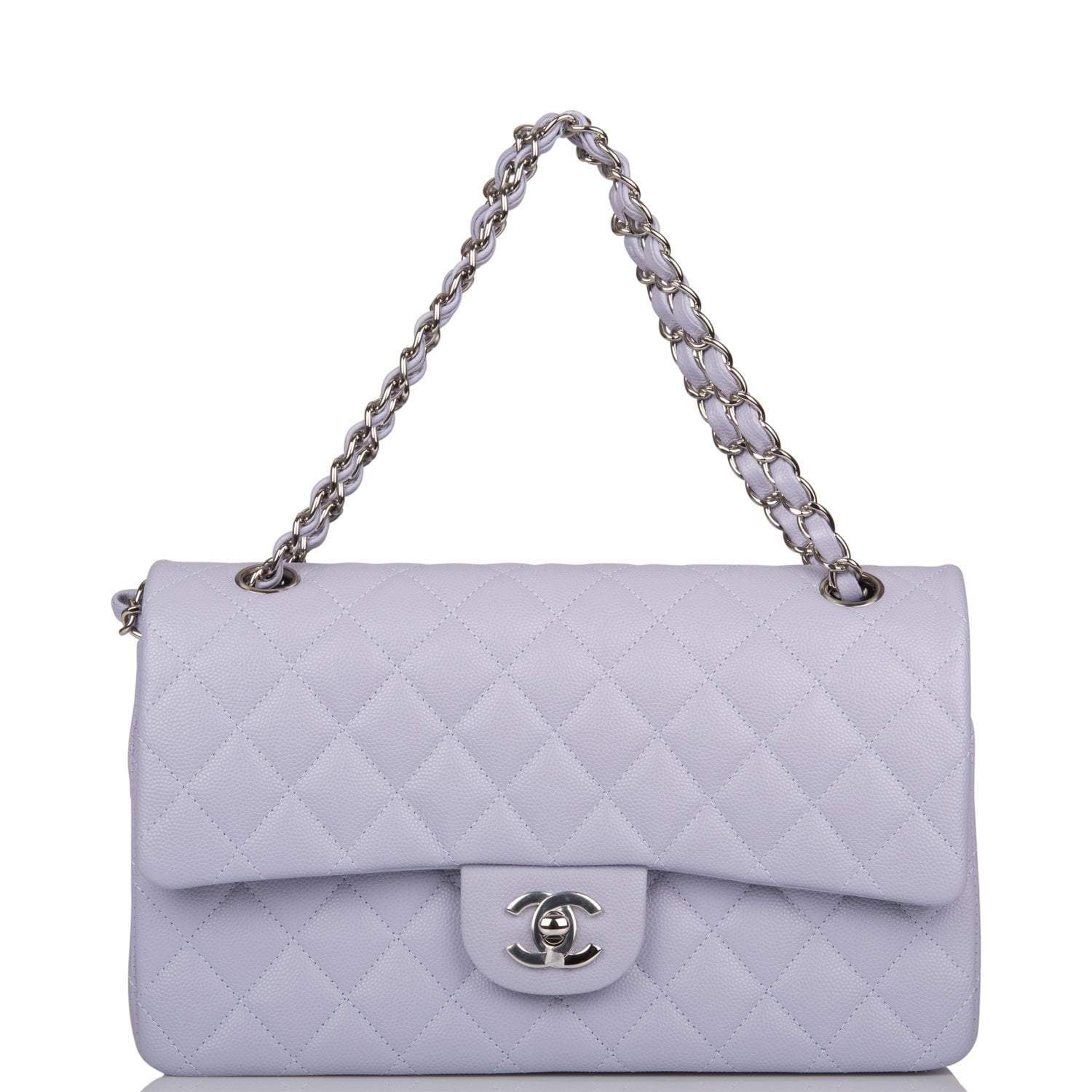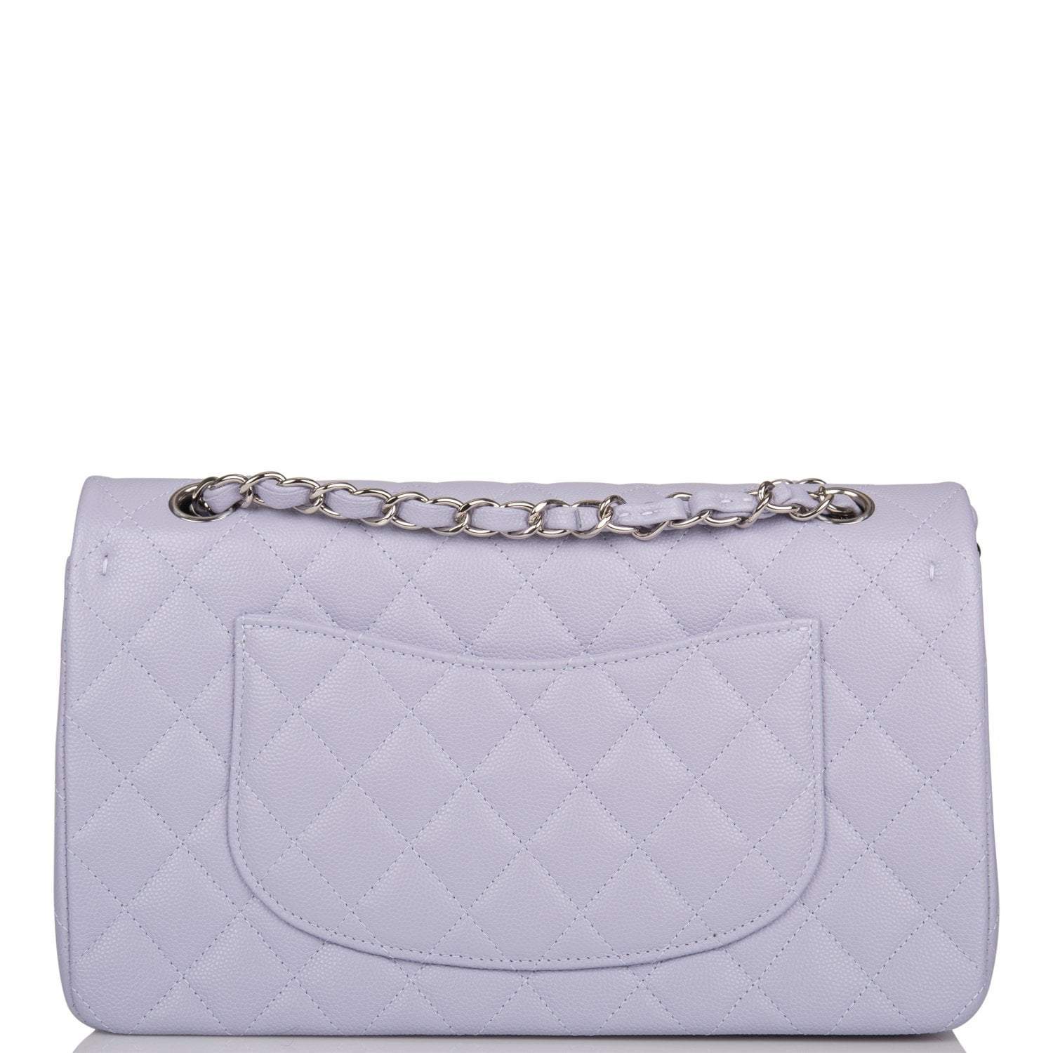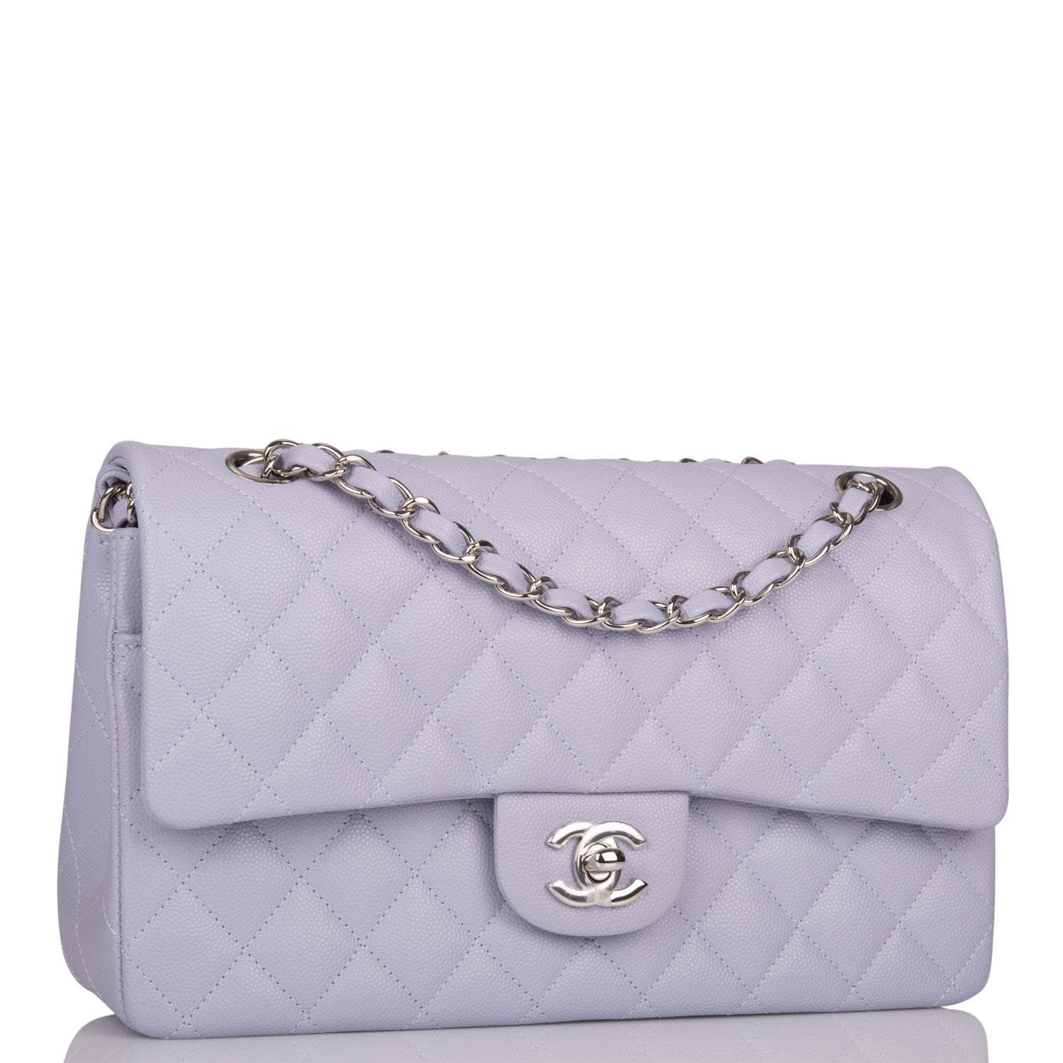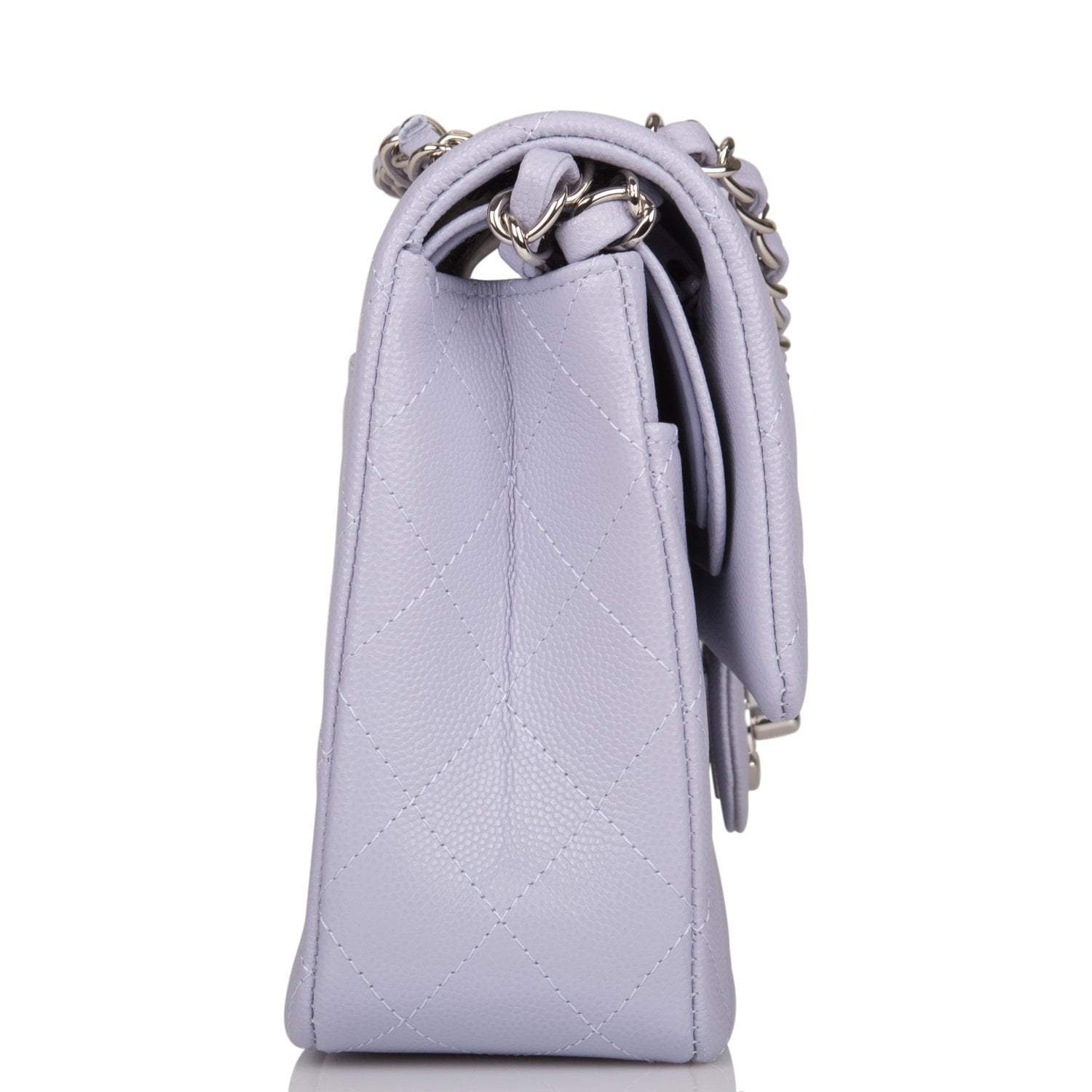 Chanel Medium Classic Double Flap Bag Lavender Quilted Caviar Silver Hardware
