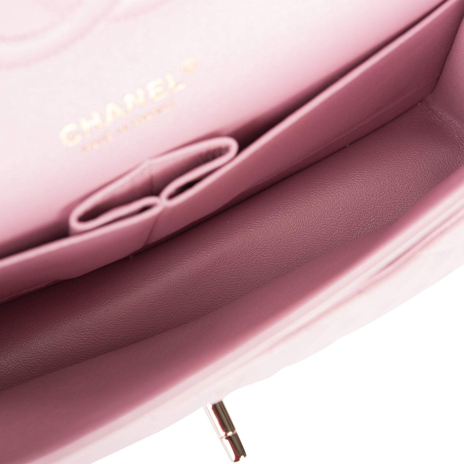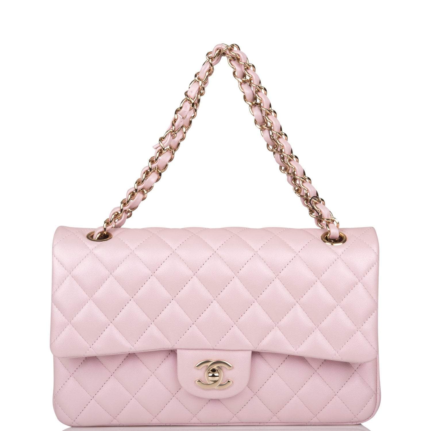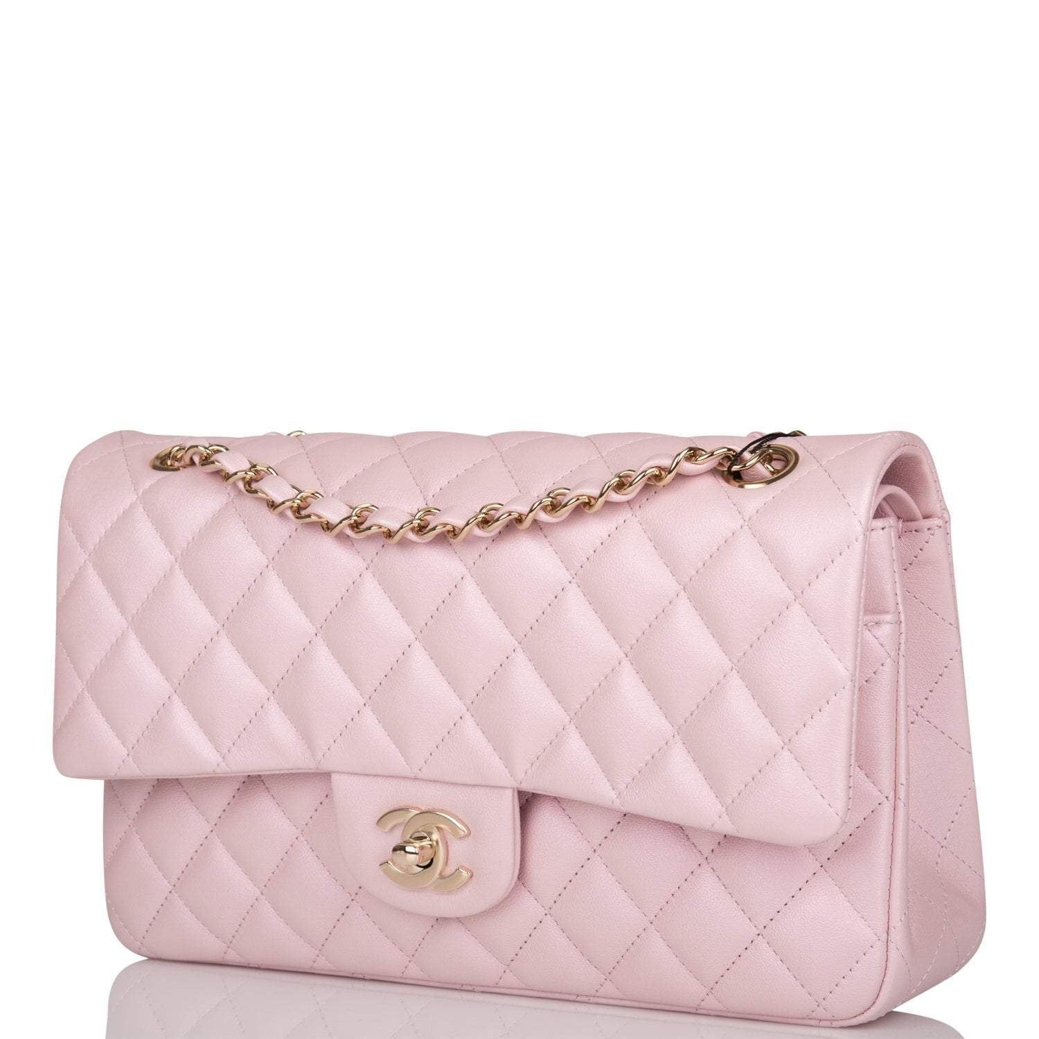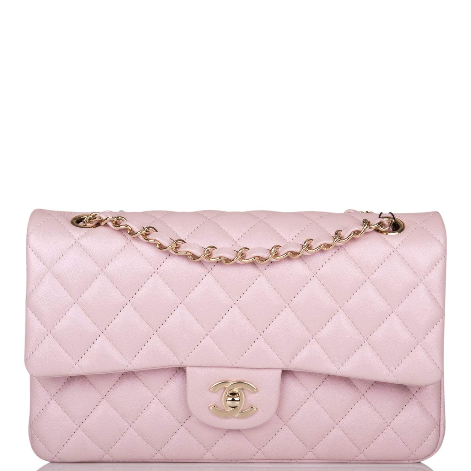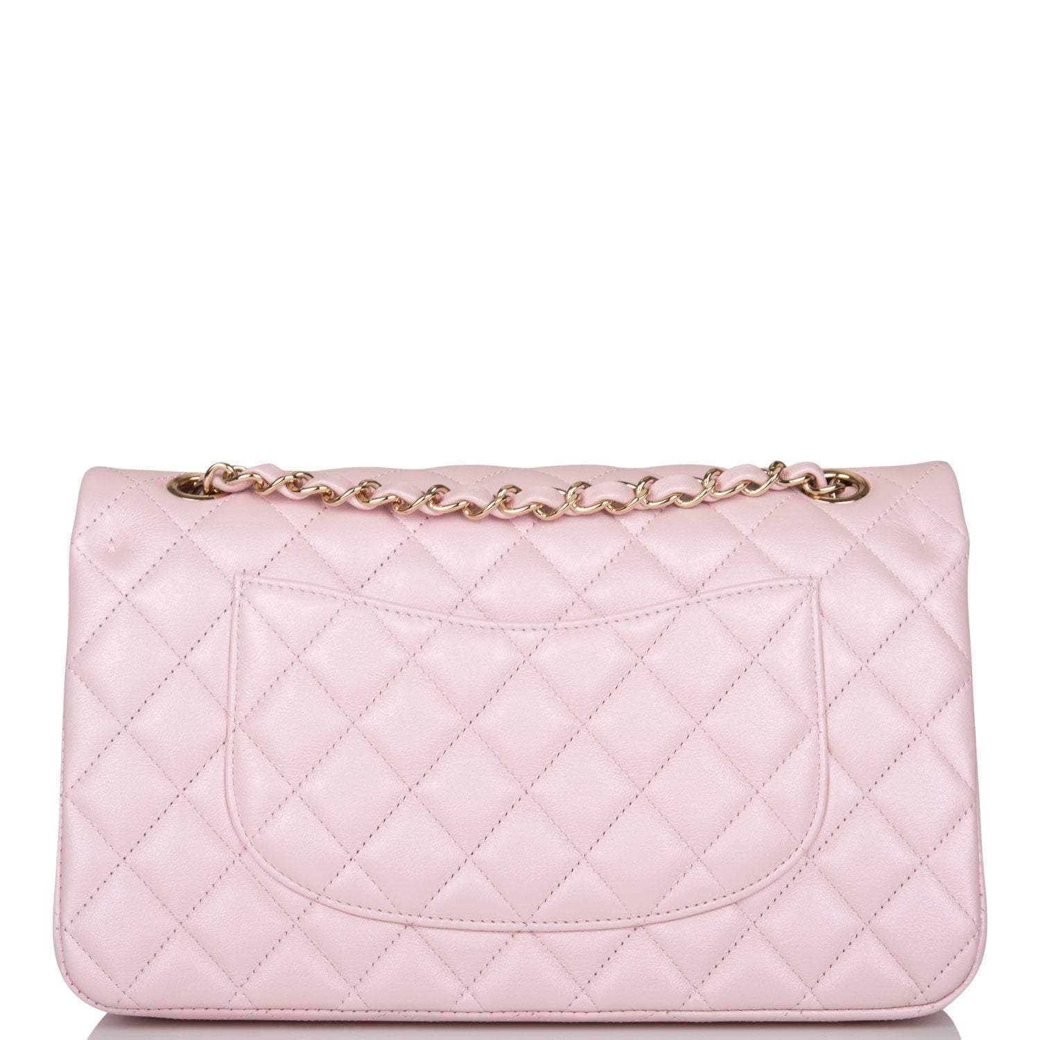 Chanel Medium Classic Double Flap Bag Pink Iridescent Lambskin Light Gold Hardware