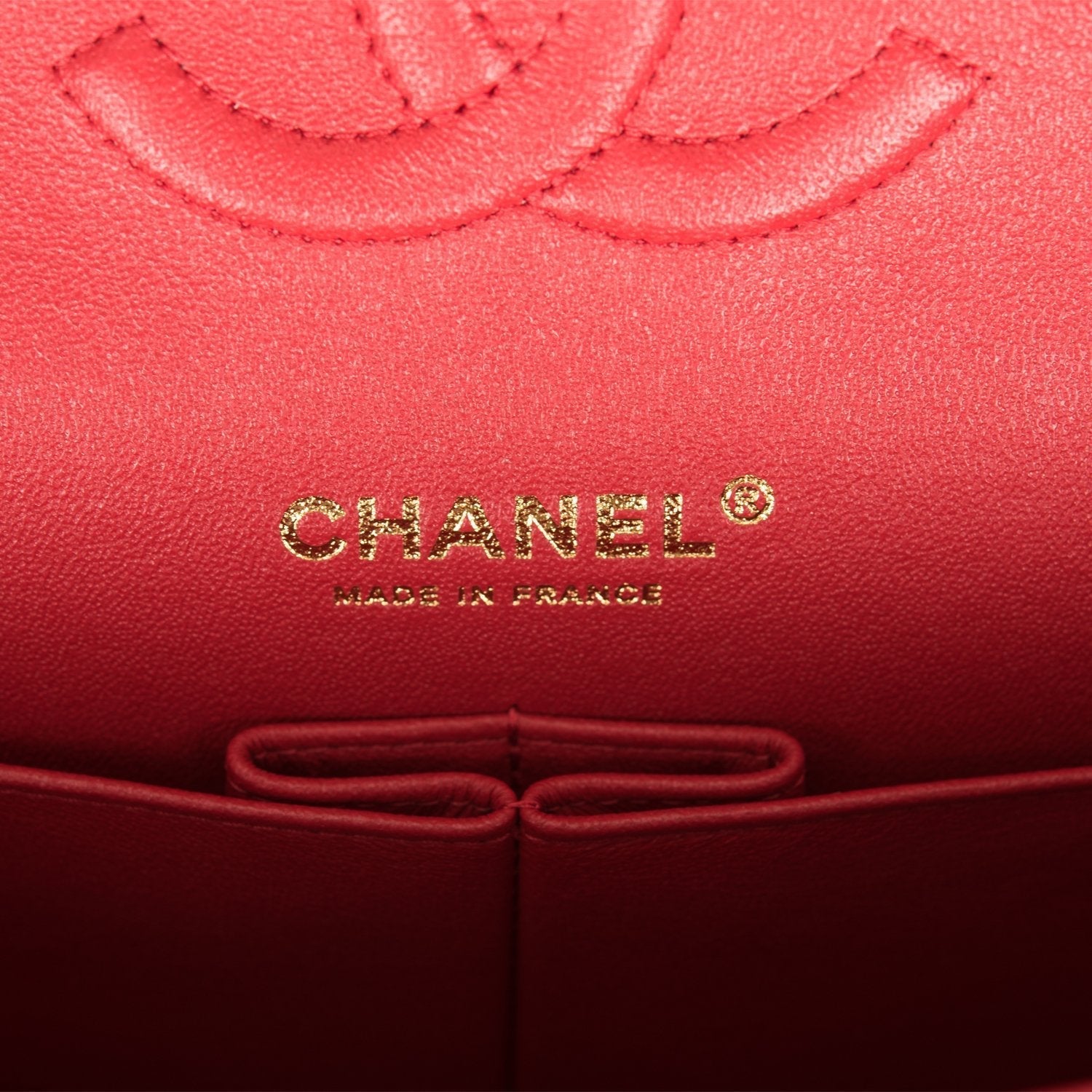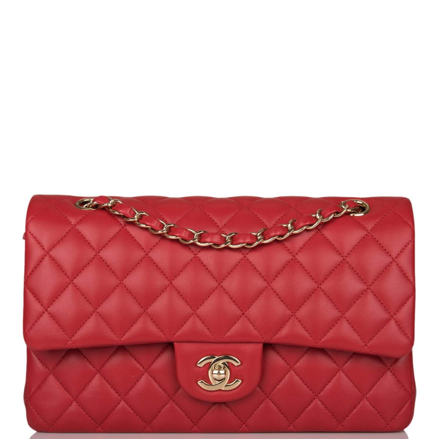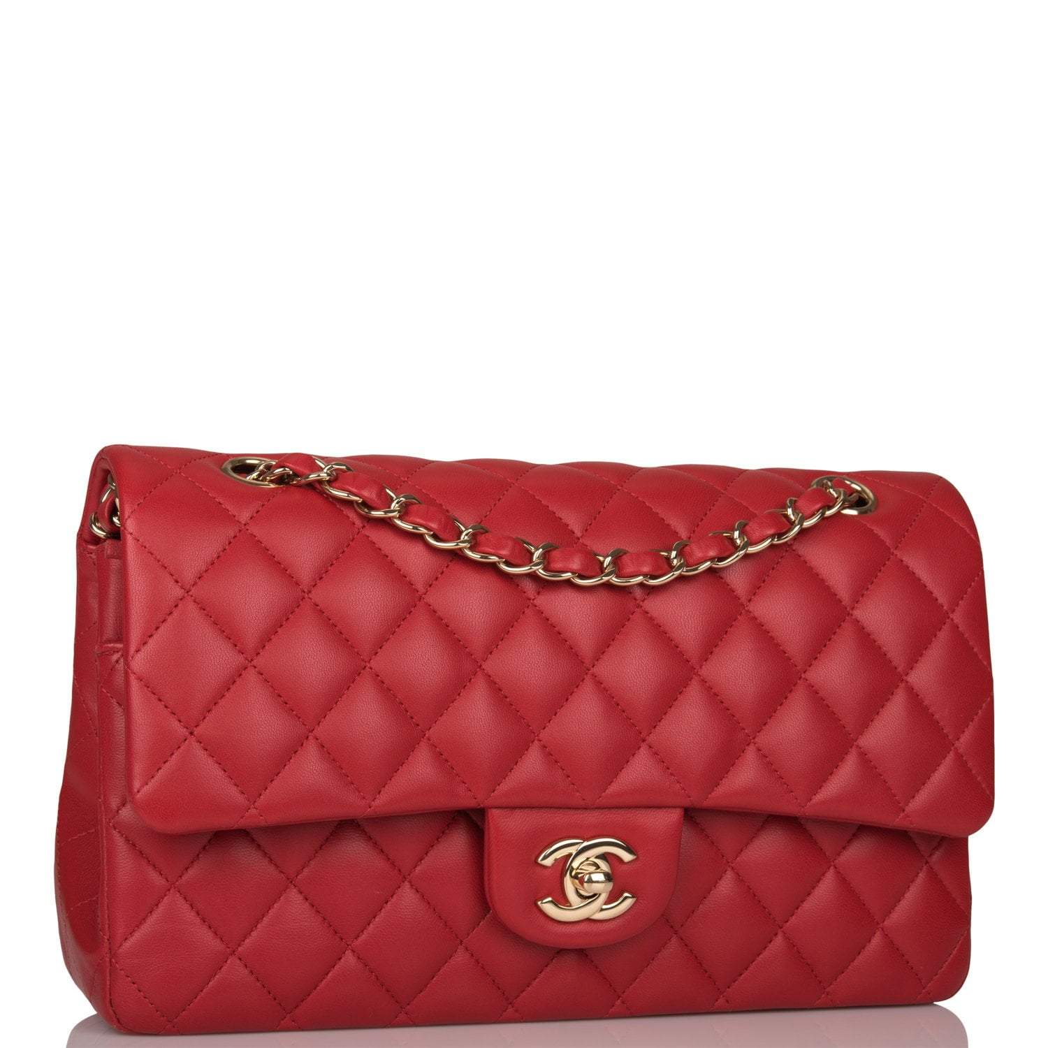 Chanel Medium Classic Double Flap Bag Red Lambskin Light Gold Hardware