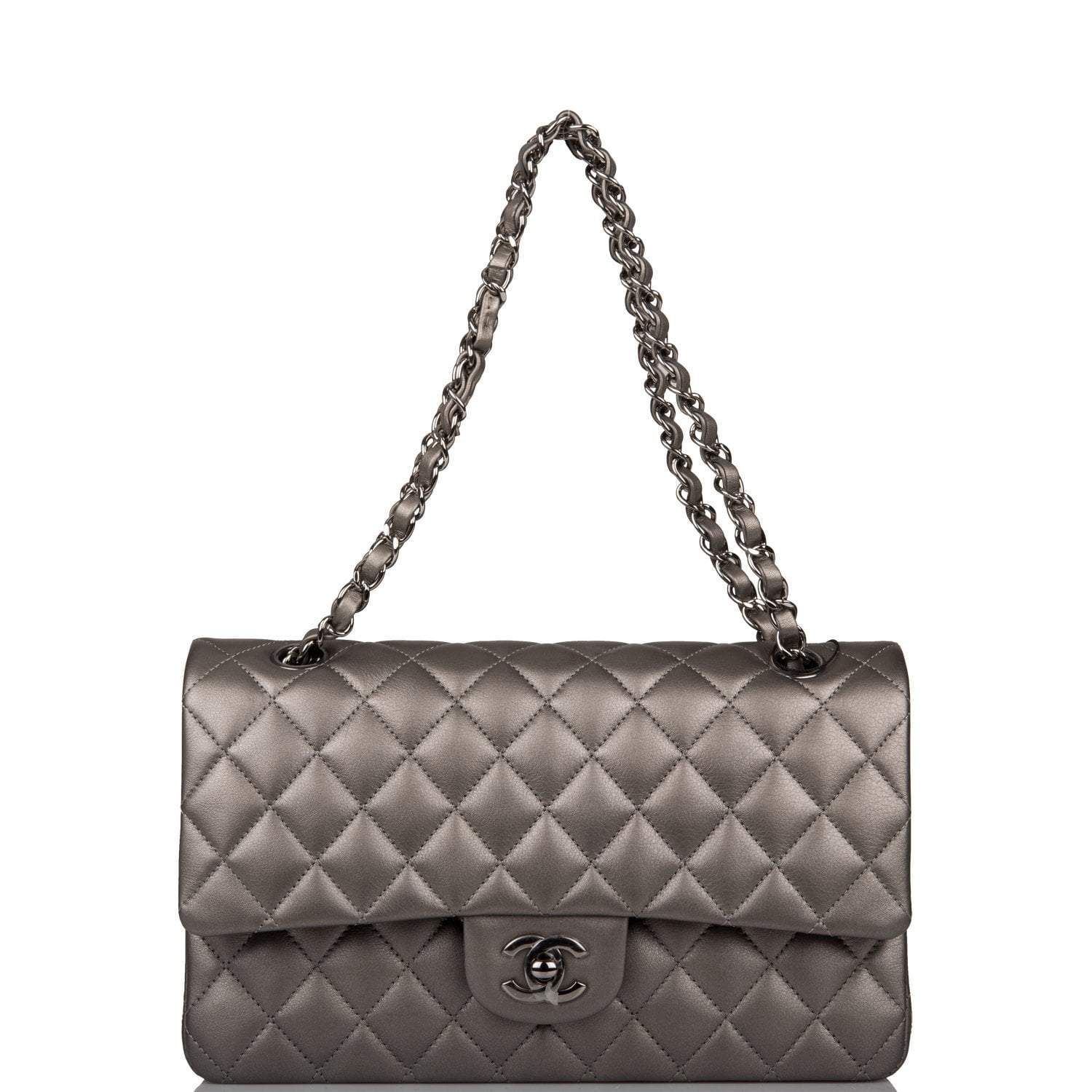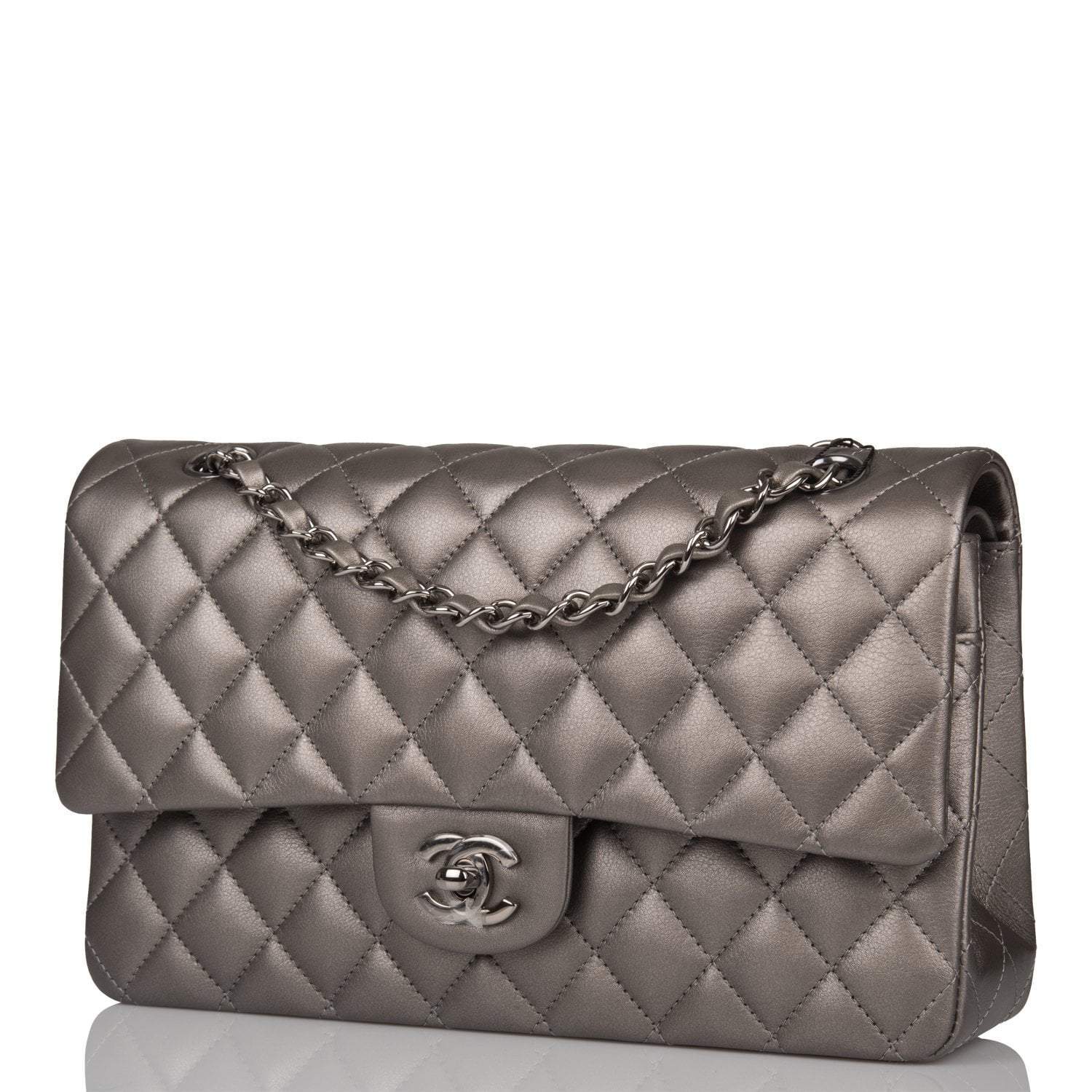 Chanel Medium Classic Double Flap Bag Ruthenium Lambskin Ruthenium Hardware