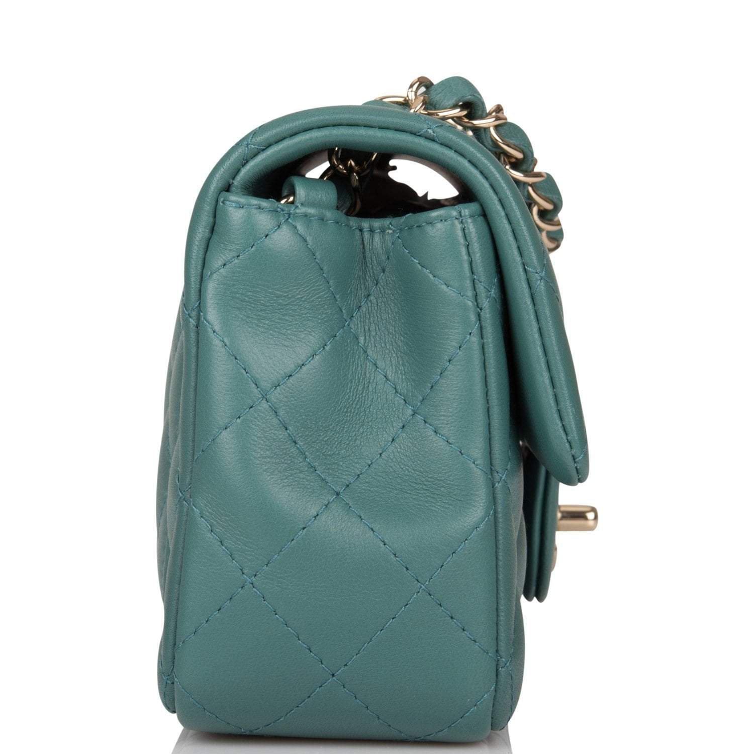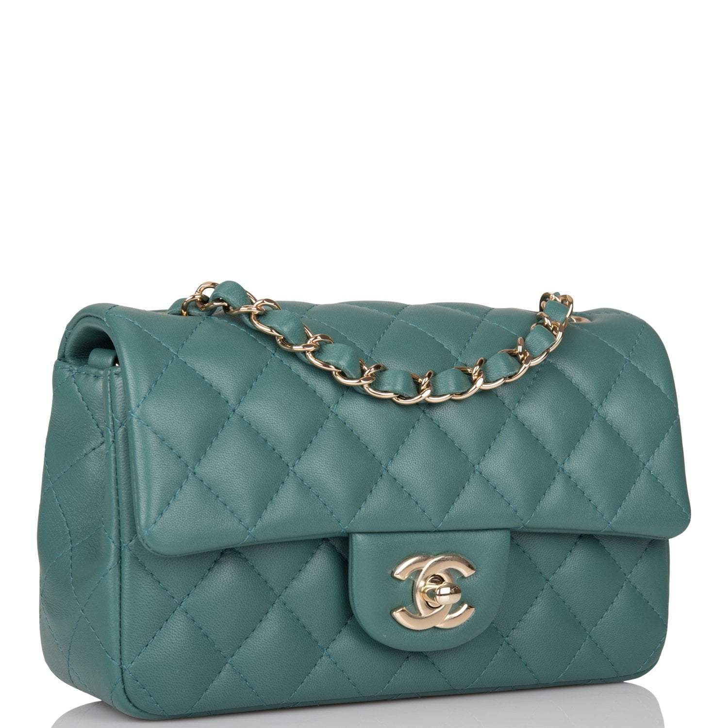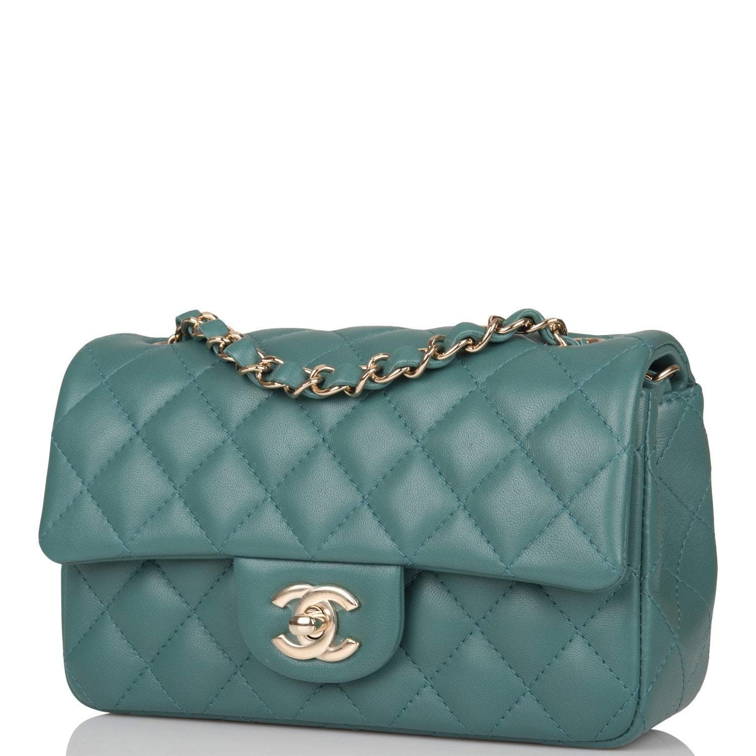Chanel Mini Rectangular Flap Bag Green Lambskin Light Gold Hardware