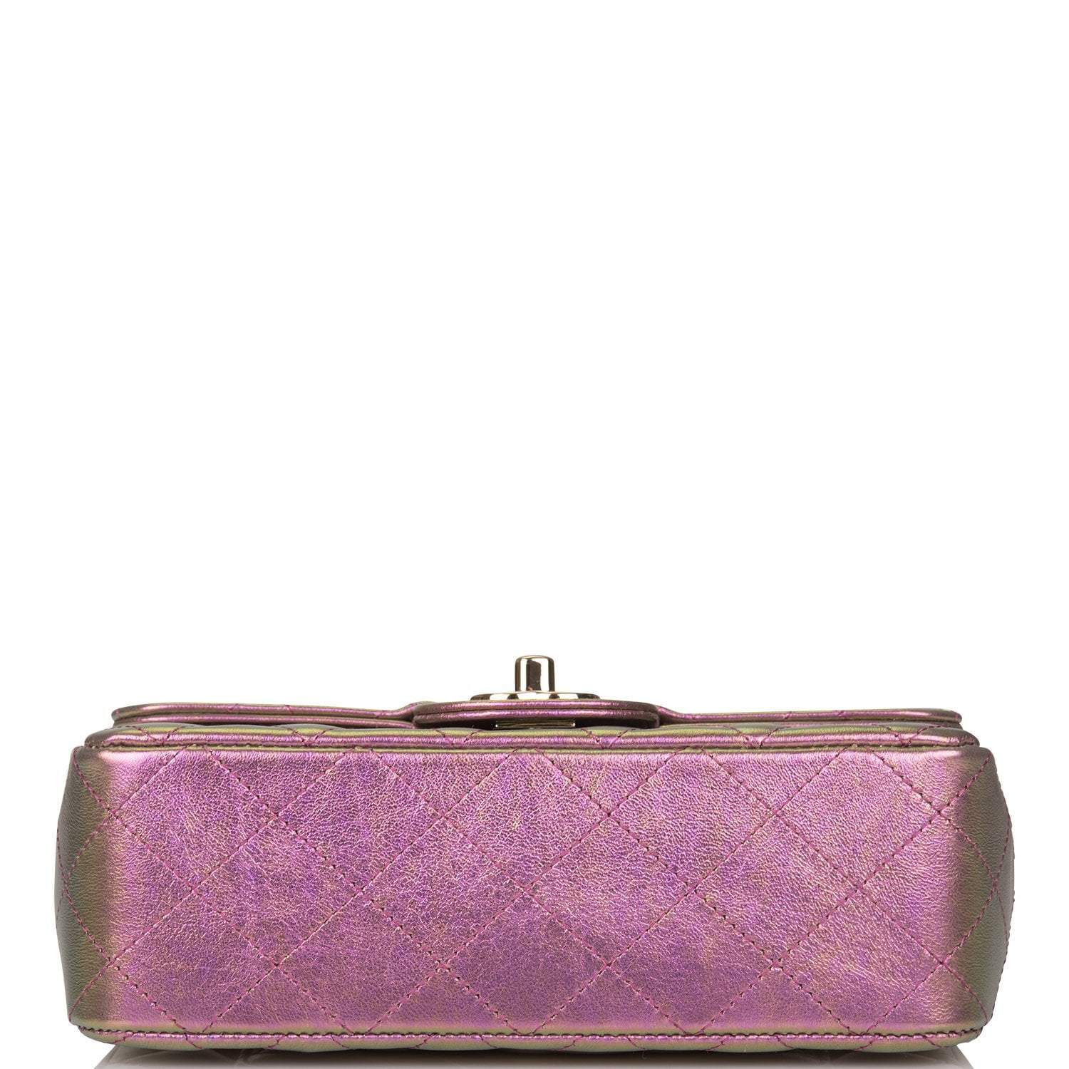 Chanel Mini Rectangular Flap Bag Purple Iridescent Lambskin Light Gold Hardware