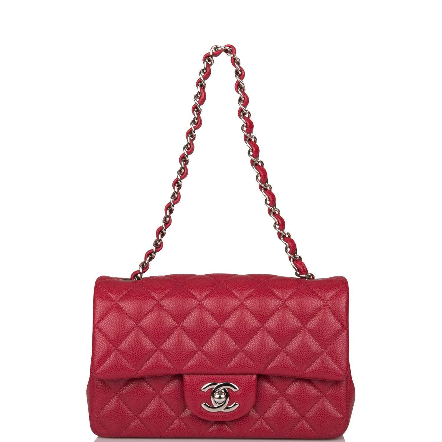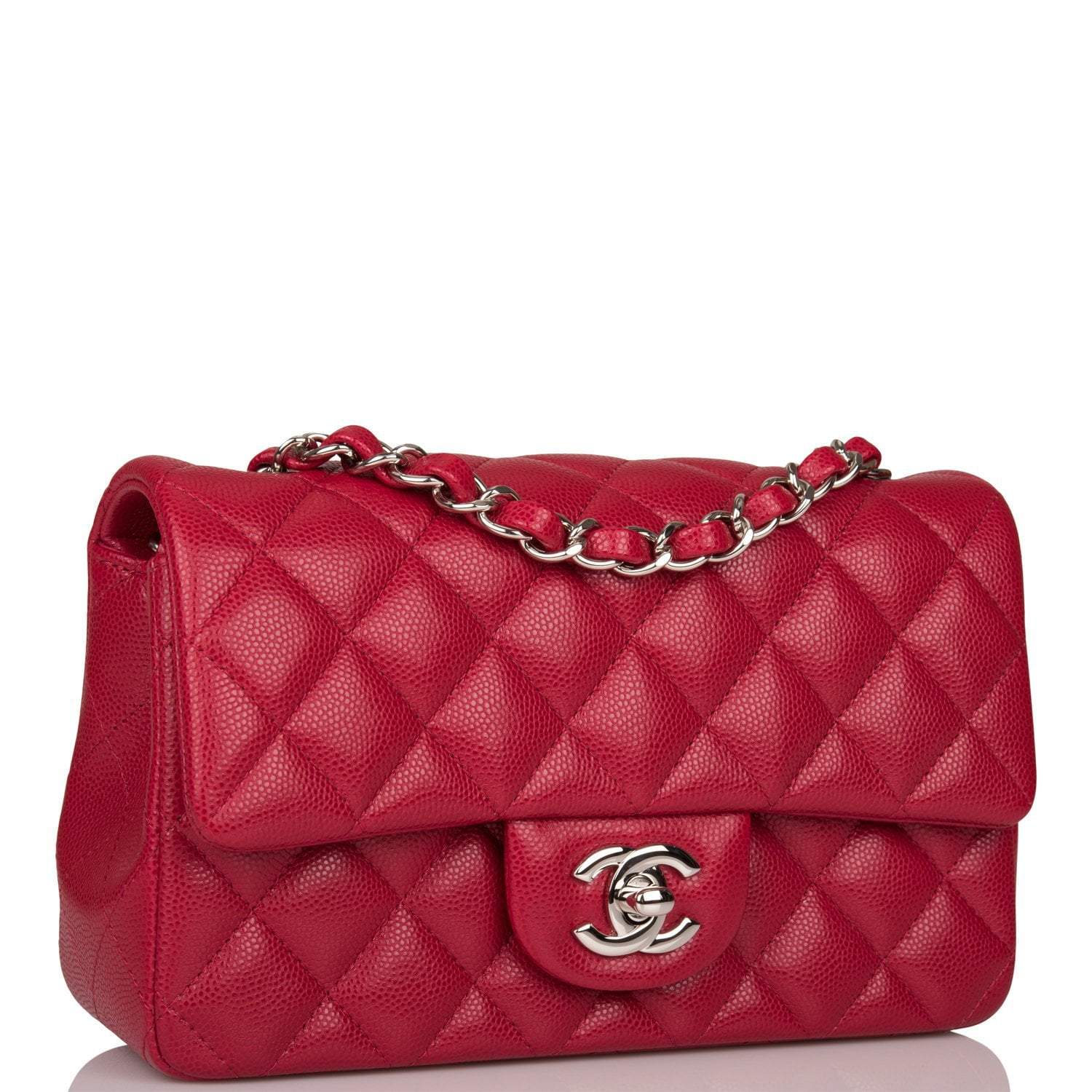 Chanel Mini Rectangular Flap Bag Red Caviar Silver Hardware
