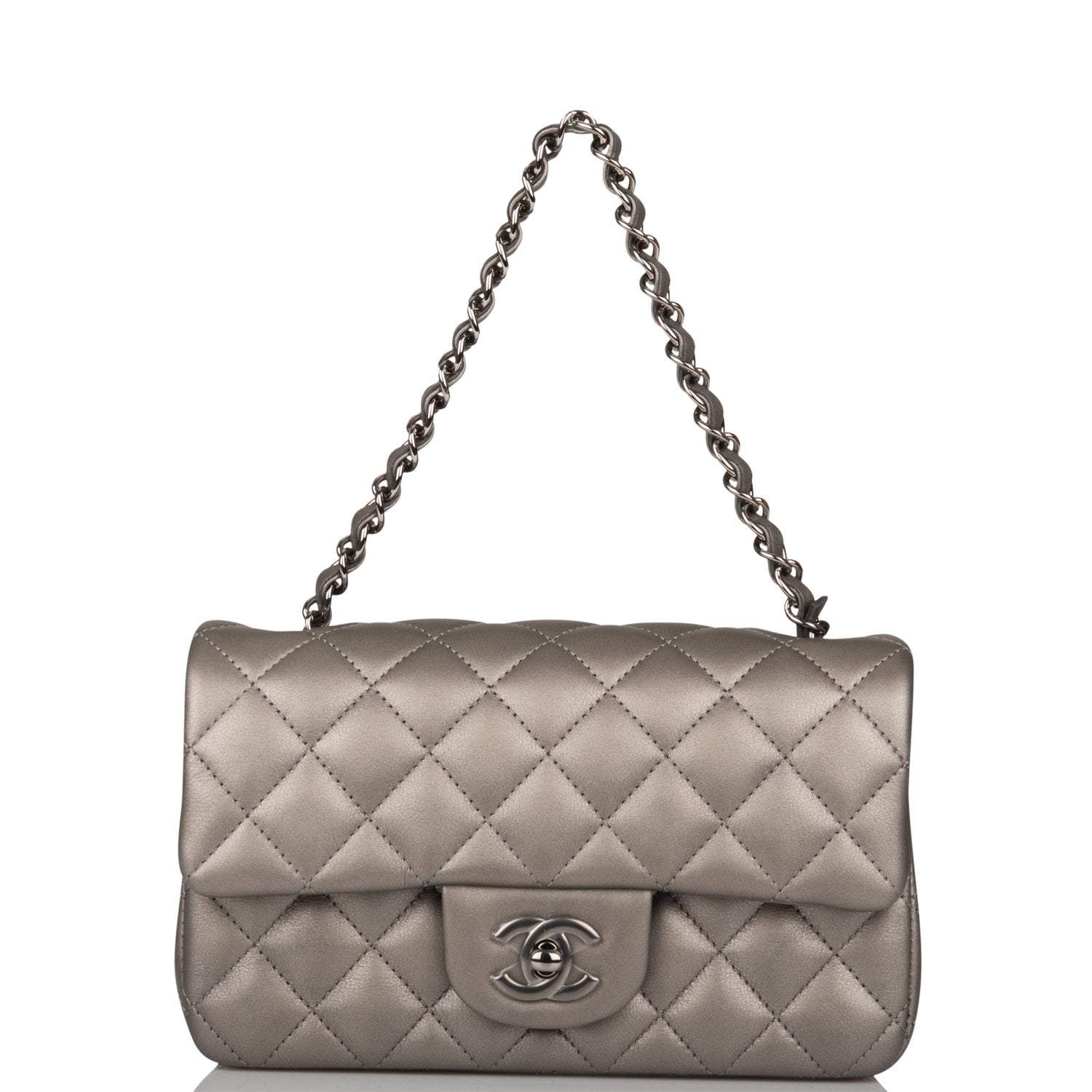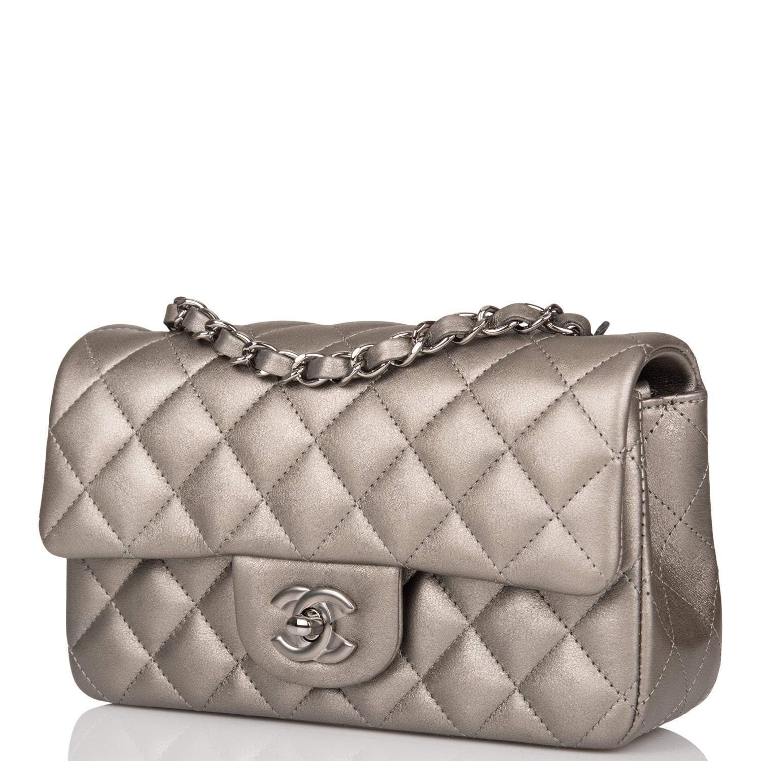 Chanel Mini Rectangular Flap Bag Ruthenium Metallic Lambskin Silver Hardware