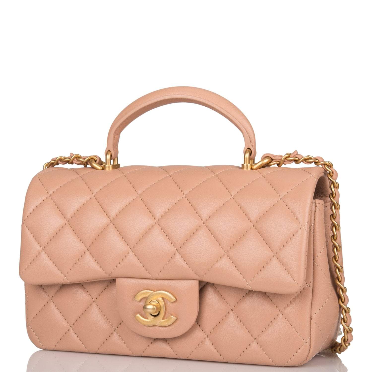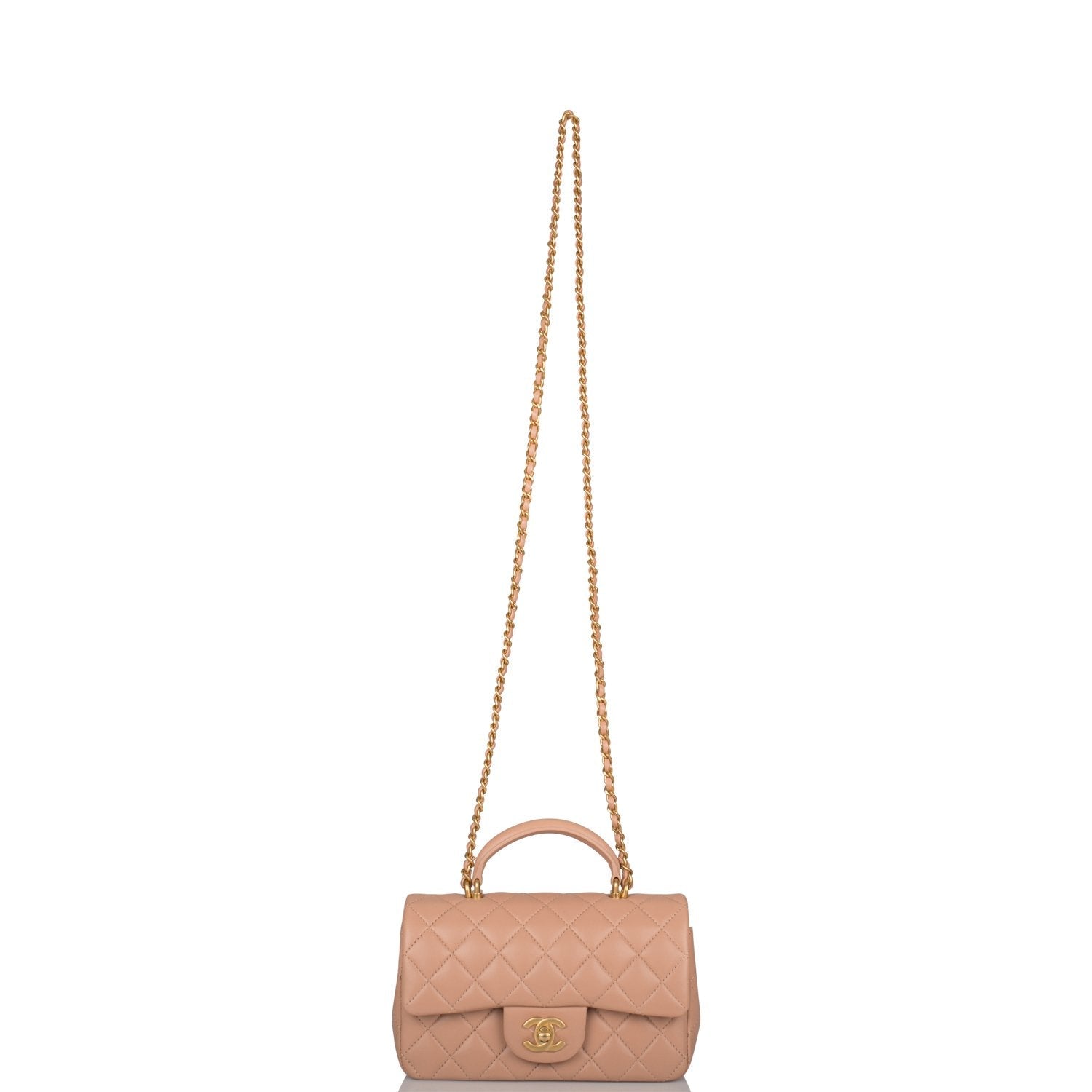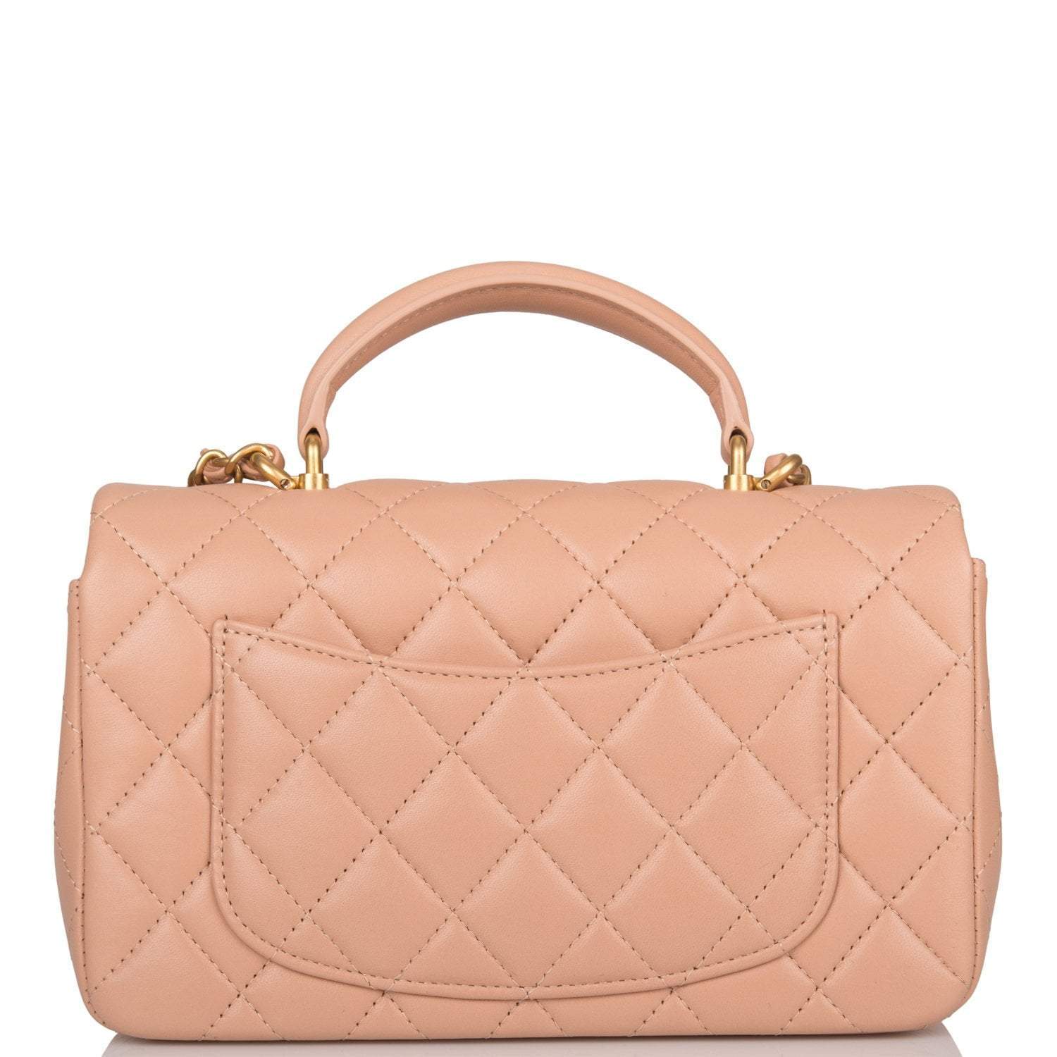Chanel Mini Rectangular Flap with Top Handle Beige Lambskin Antique Gold Hardware