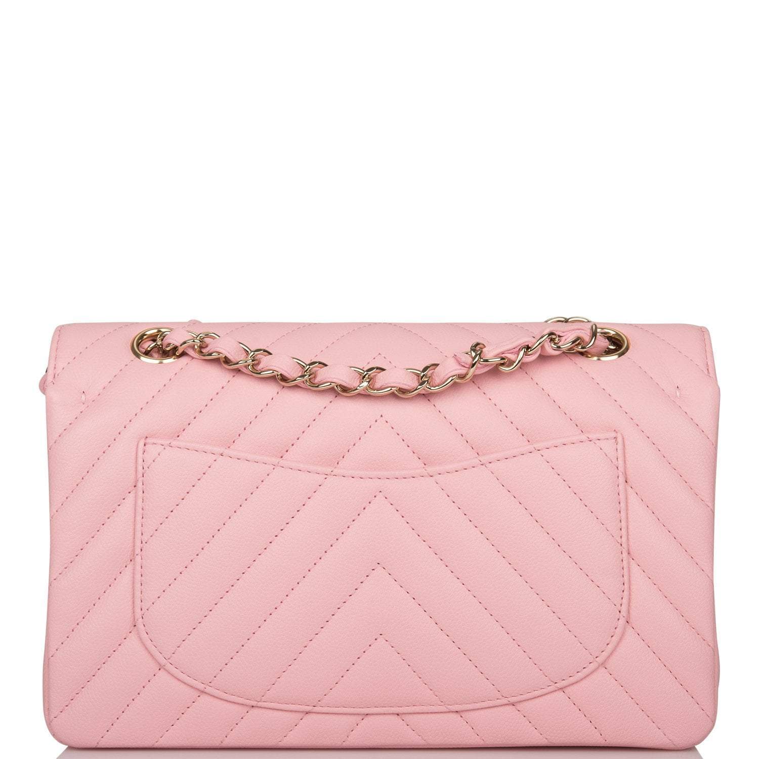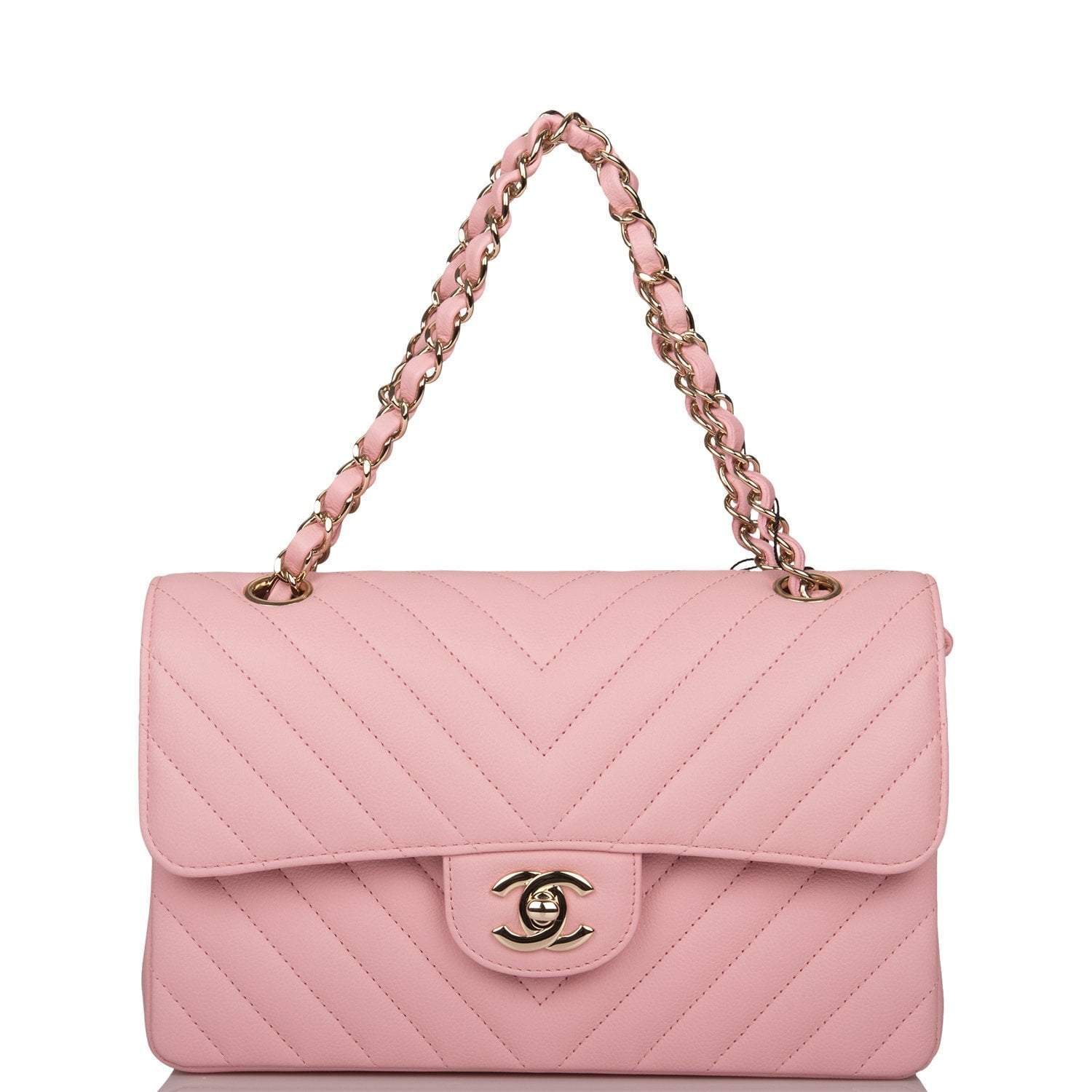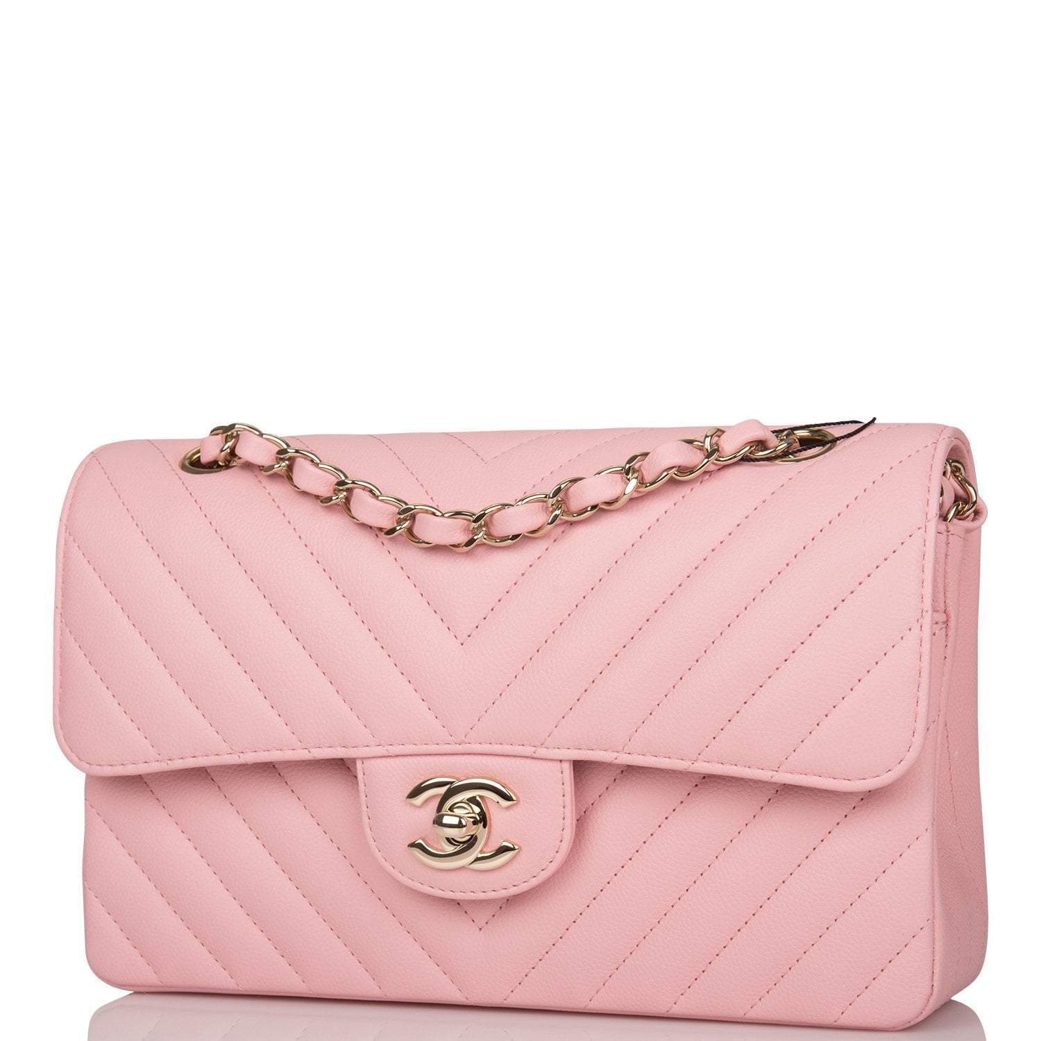 Chanel Pink Chevron Caviar Small Classic Double Flap Bag Light Gold Hardware