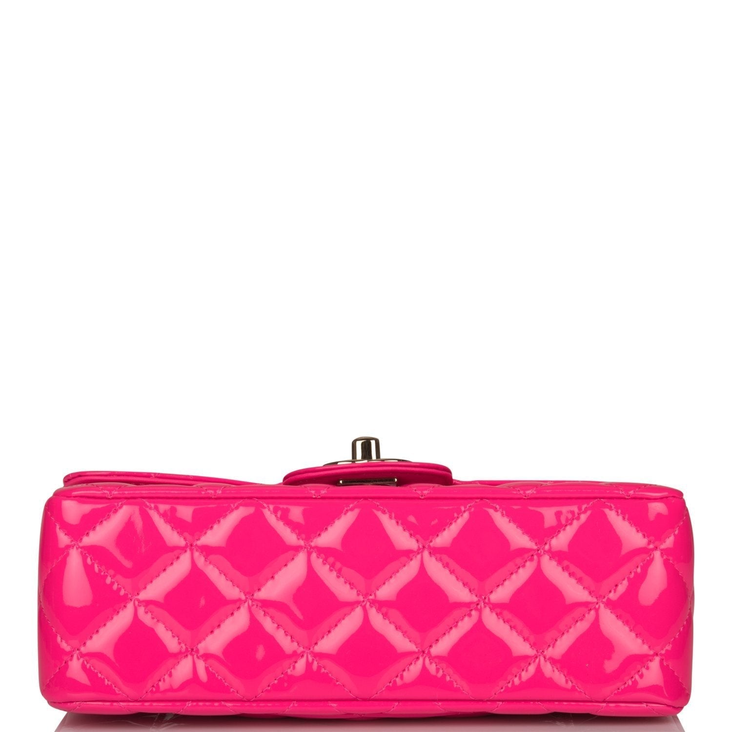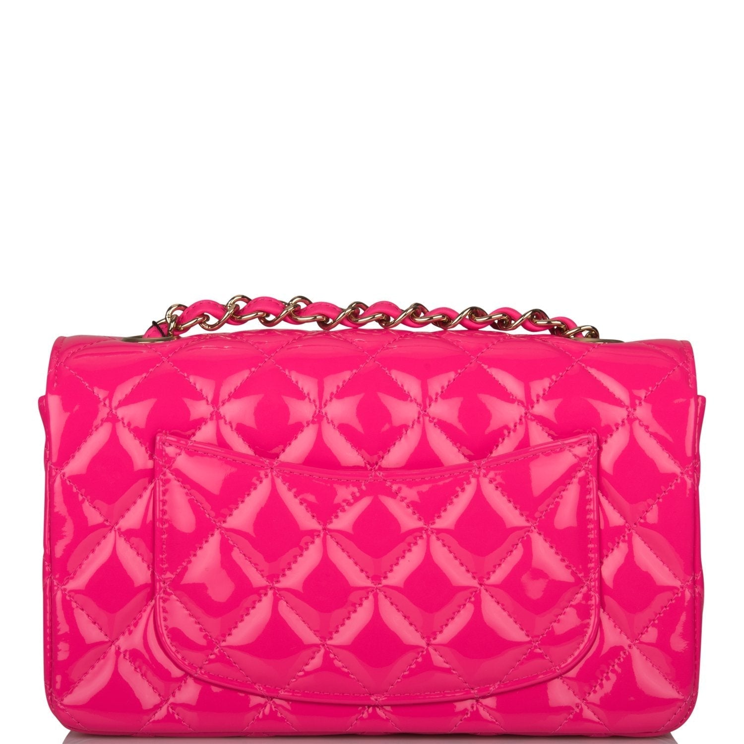 Chanel Pink Quilted Patent Rectangular Mini Classic Flap Bag Light Gold Hardware