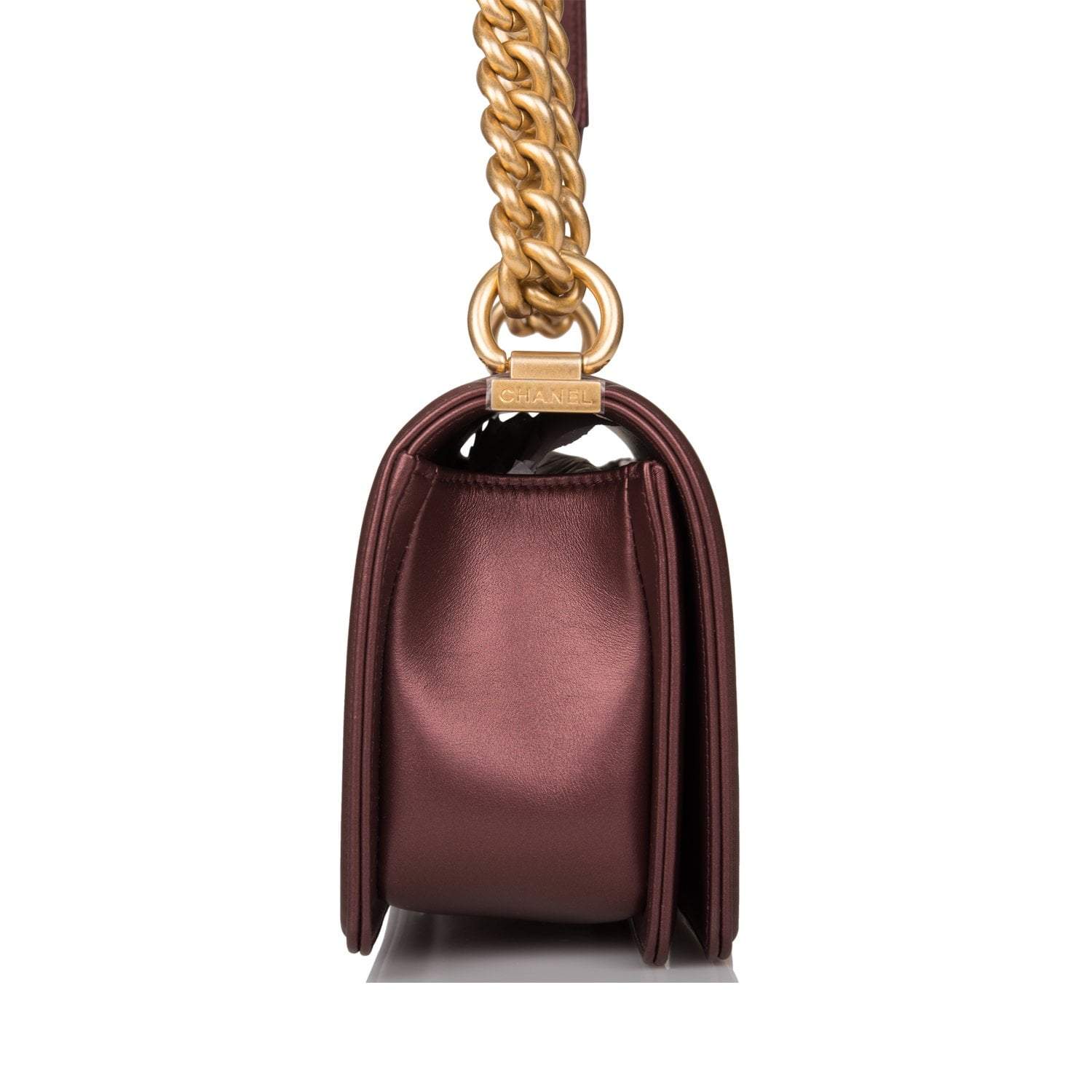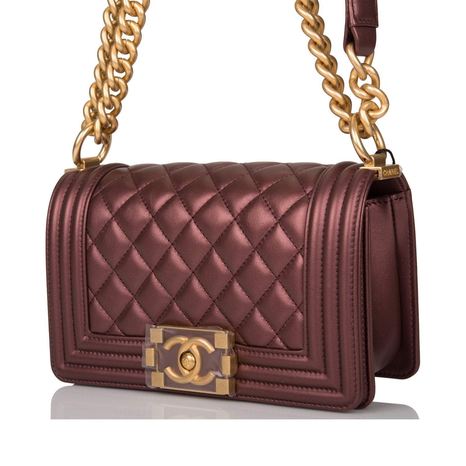 Chanel Plum Metallic Quilted Calfskin Small Boy Bag Antique Gold Hardware