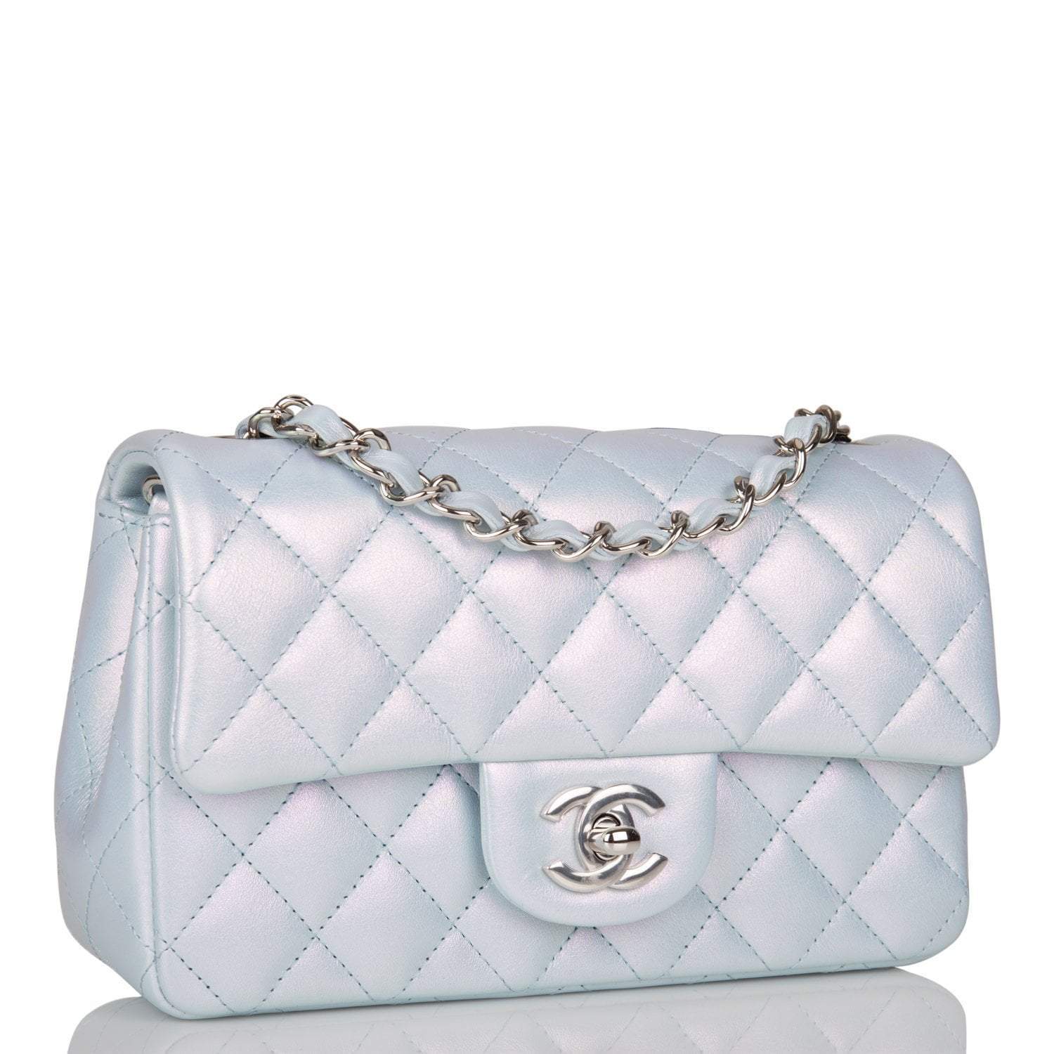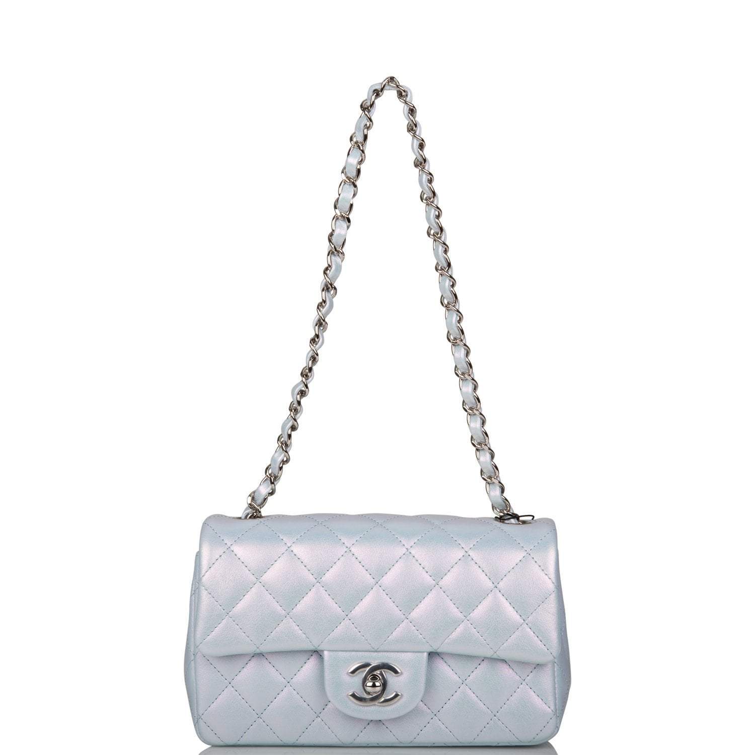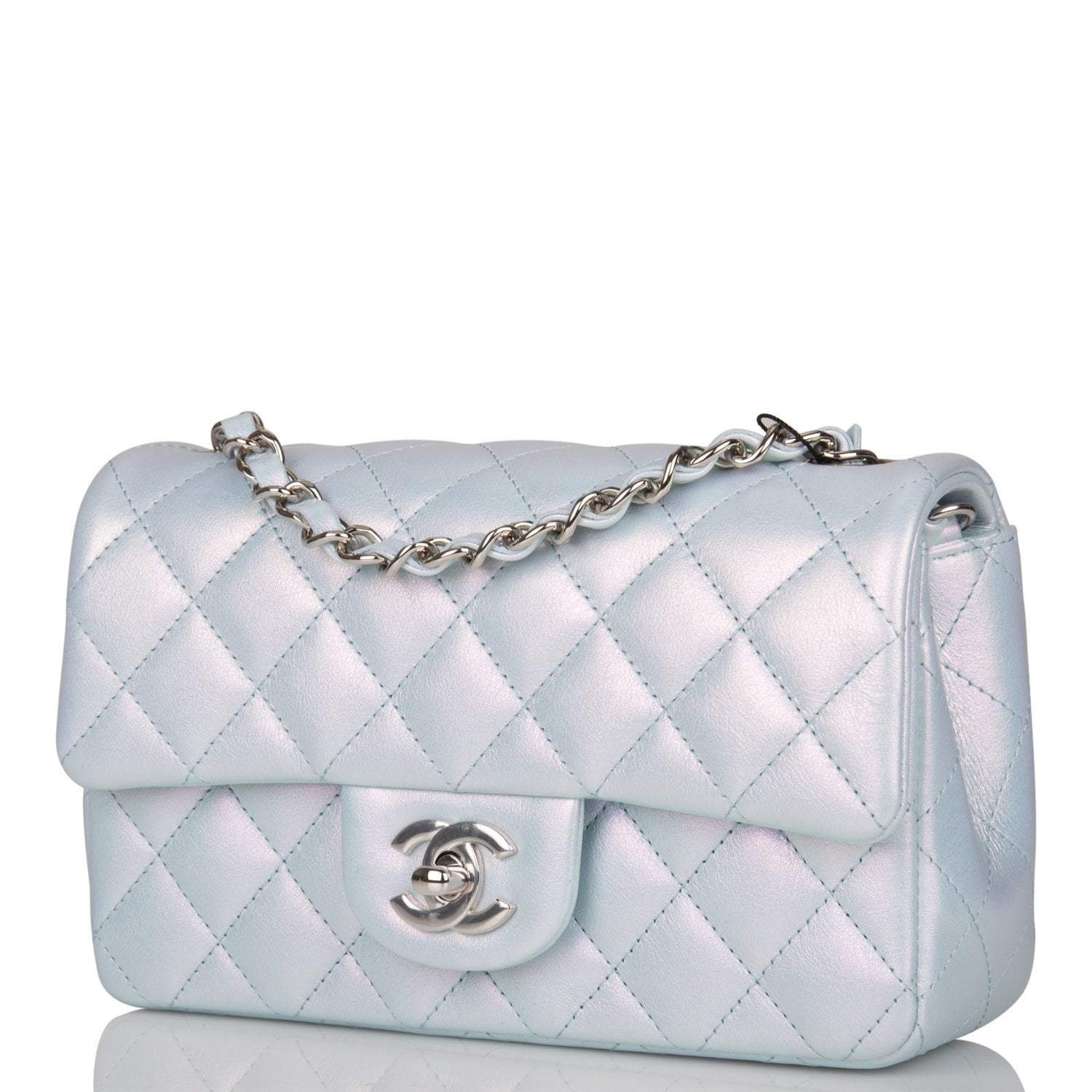 Chanel Mini Rectangular Flap Bag Blue Iridescent Lambskin Silver Hardware