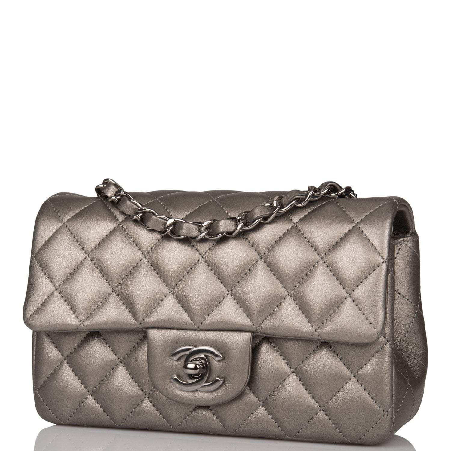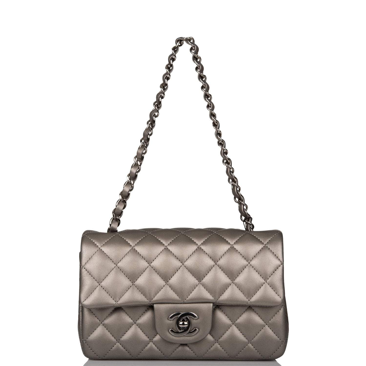 Chanel Mini Rectangular Flap Bag Ruthenium Lambskin Silver Hardware
