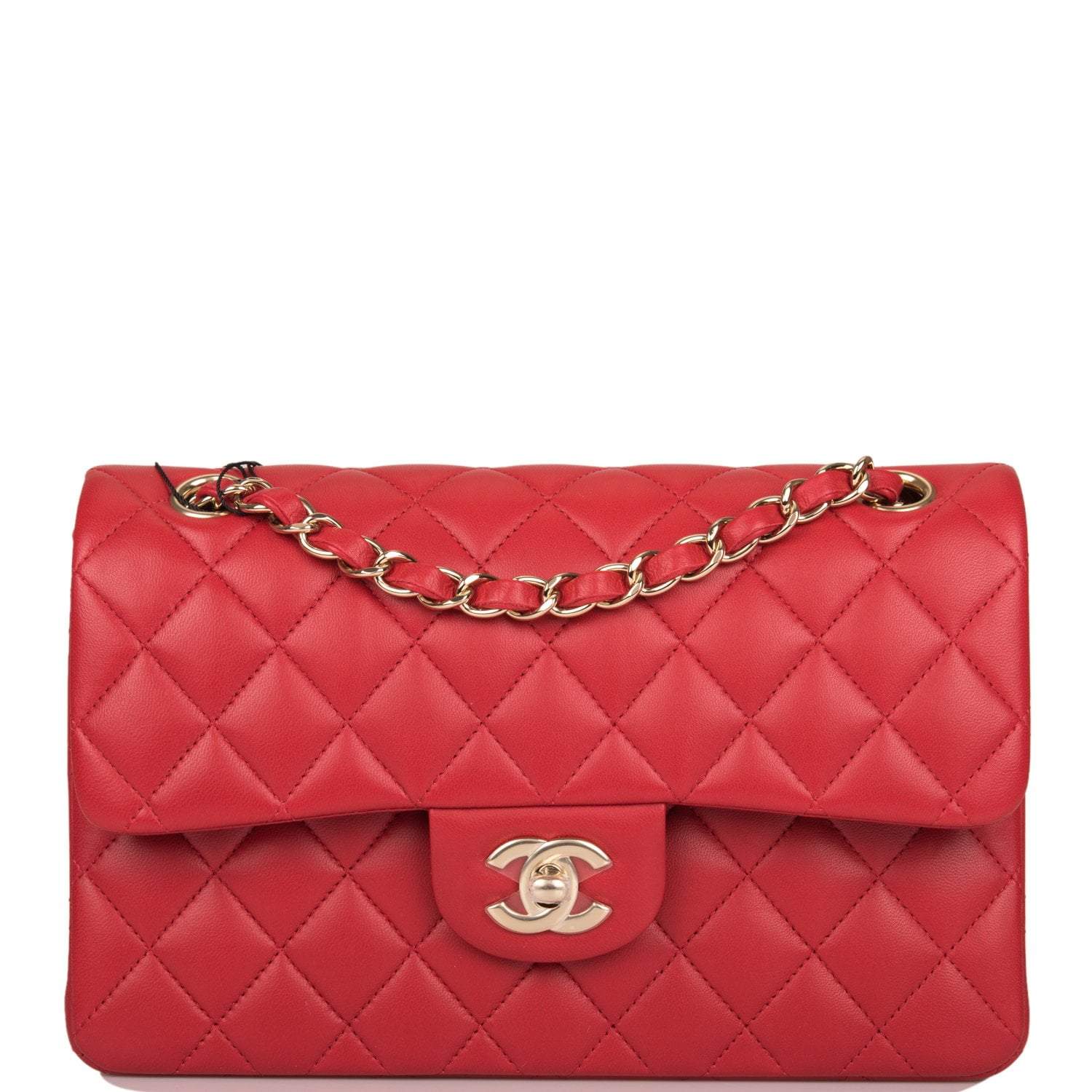 Chanel Red Quilted Lambskin Small Classic Double Flap Bag Light Gold Hardware