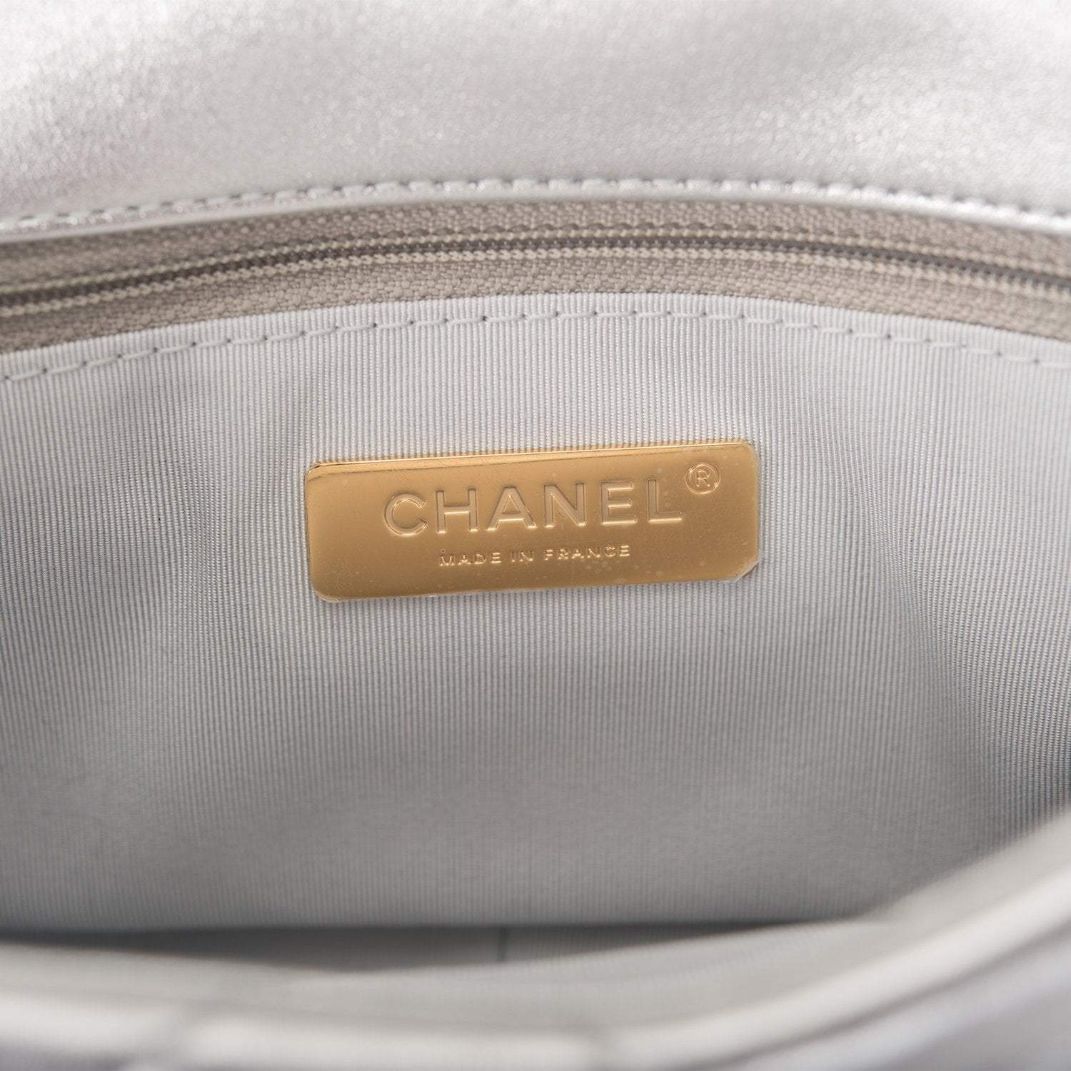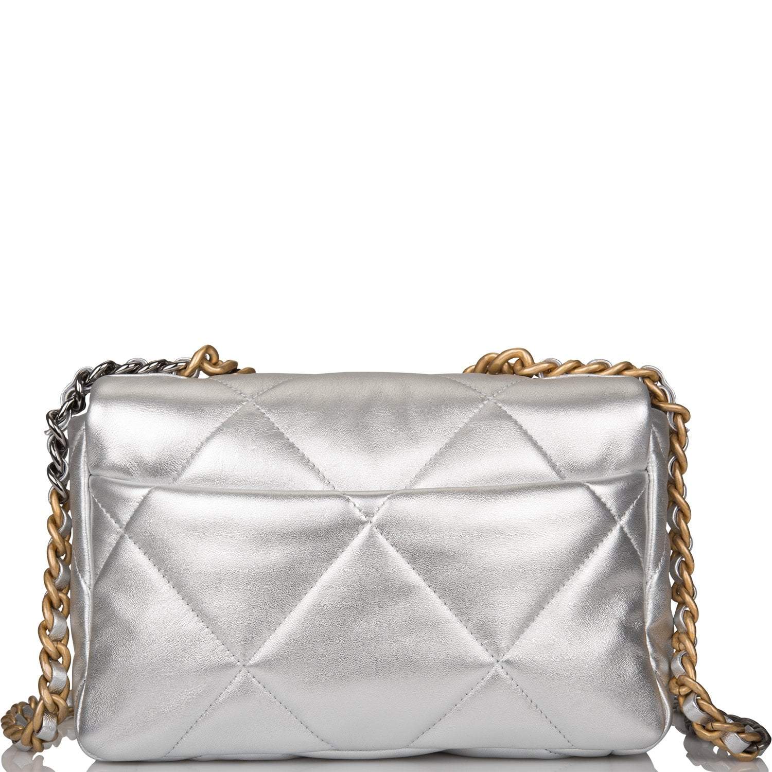 Chanel Silver Metallic Quilted Lambskin Medium 19 Flap Bag Mixed Hardware