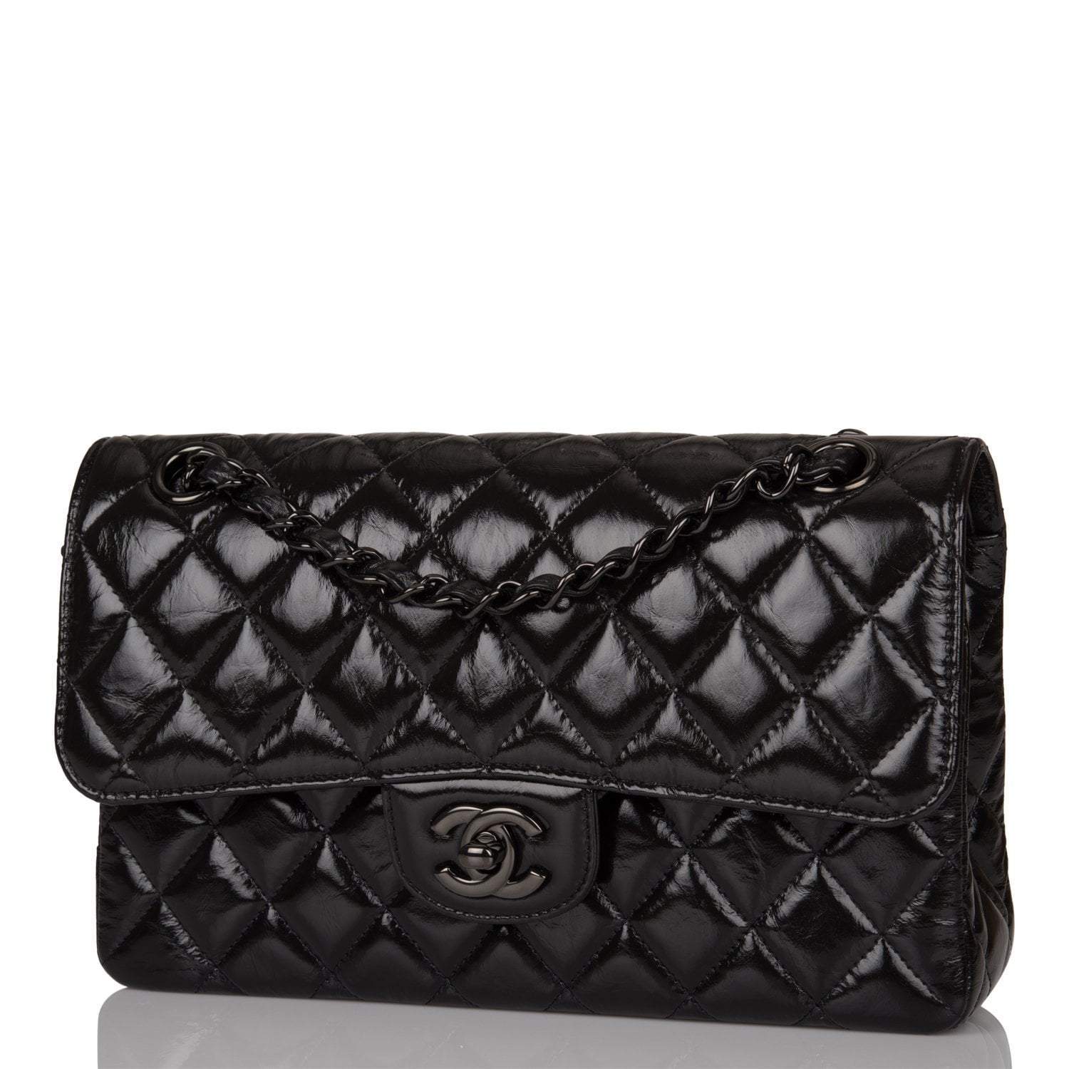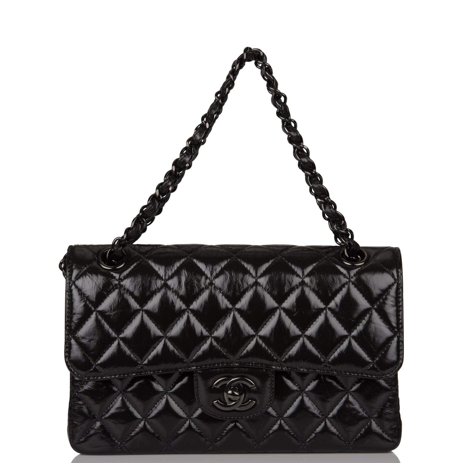 Chanel Small Classic Double Flap Shiny SO Black Crumpled Calfskin Black Hardware