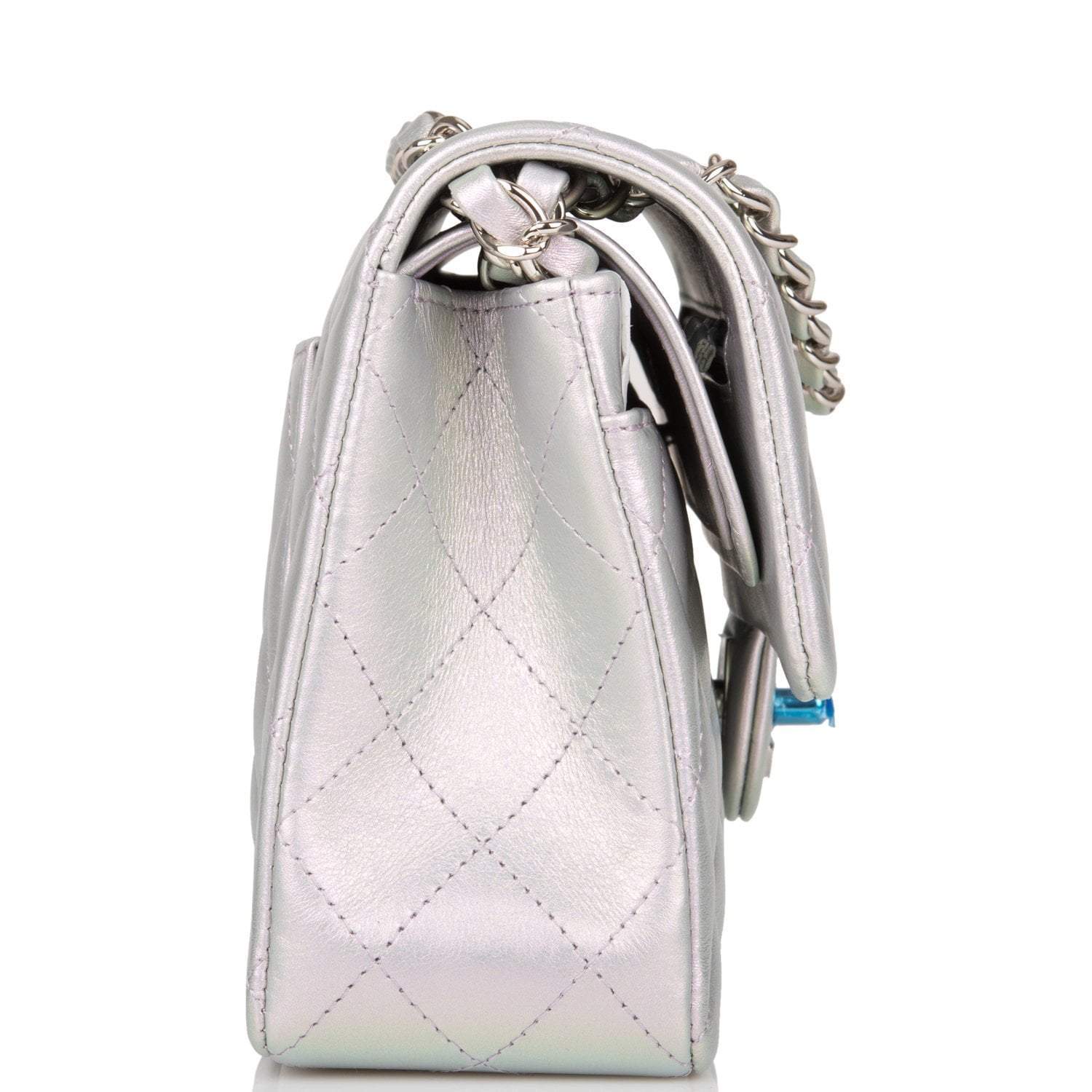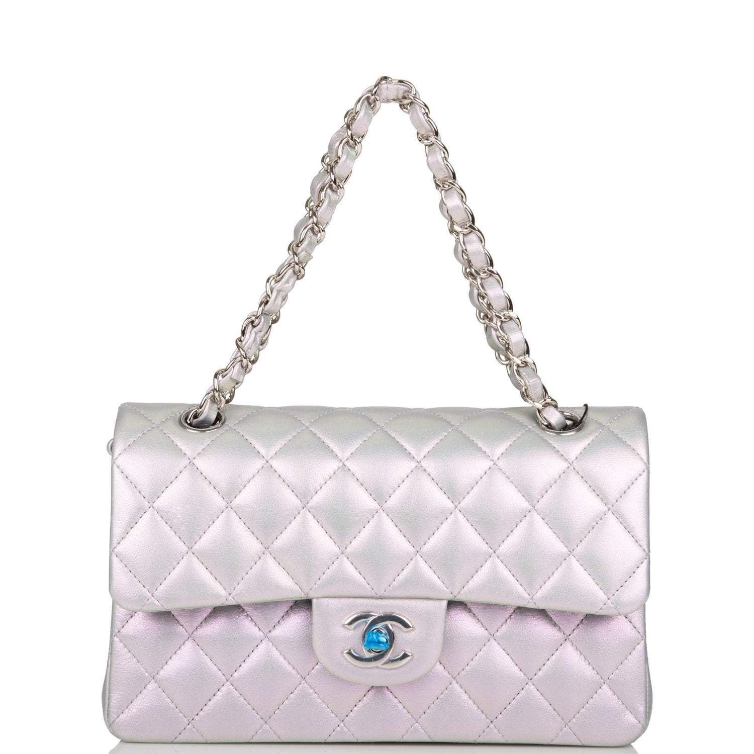 Chanel Small Classic Double Flap Bag Silver Iridescent Lambskin Silver Hardware