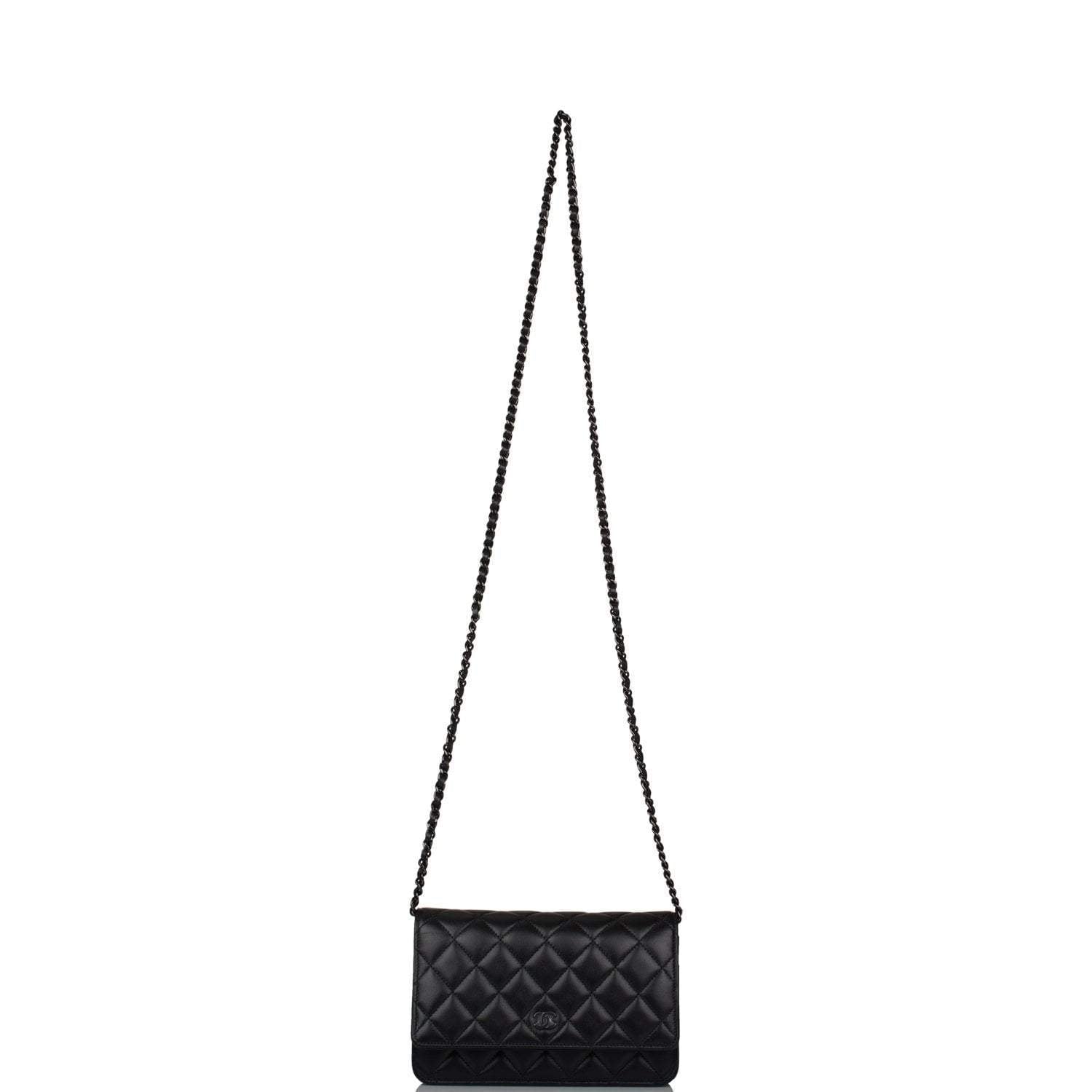 Chanel SO Black Classic Quilted Lambskin Wallet On Chain (WOC) Black Hardware