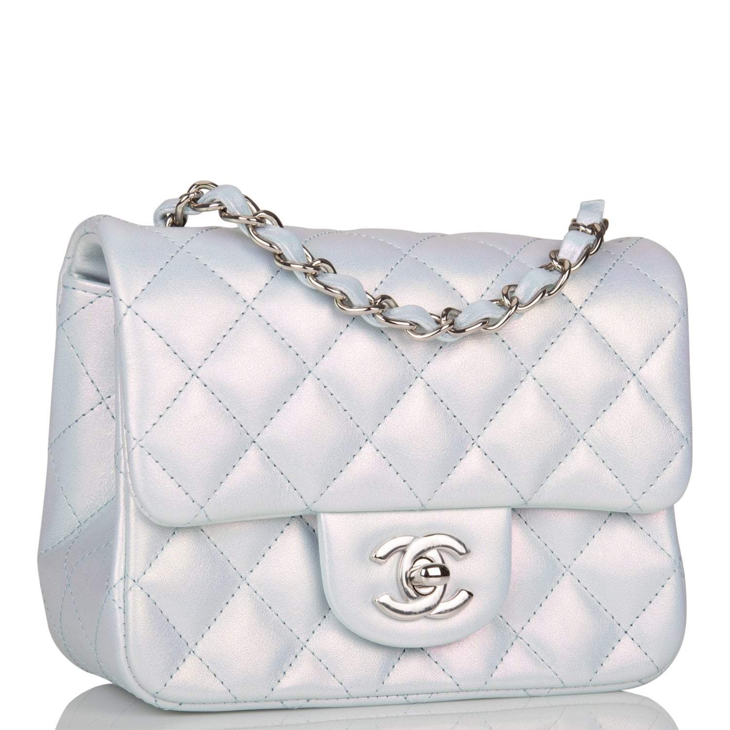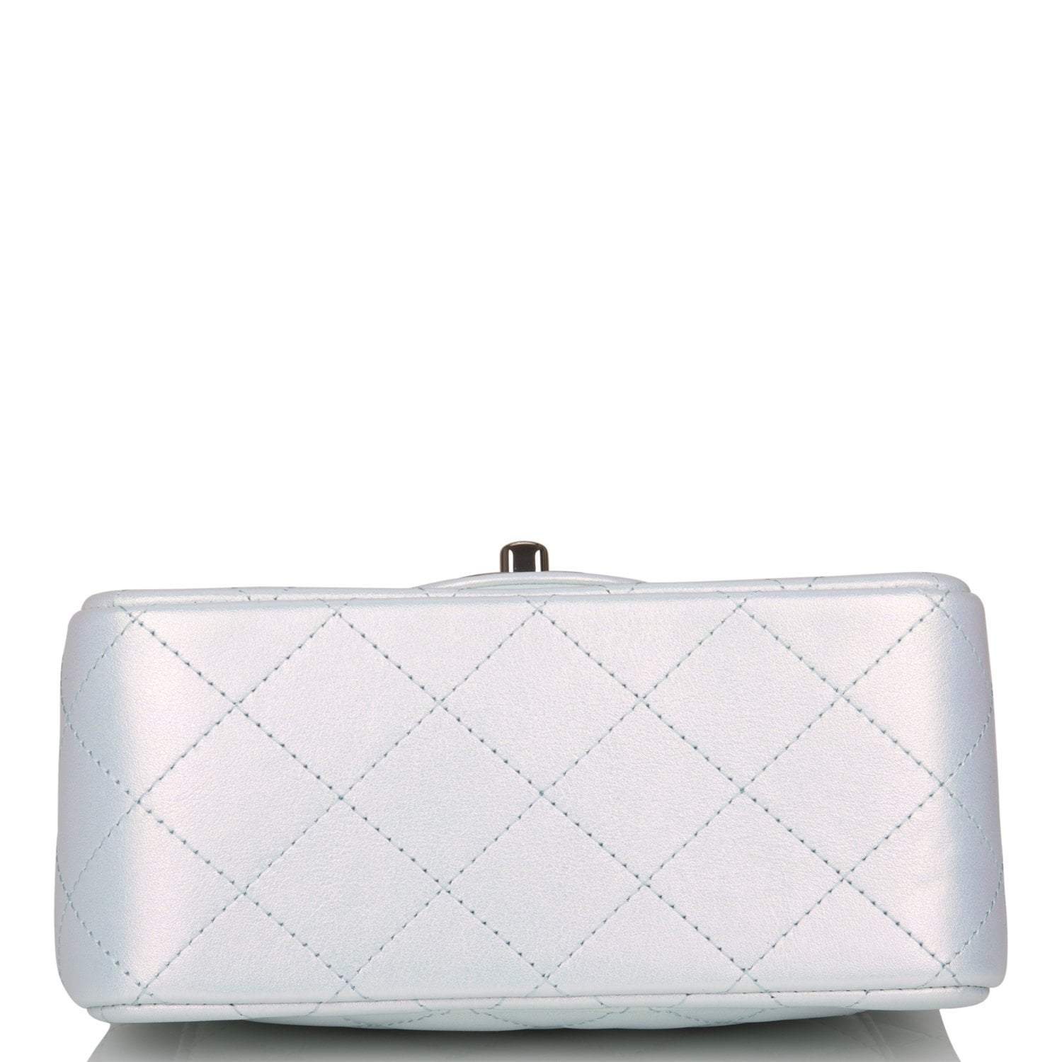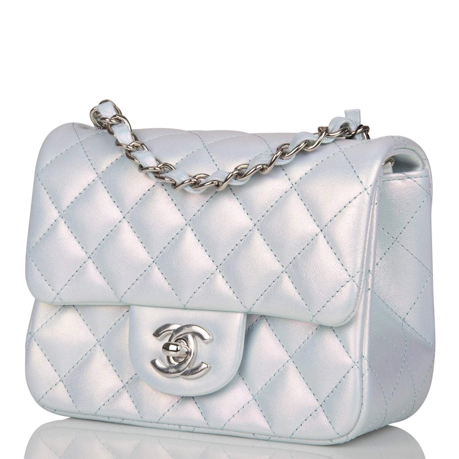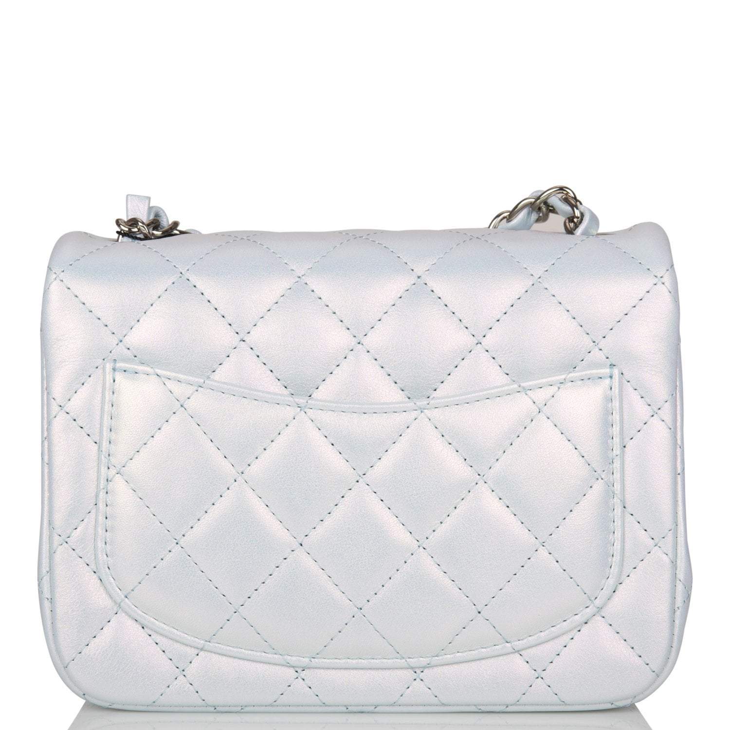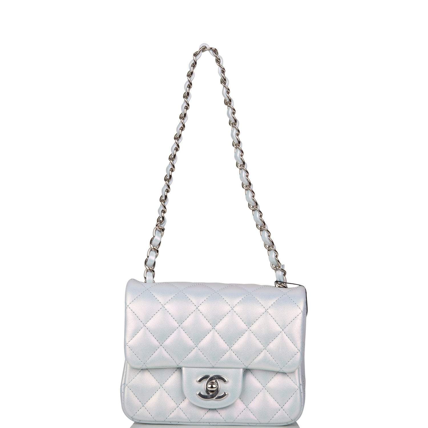 Chanel Mini Square Flap Bag Blue Iridescent Lambskin Silver Hardware