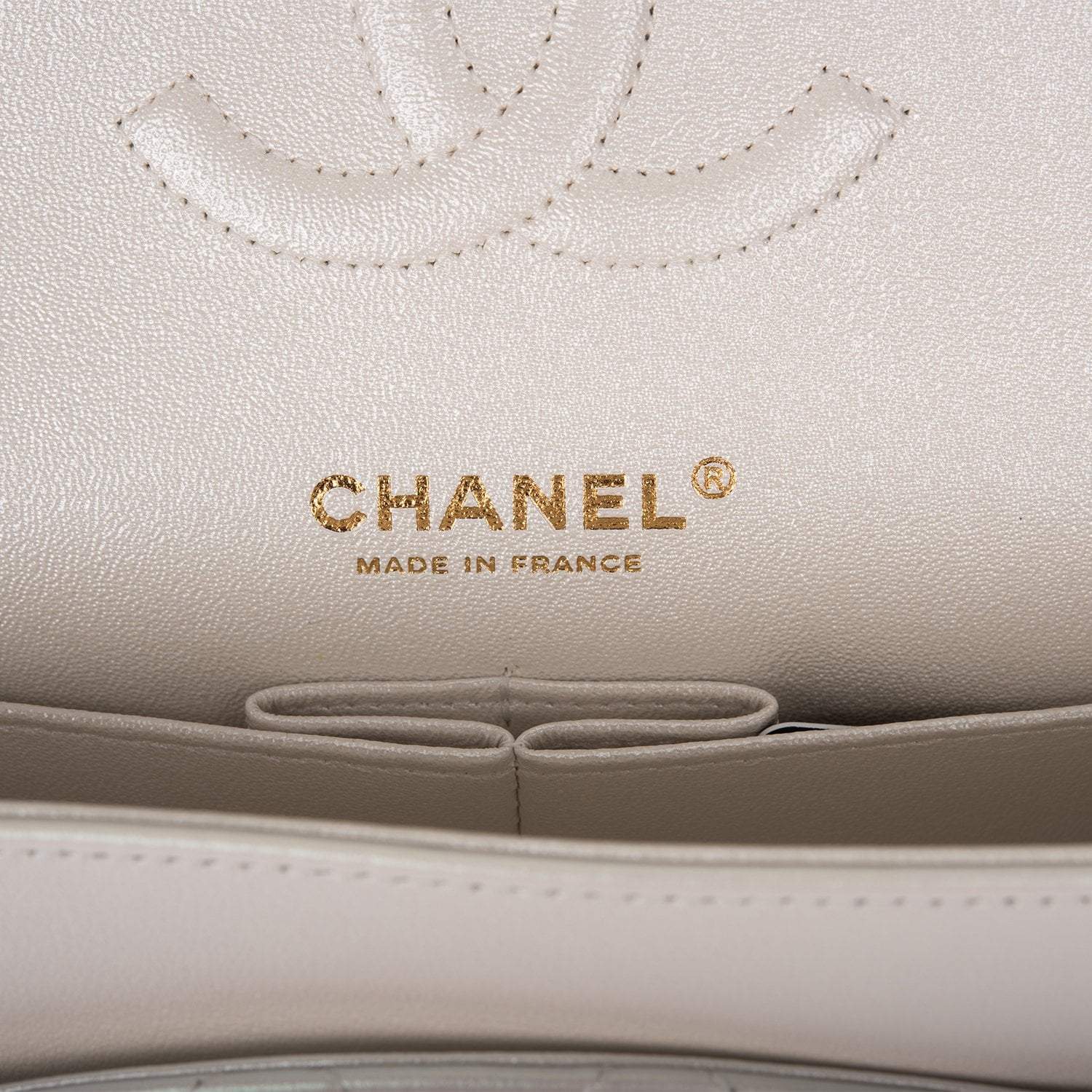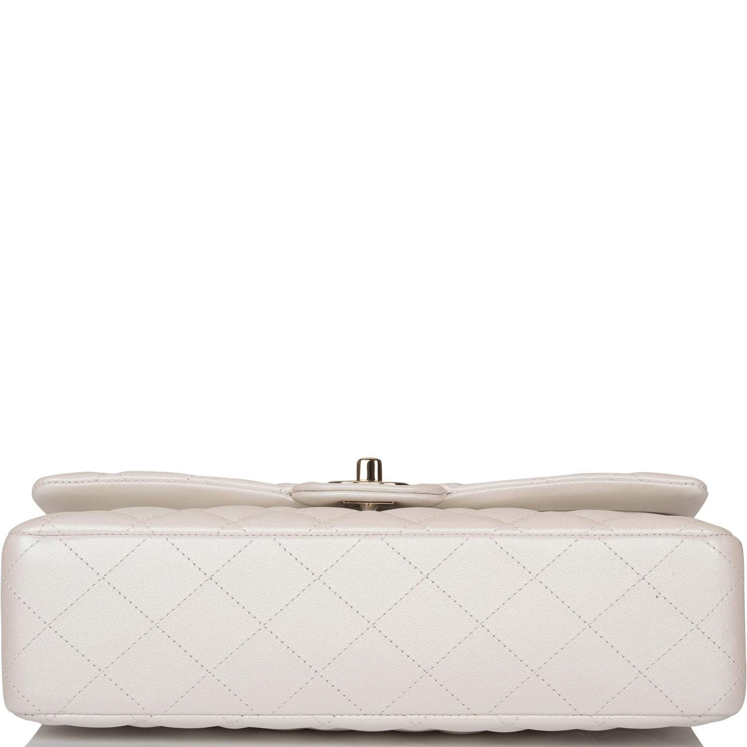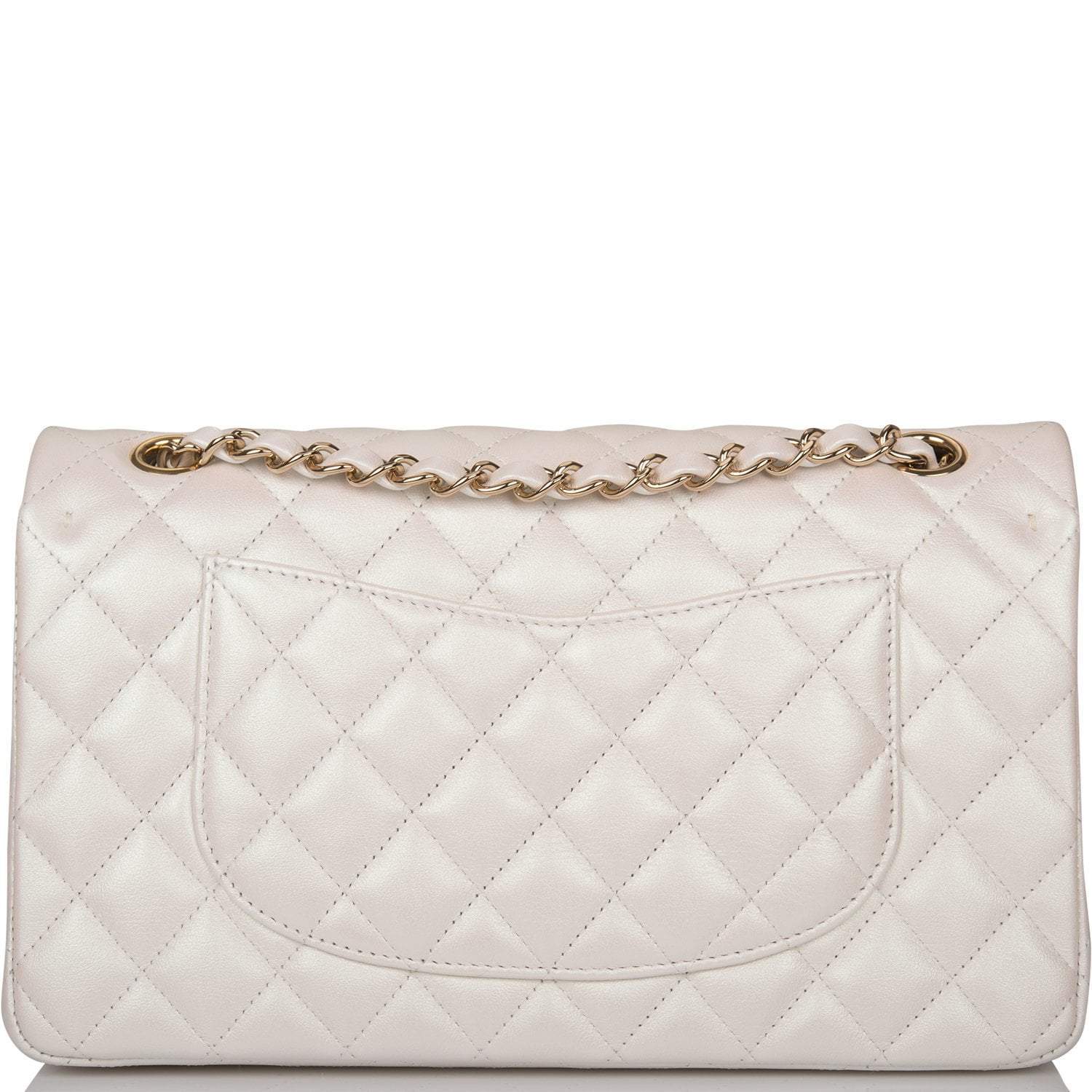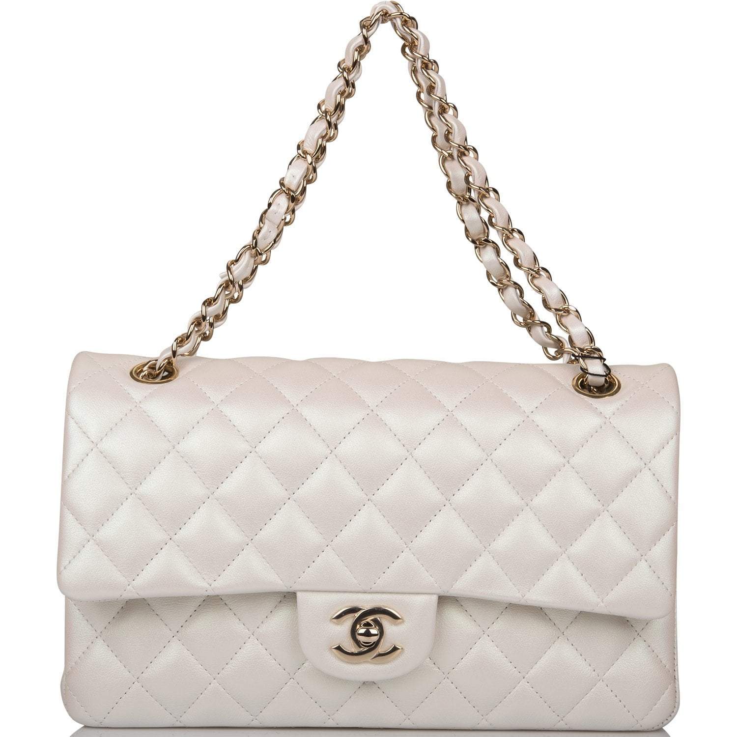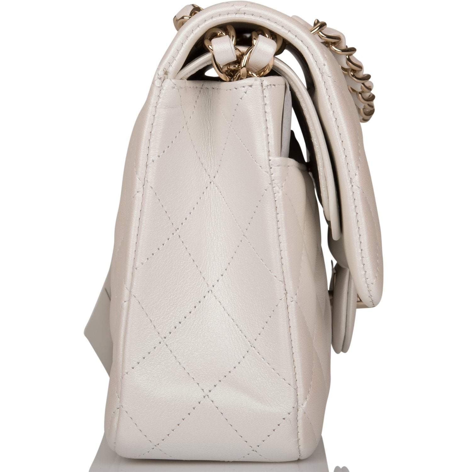 Chanel White Iridescent Quilted Lambskin Medium Classic Double Flap Bag Light Gold Hardware