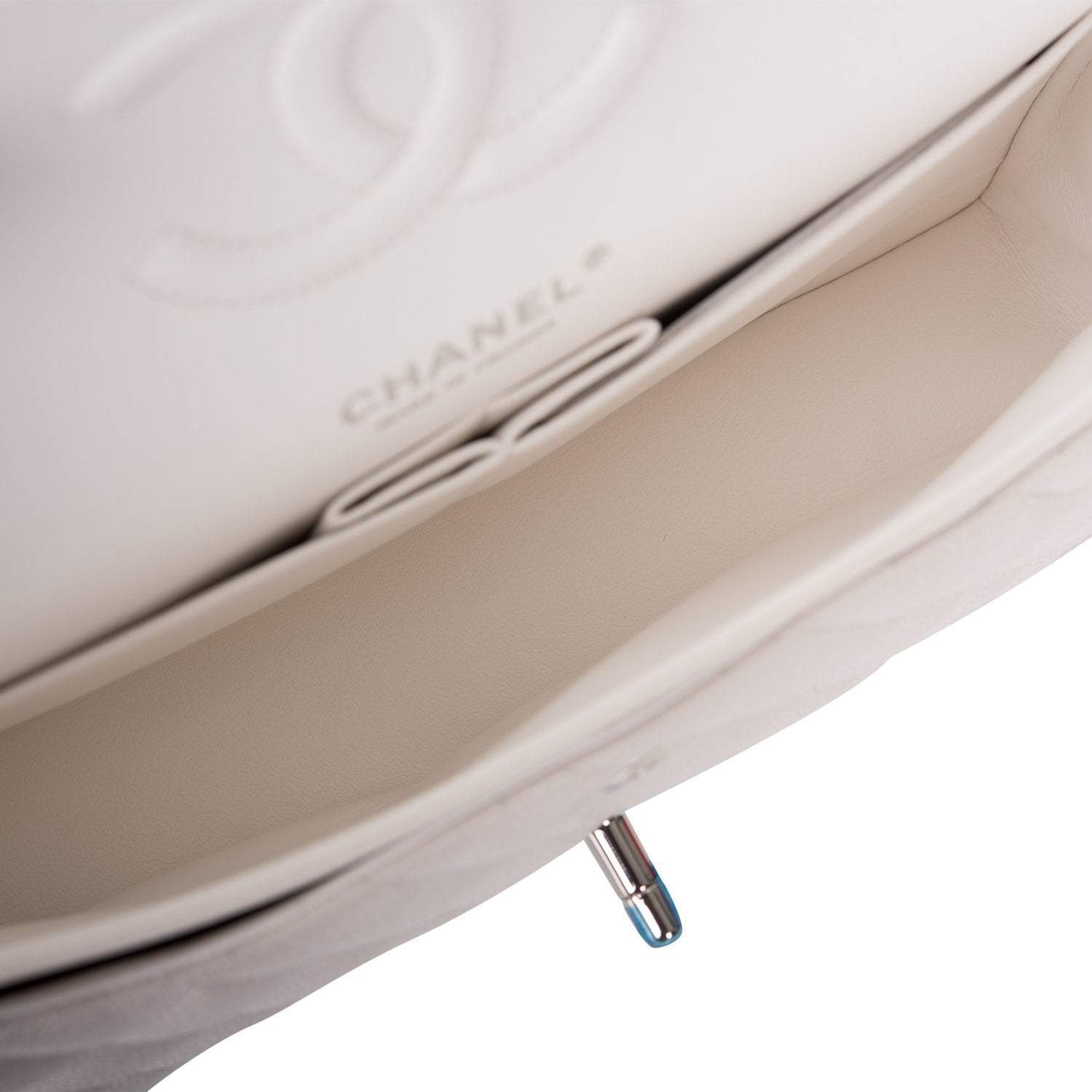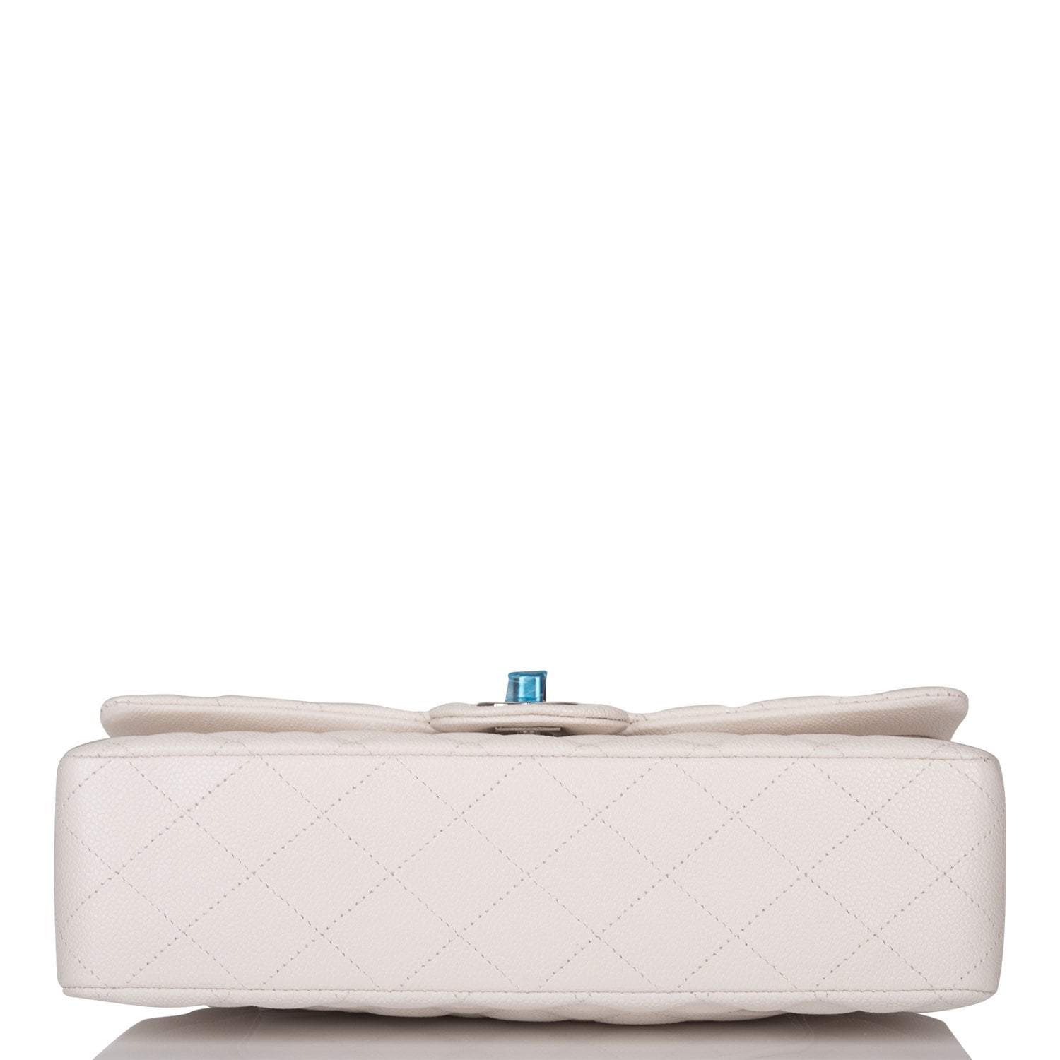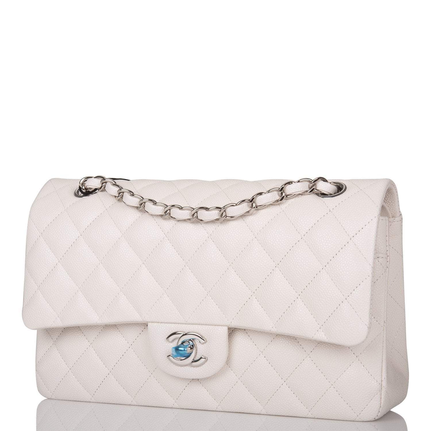 Chanel White Quilted Caviar Medium Classic Double Flap Bag Silver Hardware