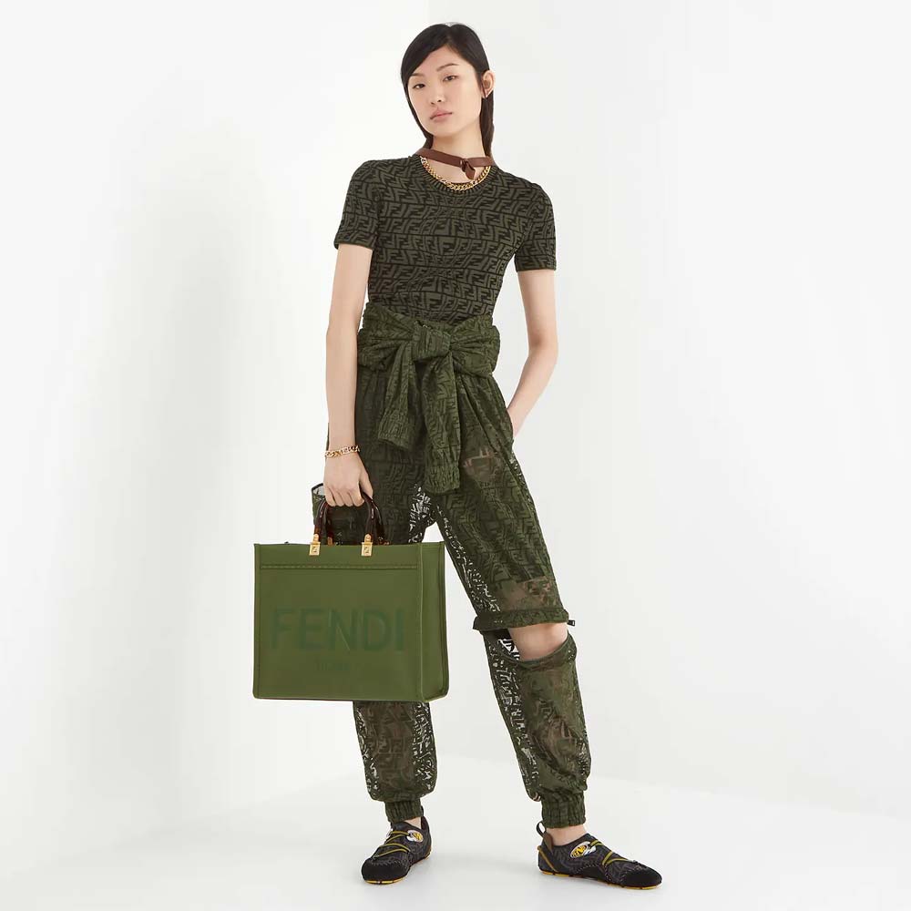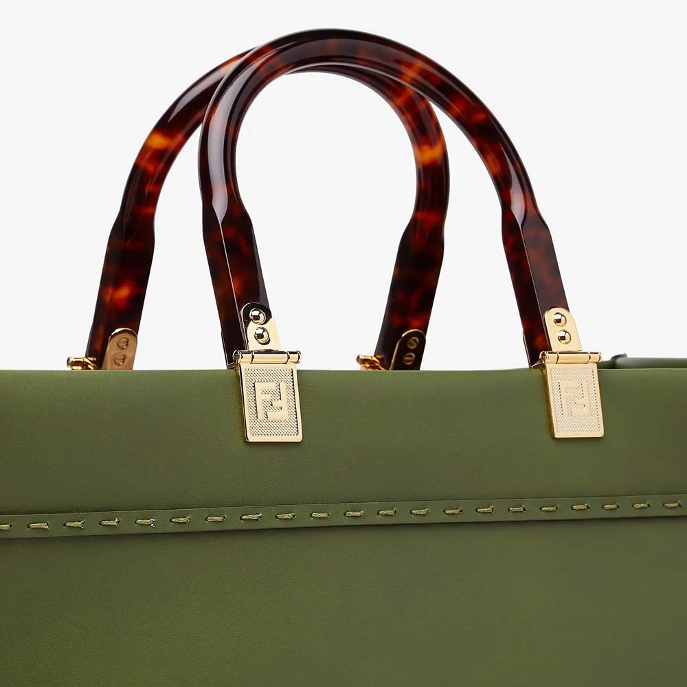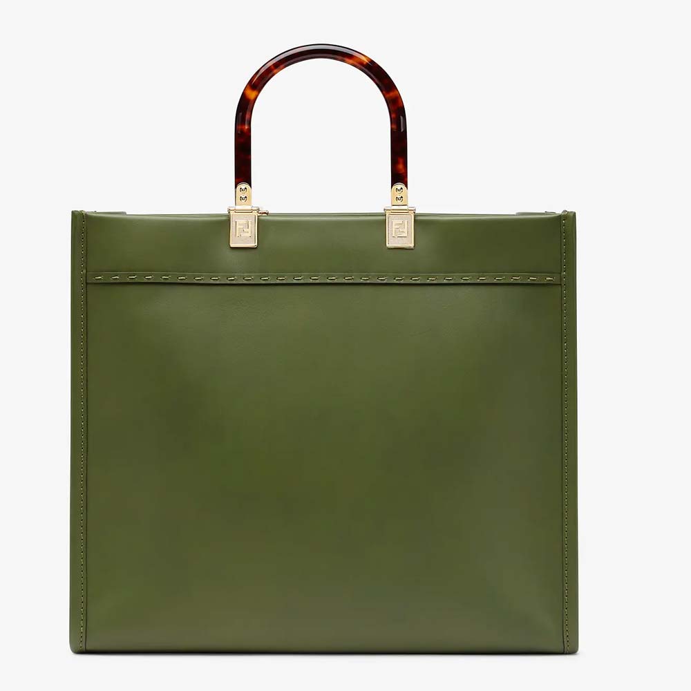 FENDI SUNSHINE MEDIUM Green Leather Bag