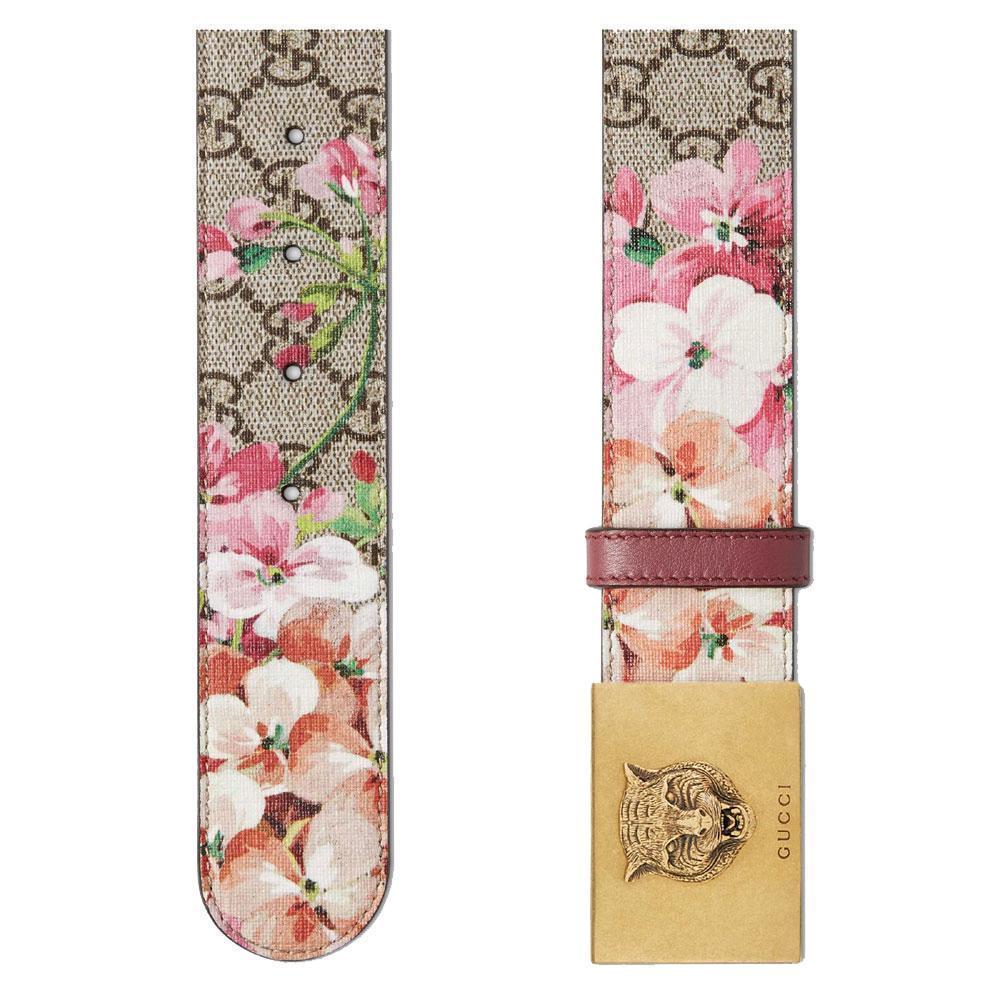 This cool Gucci belt with the gold lion buckle and floral Guccisima pattern is a statement piece for your wardrobe. It will be cute with anything you choose to wear with it.