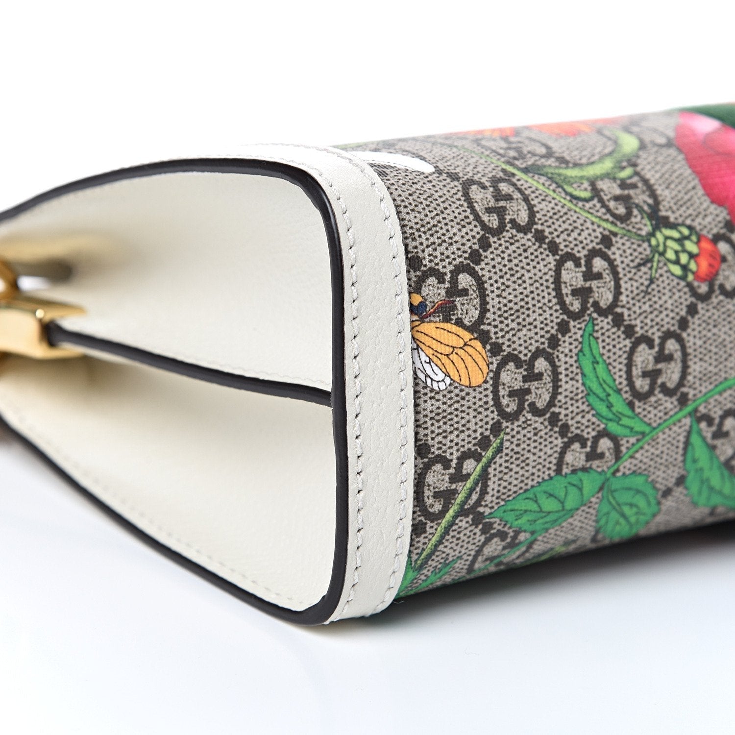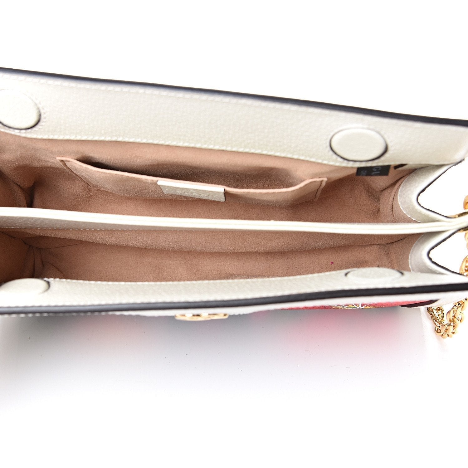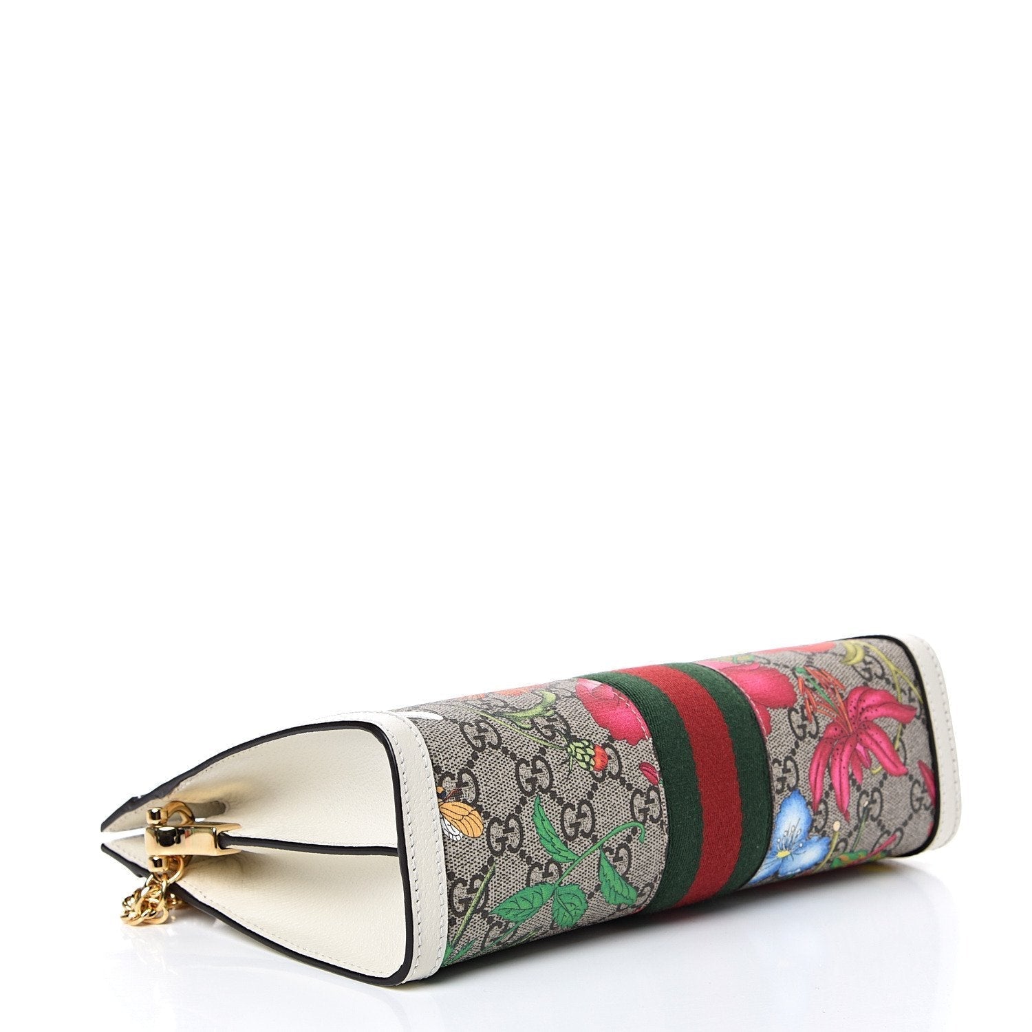 GG Supreme Monogram Flora Web Small Ophidia Chain Shoulder Bag White 503877