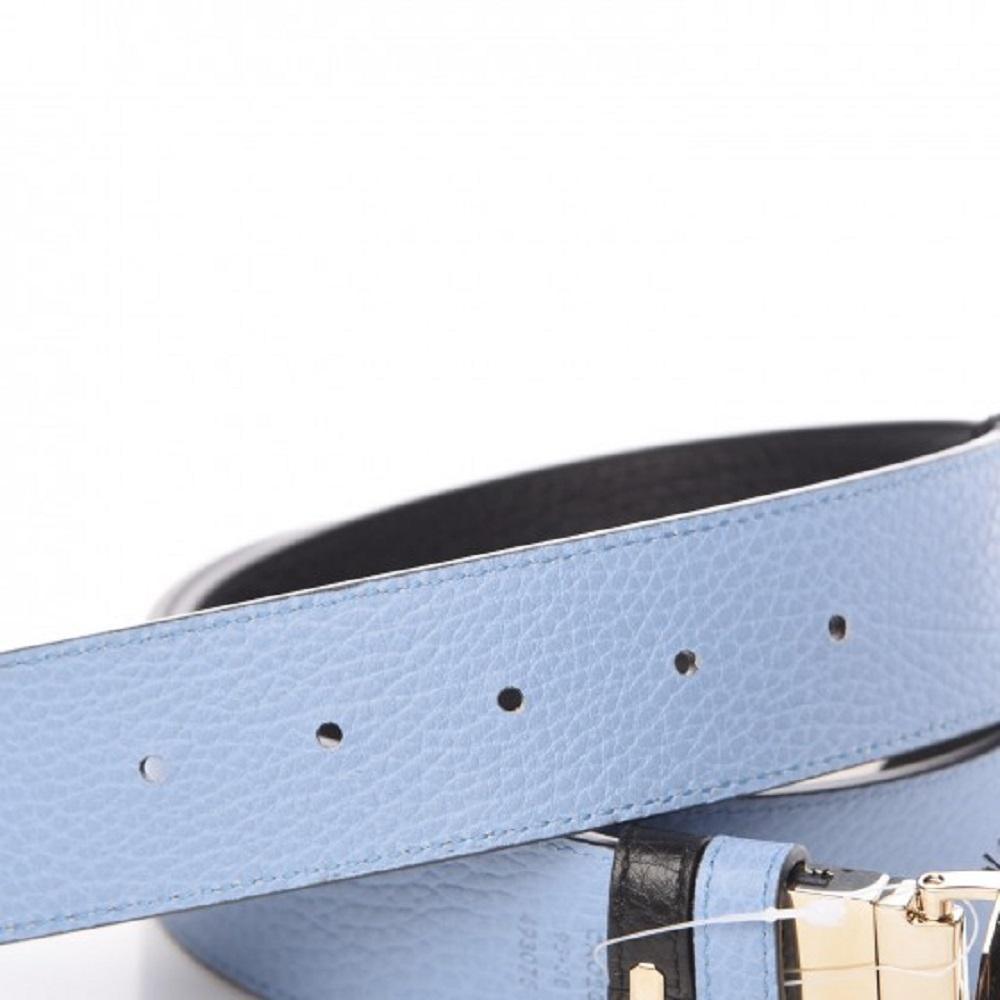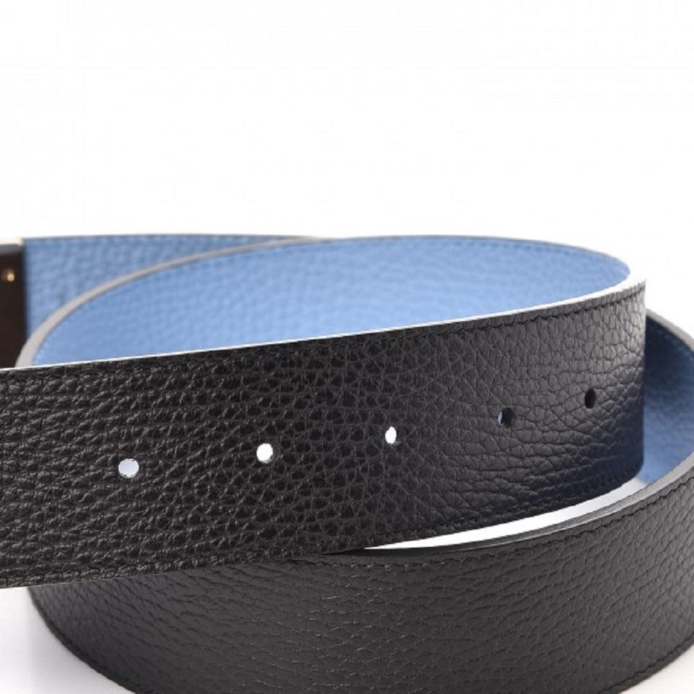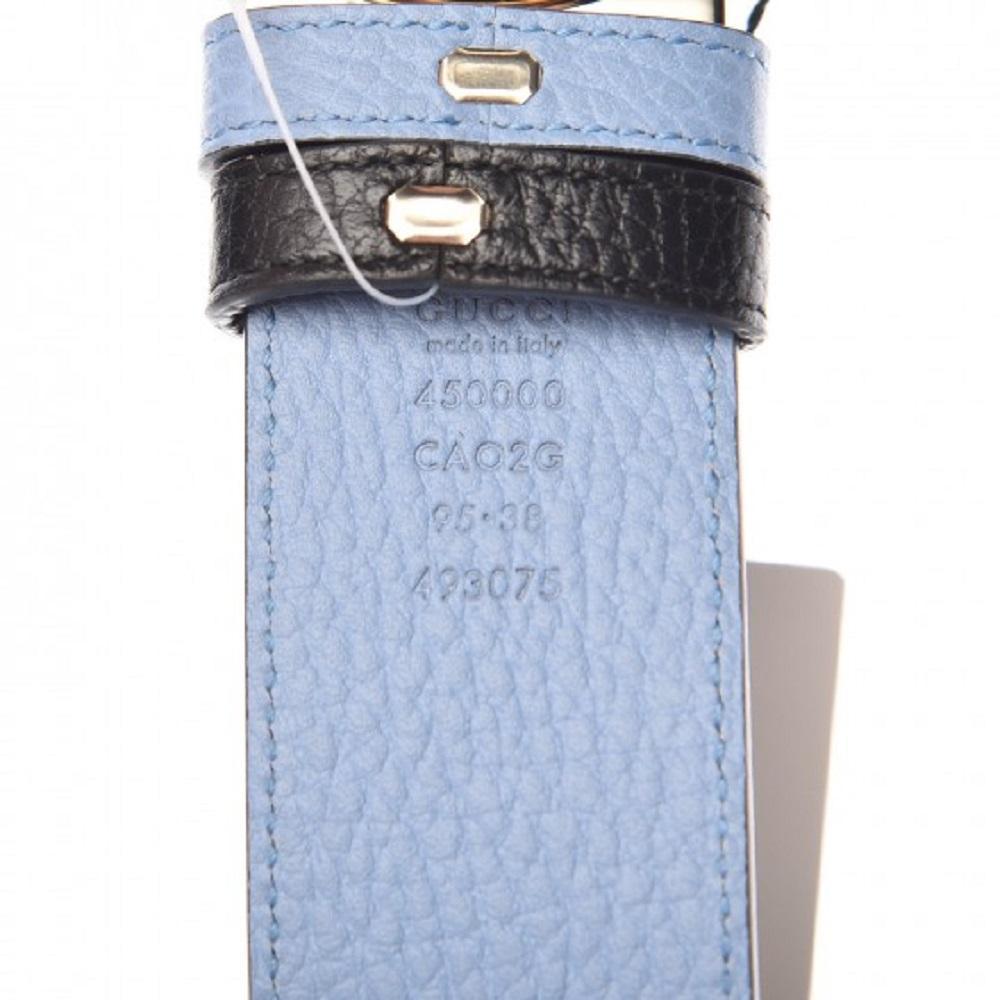 Gucci GG Dollar Calf Leather Nero Black/ Mineral Blue Reversible Belt Size 95/38