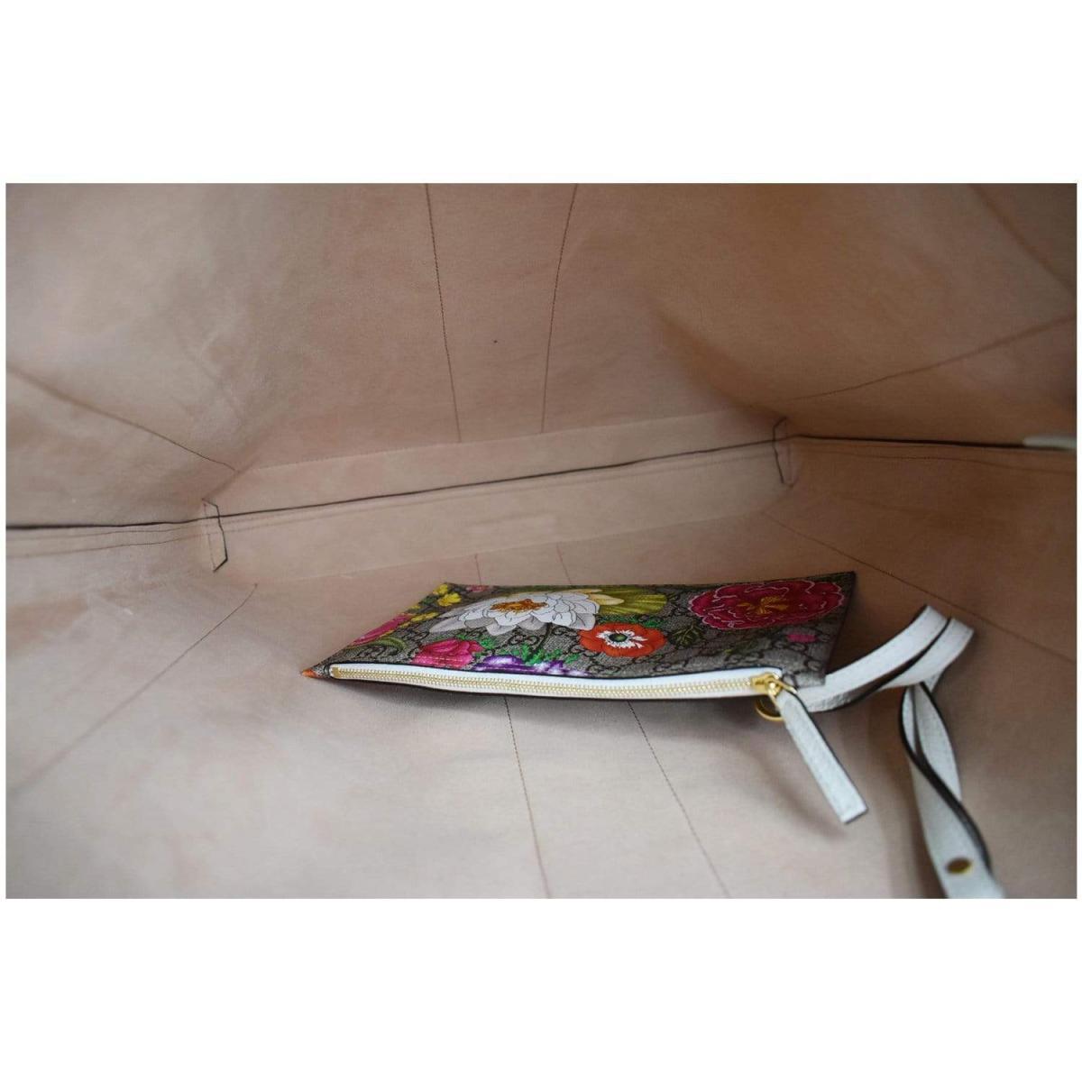Gucci Ophidia GG Flora Canvas White Leather Vertical Shopping Tote 519335
