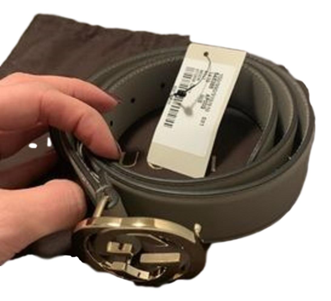 Gucci Storm Grey Gold Toned Hardware Interlocking G Buckle Belt 546386 100/40