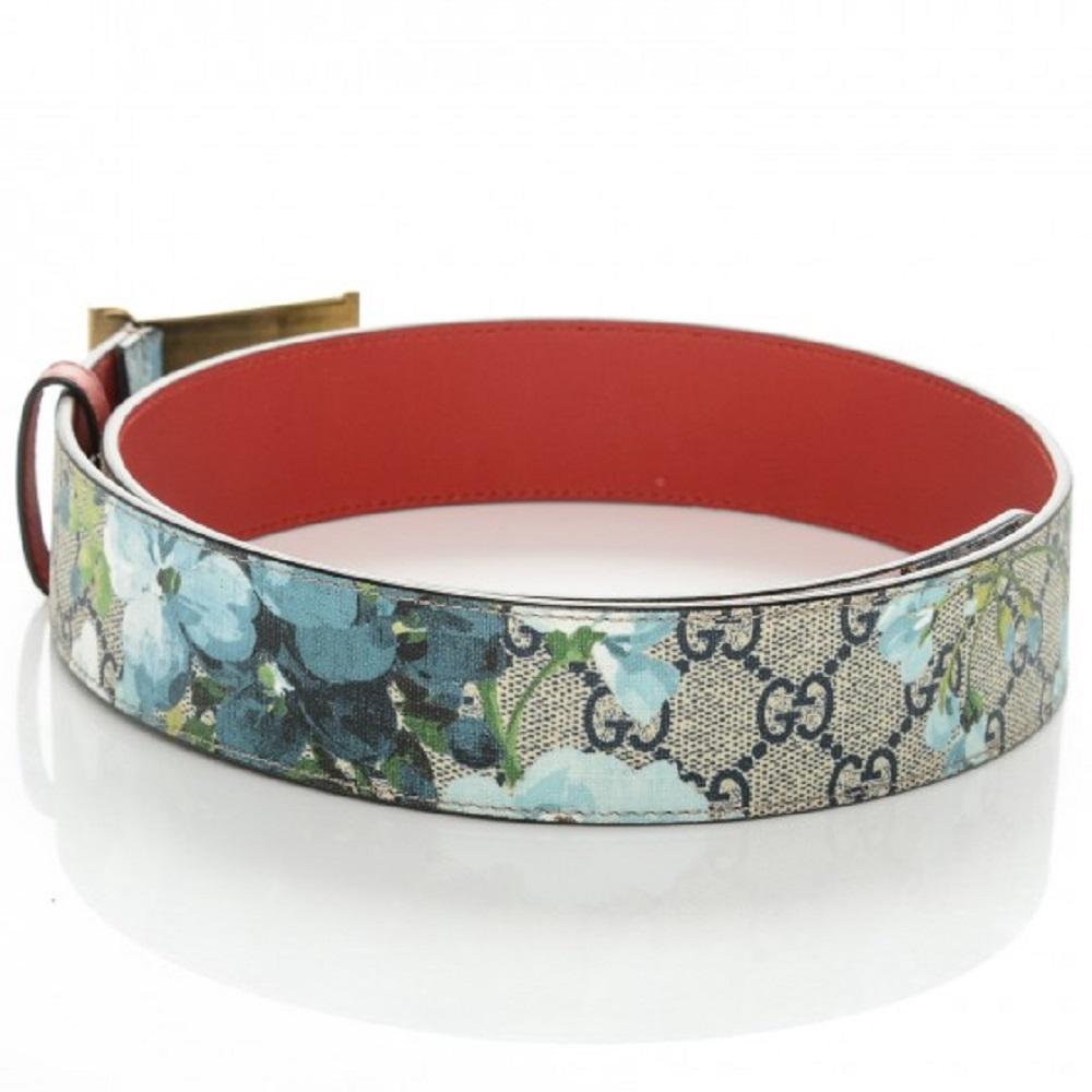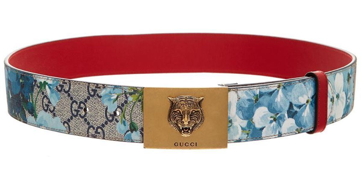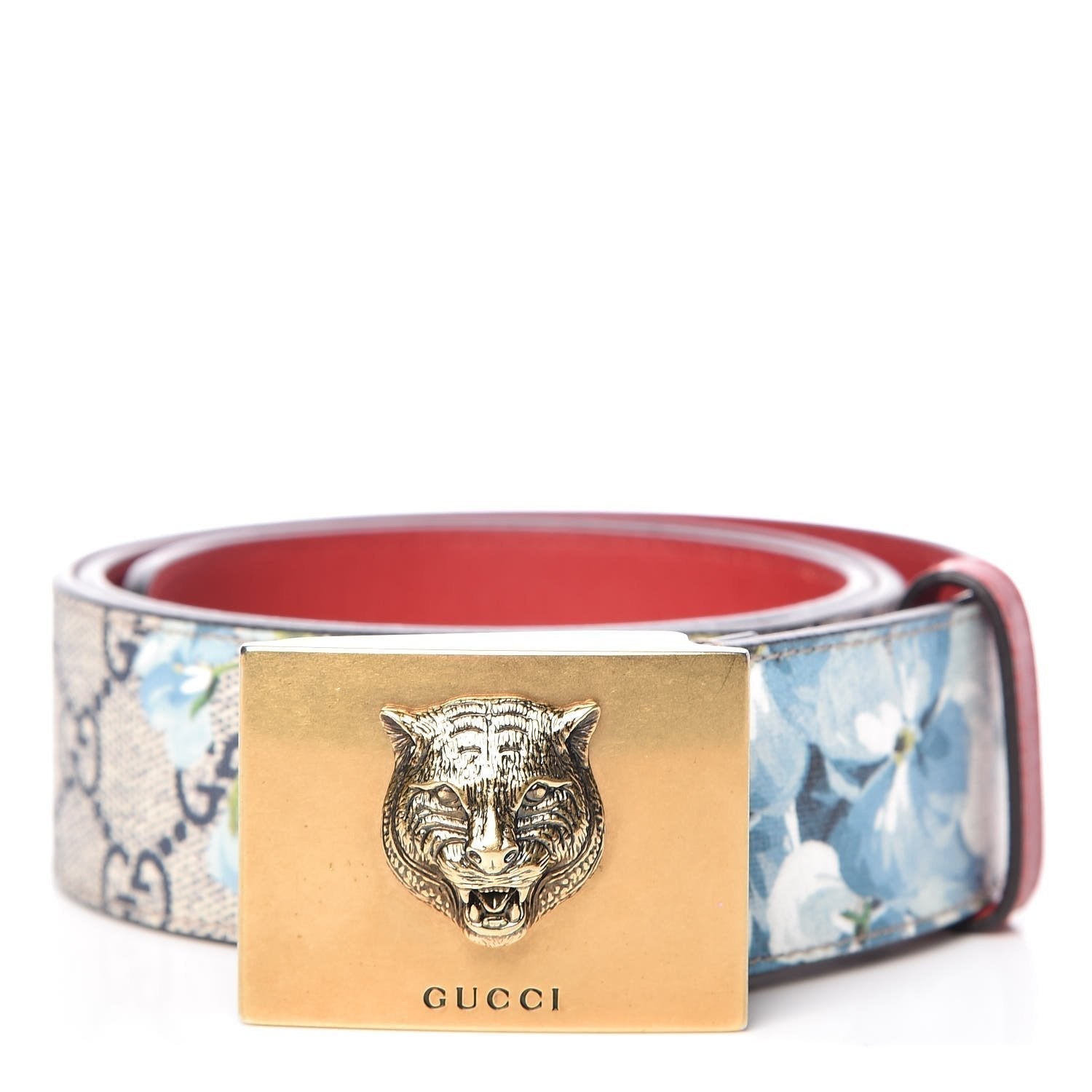 Gucci Womens Blooms GG Canvas Leather Tiger Head Buckle Belt 95/38