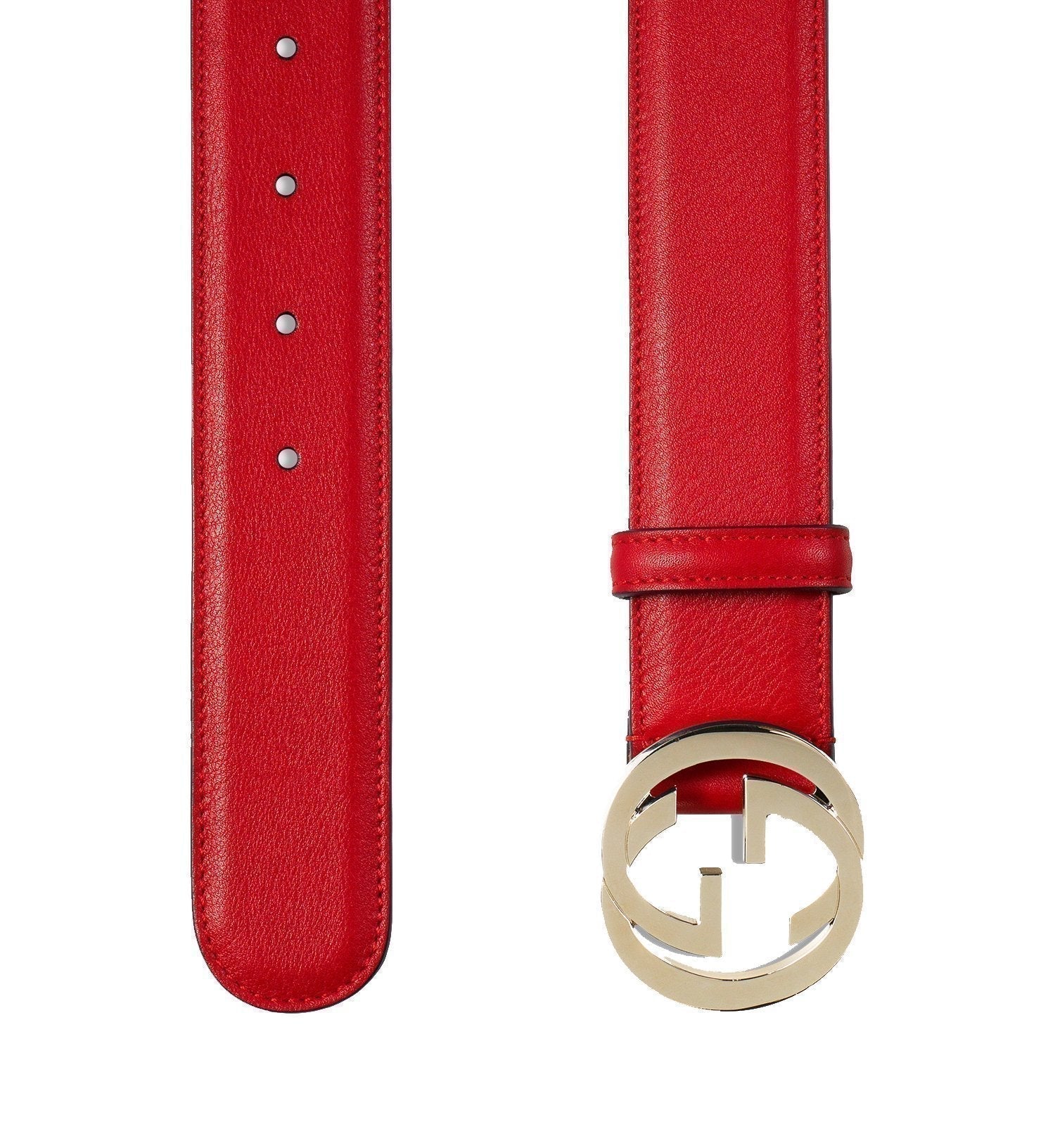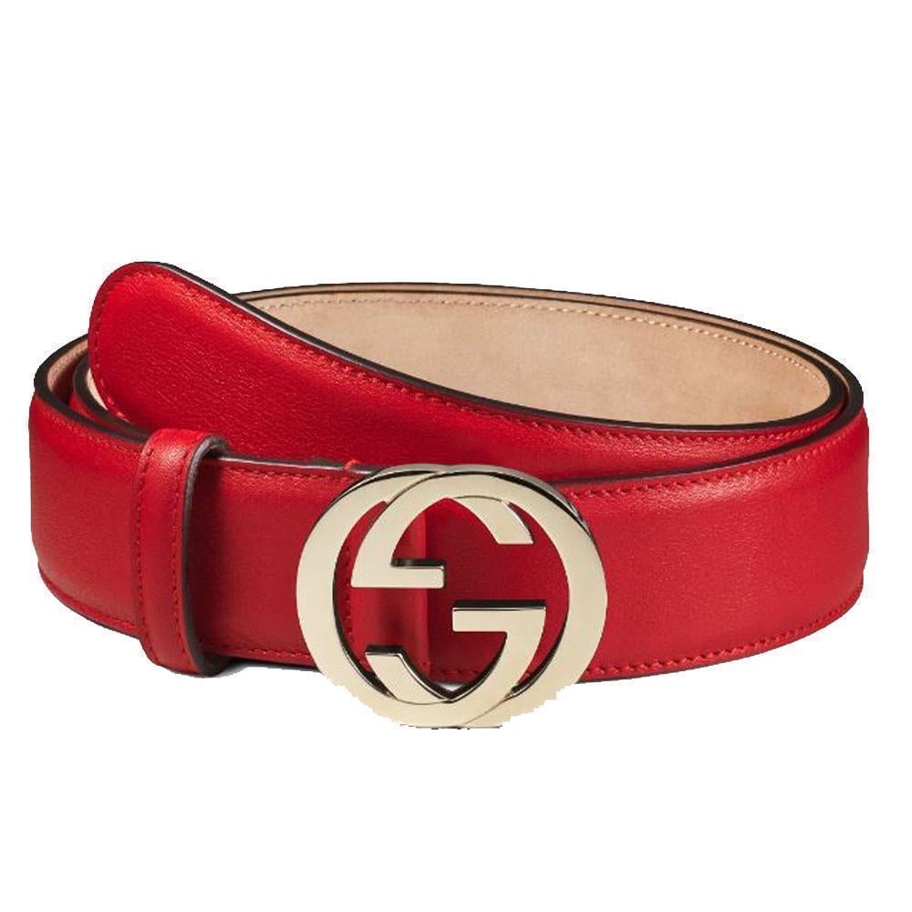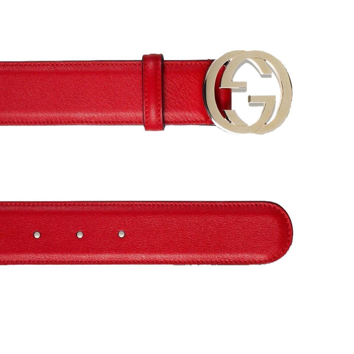 Gucci Women's Red Leather Belt with Interlocking G Buckle 370543 Size 40