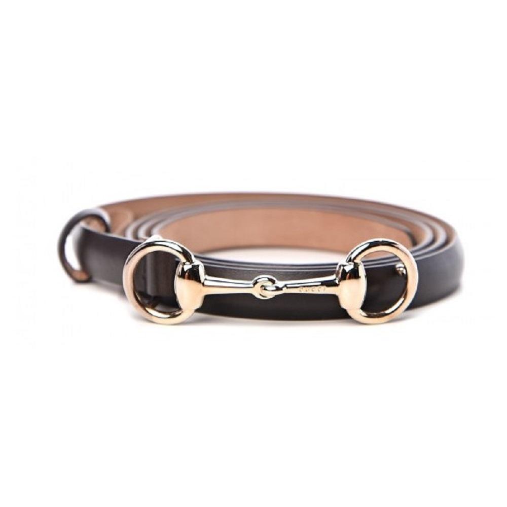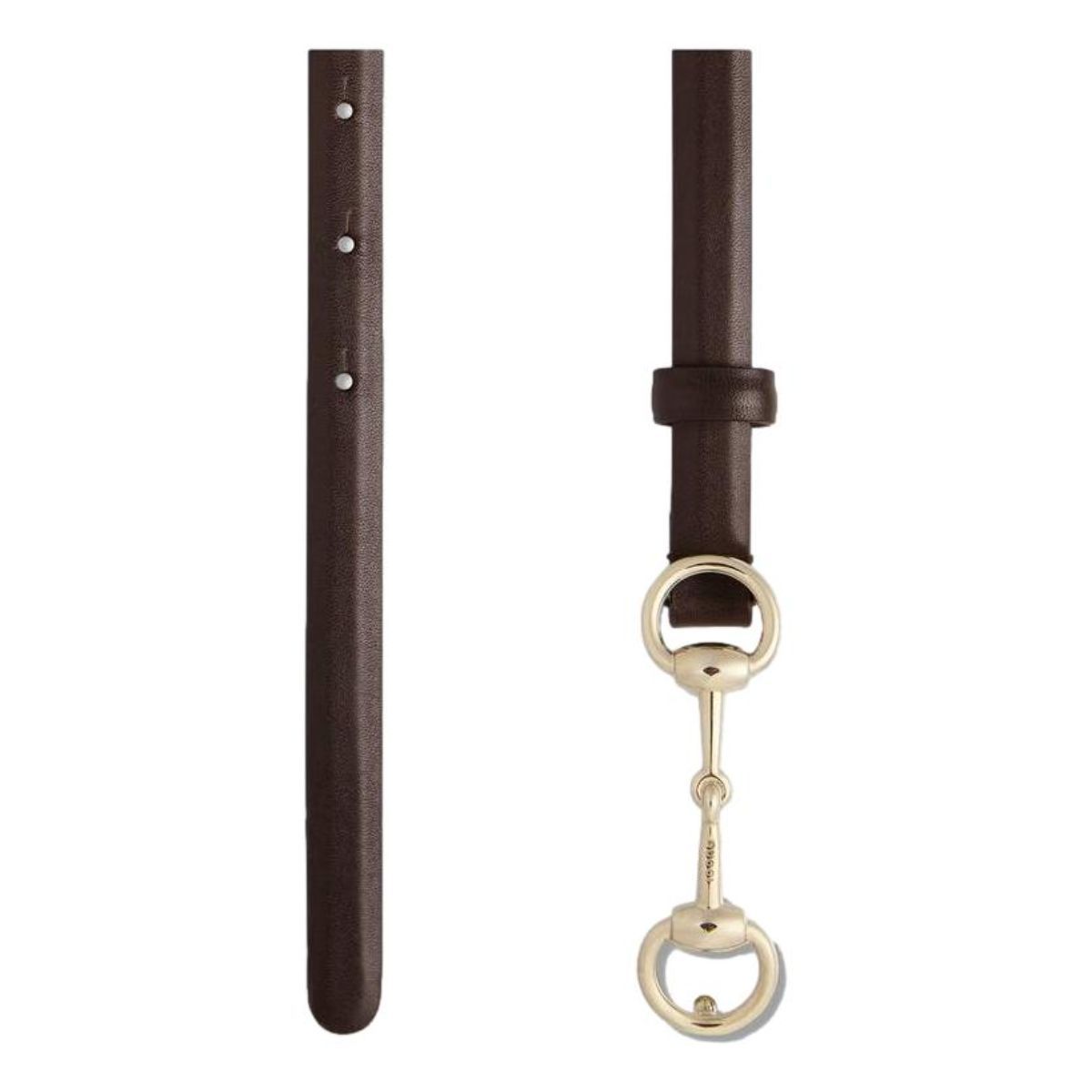Gucci Women's Skinny Horsebit Cocoa Brown Leather Belt Size 85/34 282349