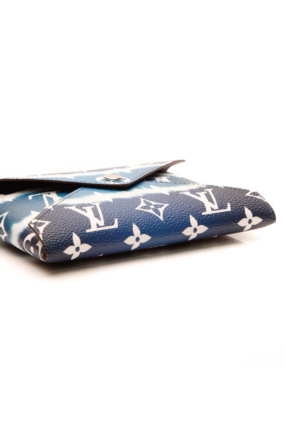 This authentic Louis Vuitton Kirigami pochette is the ideal travel companion. This pretty piece features an interior capable of carrying passport-sized items. The Monogram canvas in a pretty blue tie-dye effect and tonal interior leather add that final LV touch to this perfect envelope!