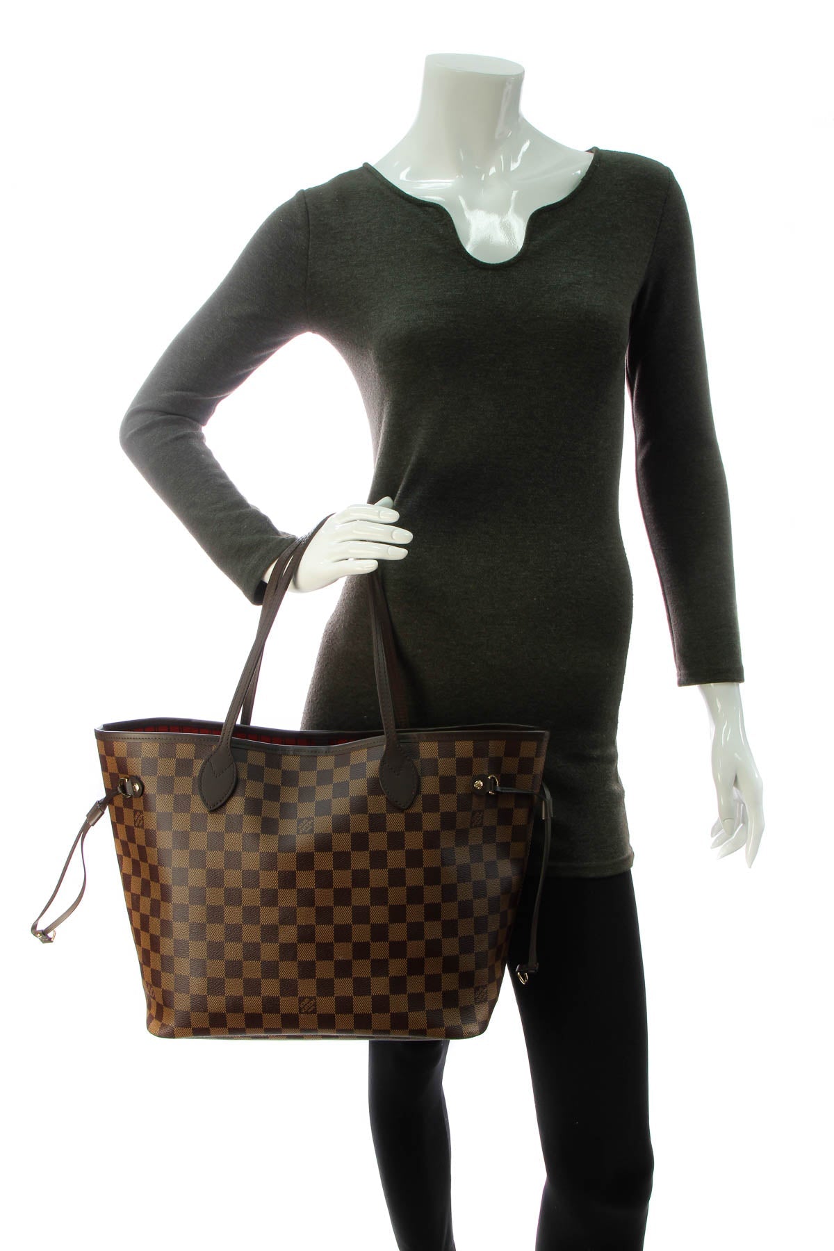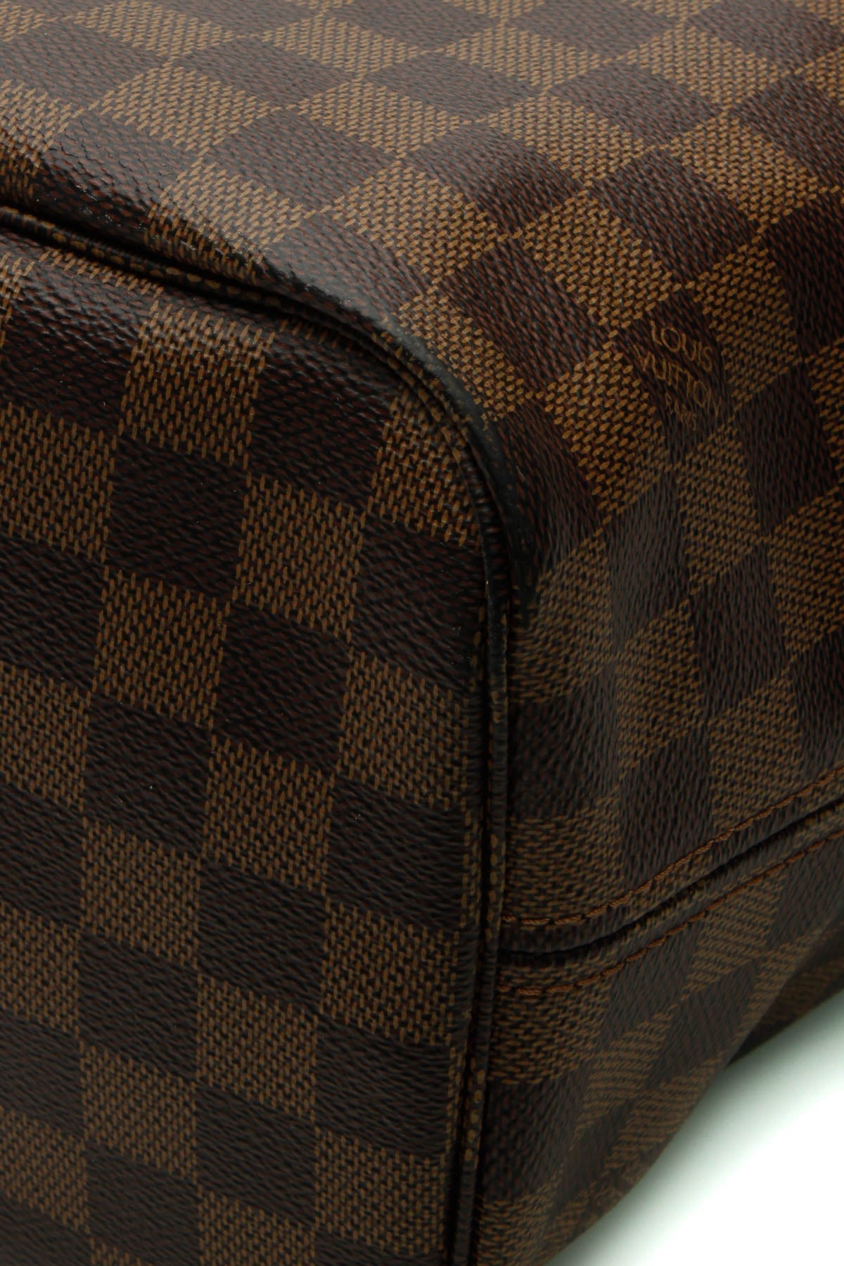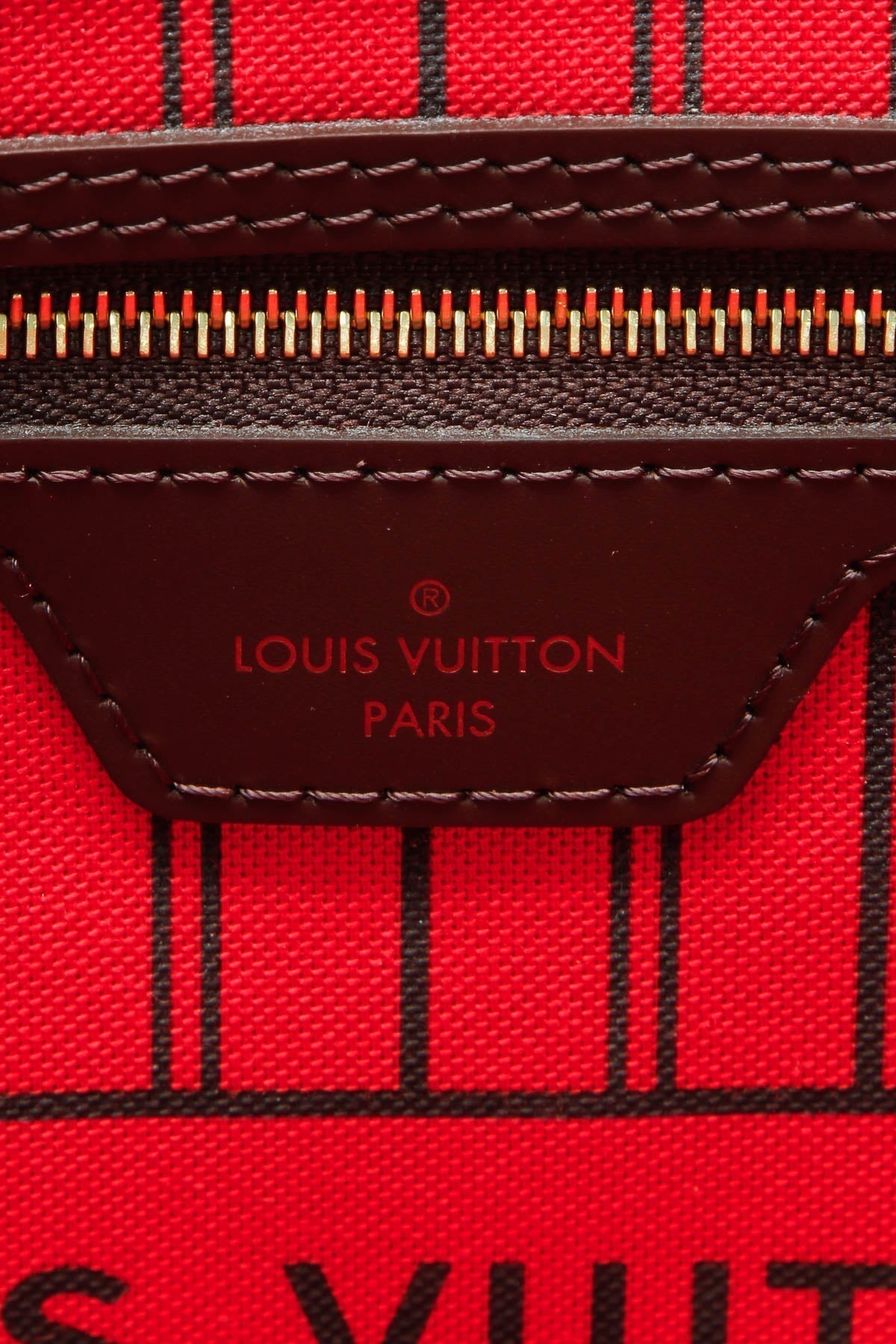 This authentic Louis Vuitton Neverfull MM tote bag is a girl's best friend. Instantly recognizable brown Damier Ebene canvas adorns the exterior of this timeless tote, while a red canvas-lined interior provides ample space for essentials. Undeniably one of Louis Vuitton's most popular styles, this timeless beauty is completely splurge-worthy.