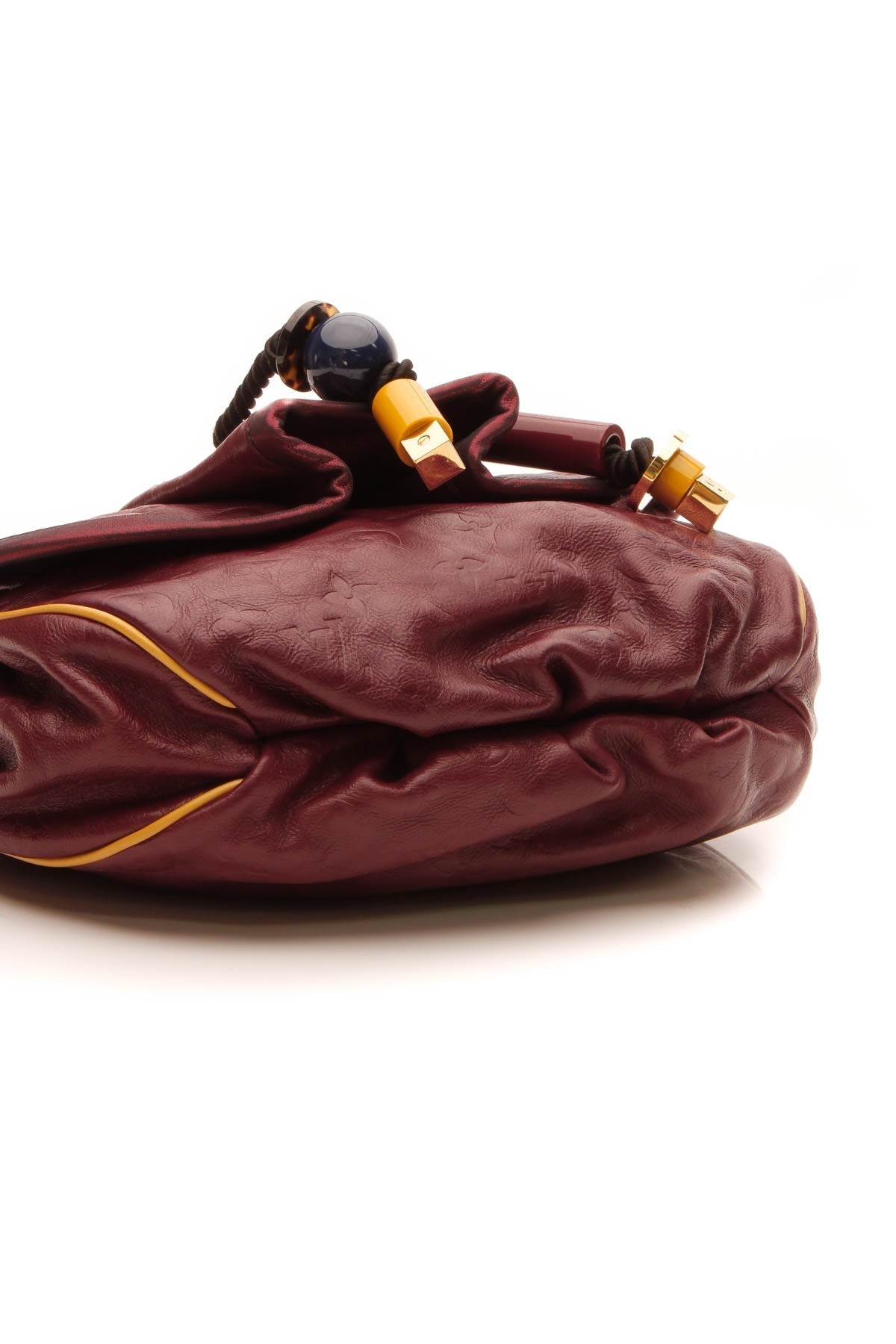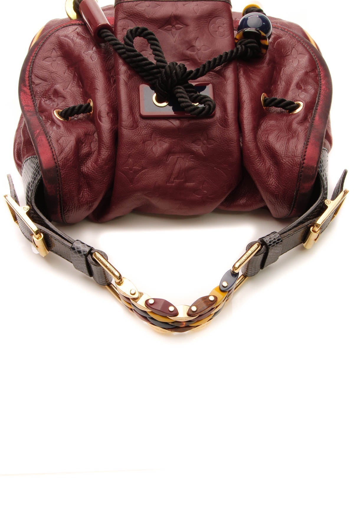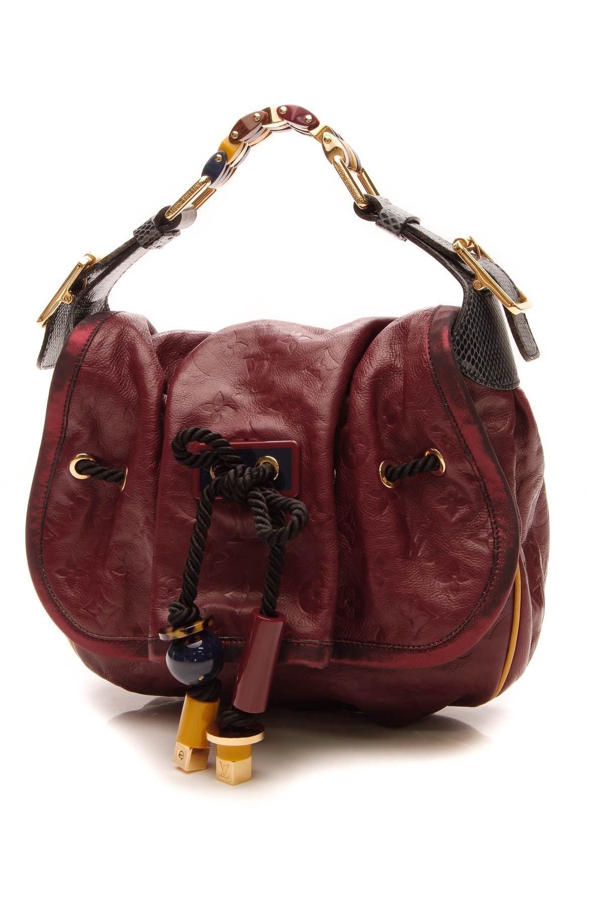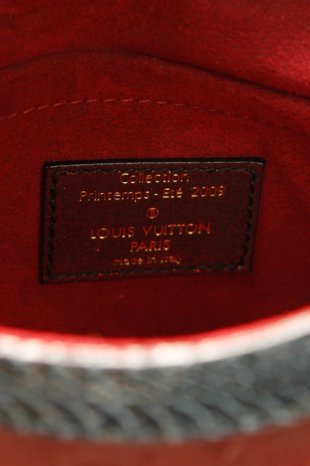 From Louis Vuitton's 2009 Spring/Summer collection, this authentic limited edition Kalahari PM bag is a statement maker. In this piece, Monogram embossed leather, metallic trim, snakeskin, resin beads and drawstring details combine to achieve elegance not often seen. Once opened, a perfectly-sized interior presents a stylish sanctuary for both day and evening essentials alike.