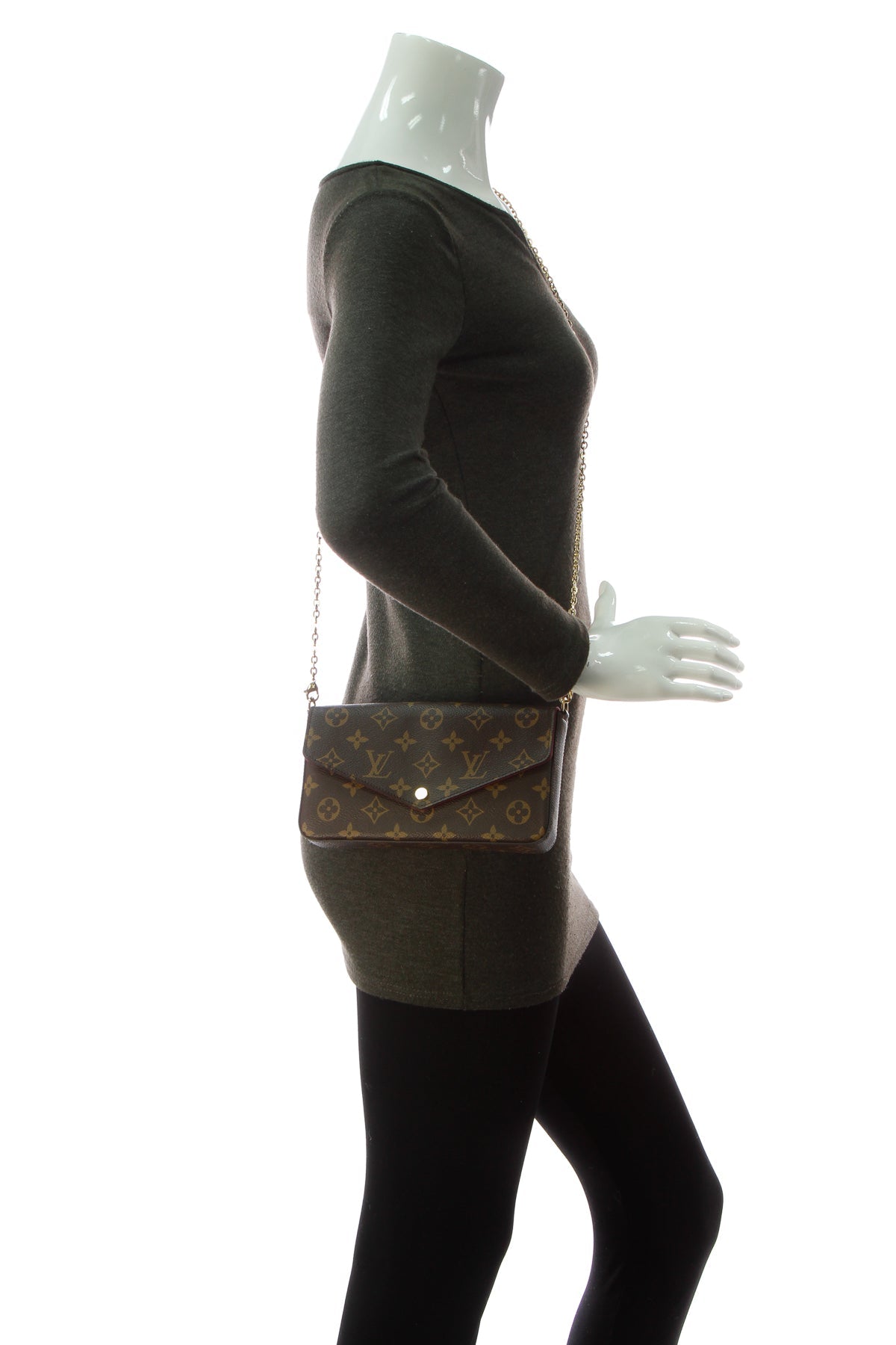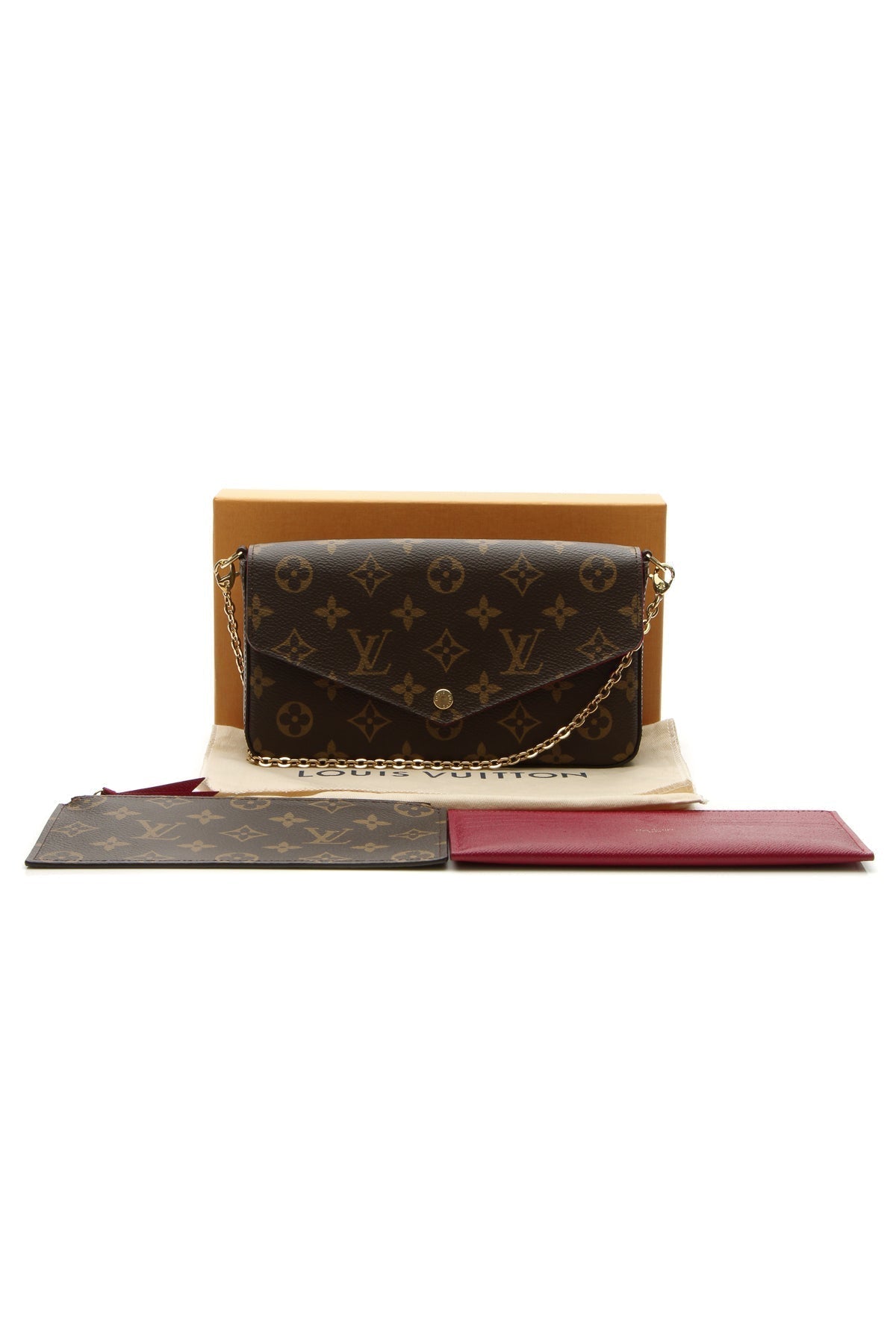 Display modern elegance with this authentic Louis Vuitton Felicie Pochette bag. Statement-making in every respect, this versatile accessory features a Monogram exterior and a gold-tone Louis Vuitton snap closure. Open this bag to find a berry-toned interior capable of holding just the needed essentials.