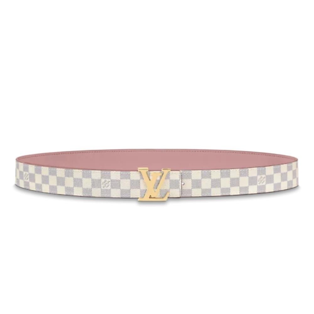 The LV Initiales 30mm Reversible belt, with its lush pink pastel on one side and signature Damier canvas on the other, is a truly versatile statement piece. This slim belt, made of soft calf leather, is the perfect partner accessory to the House's iconic bags. A metal LV Initiales buckle completes the silhouette of this timeless belt.