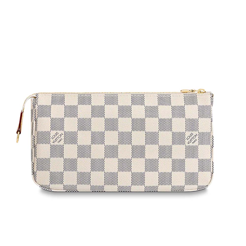Damier Azur canvas gives the iconic shape of the Pochette Accessoires a bright, alluring appeal. Slightly larger than the original design, it can easily accommodate a Zippy wallet.