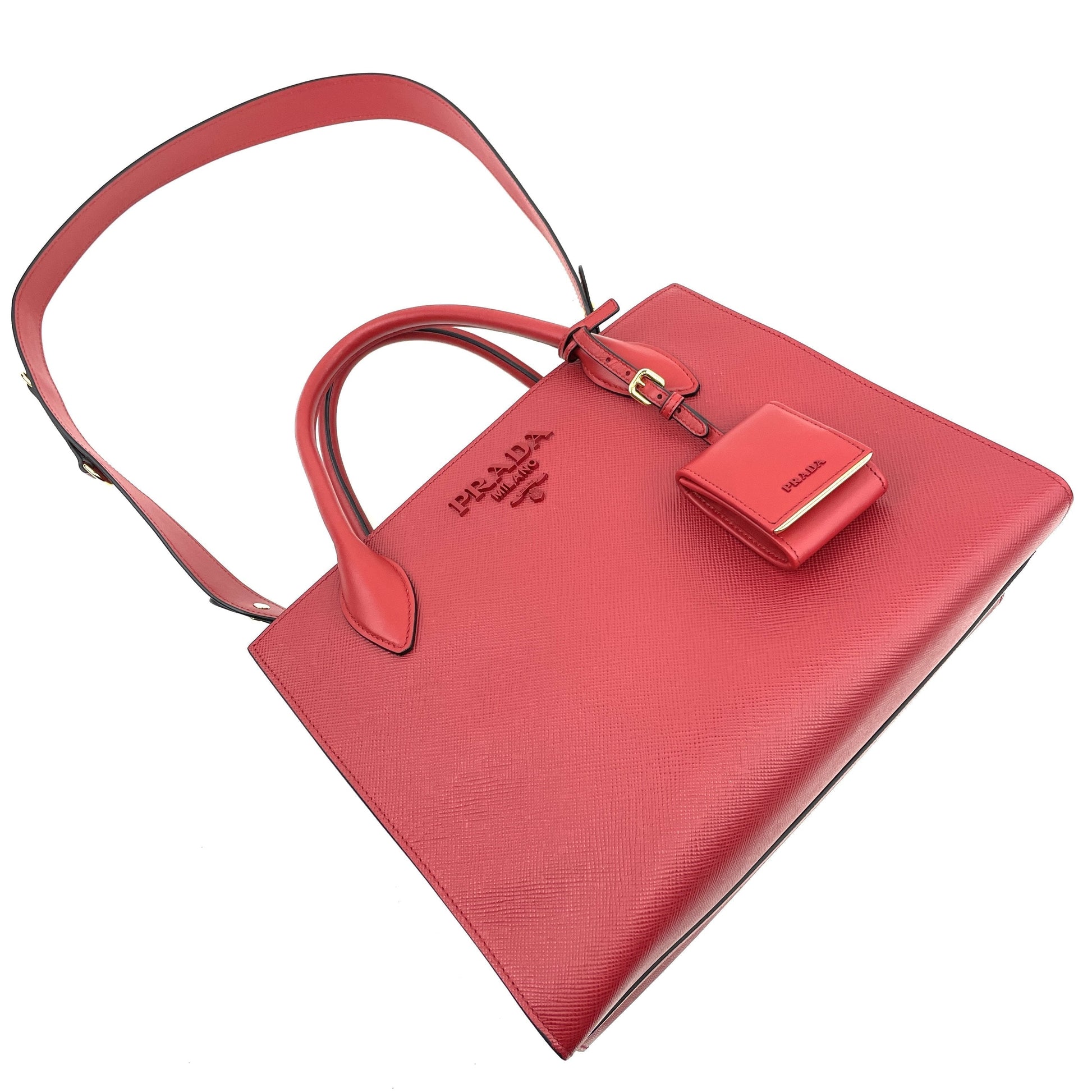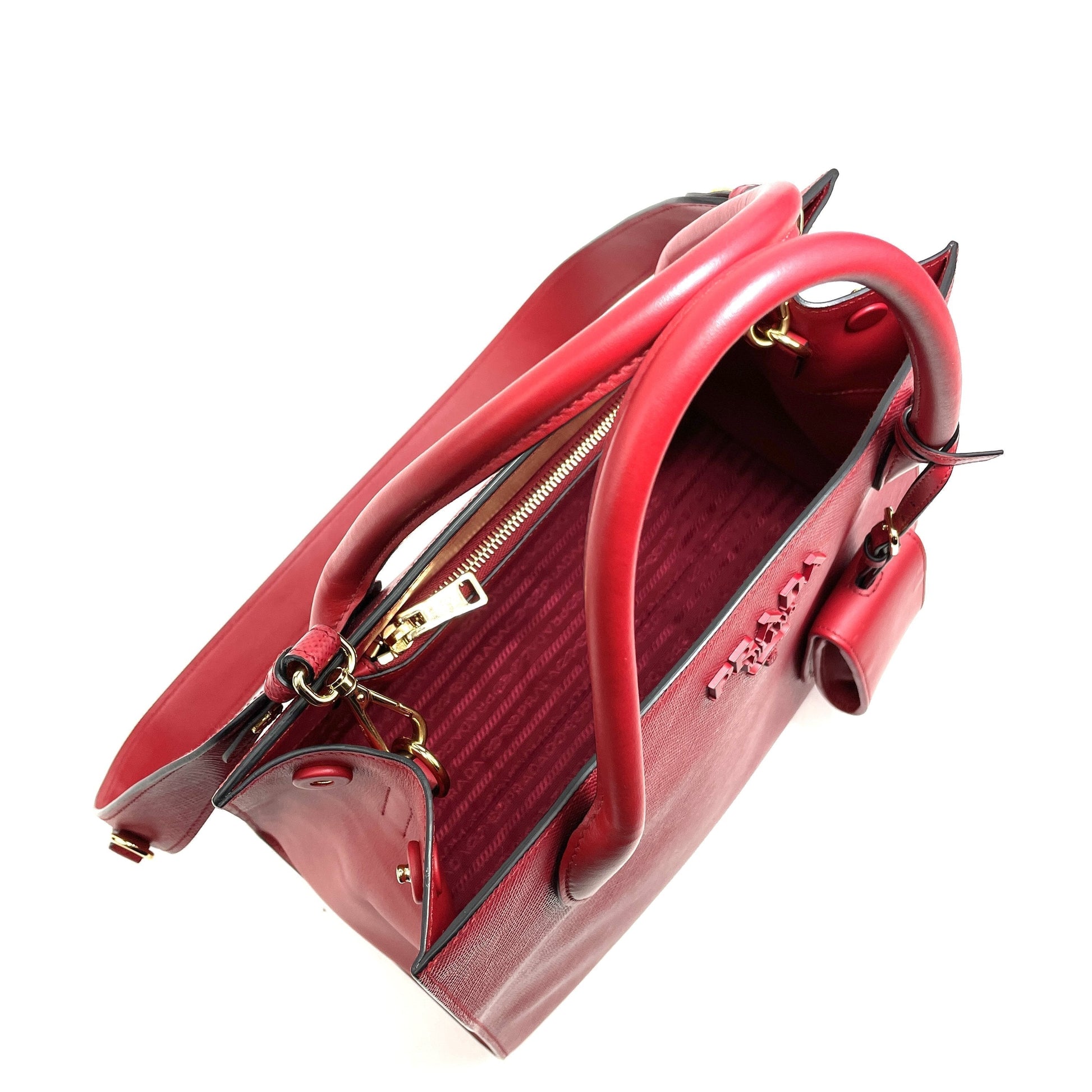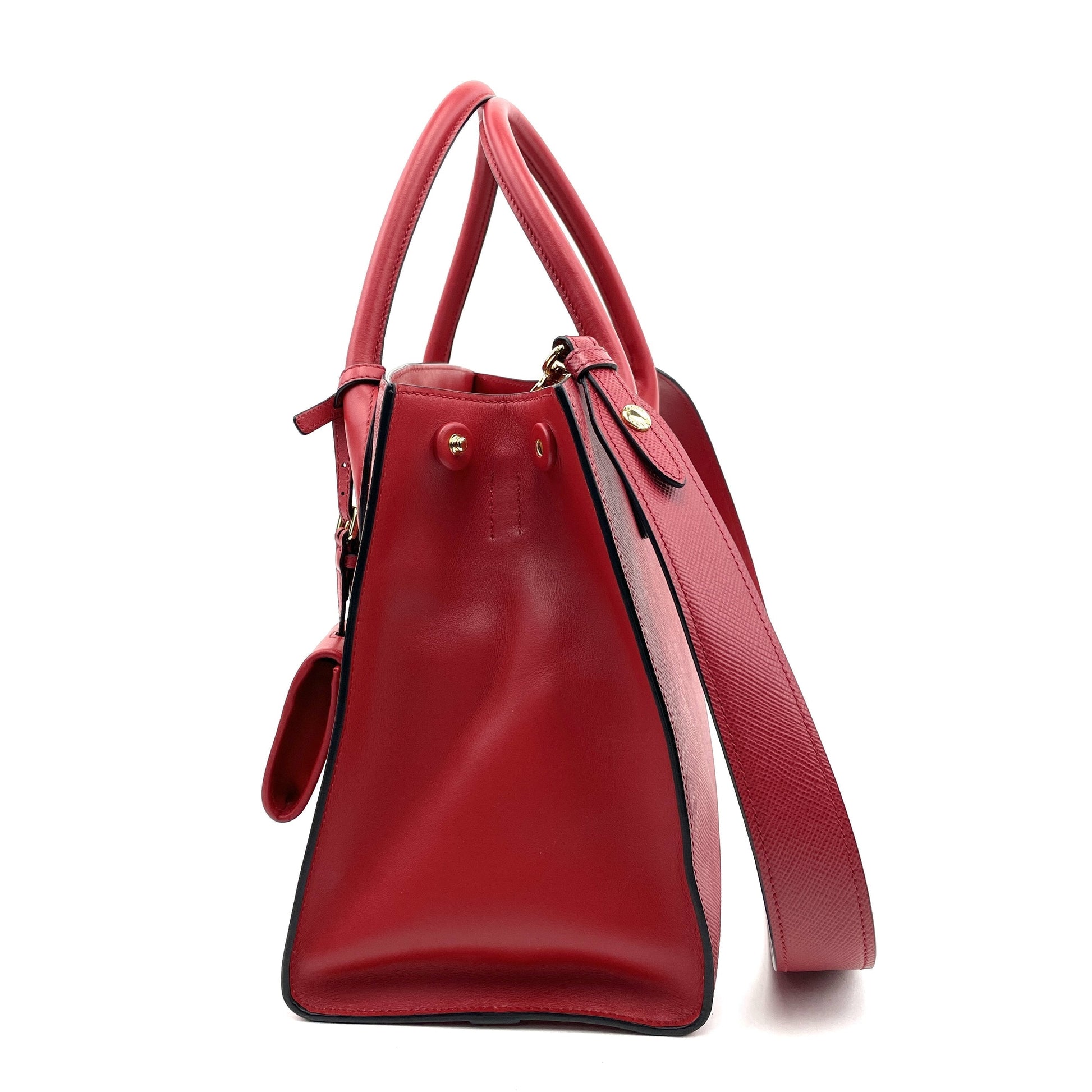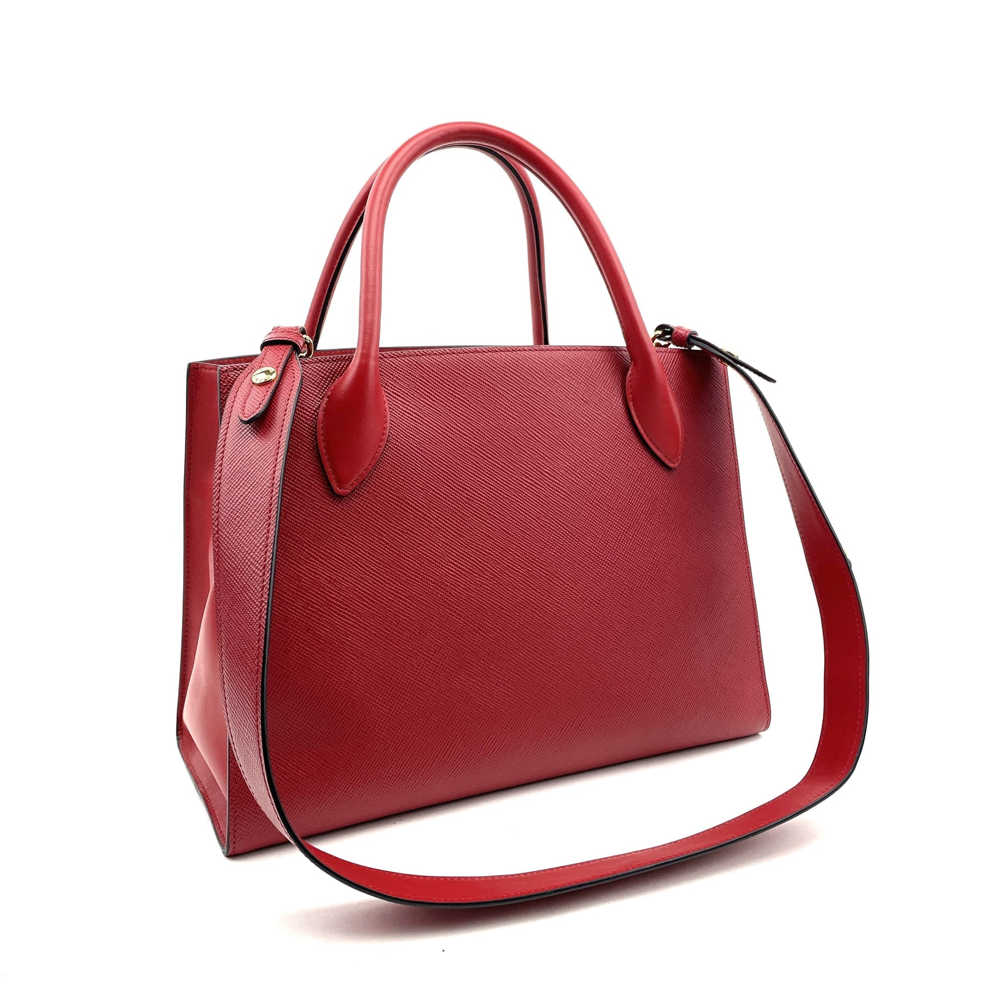 • Prada Tote in Red Saffiano Cuir Leather