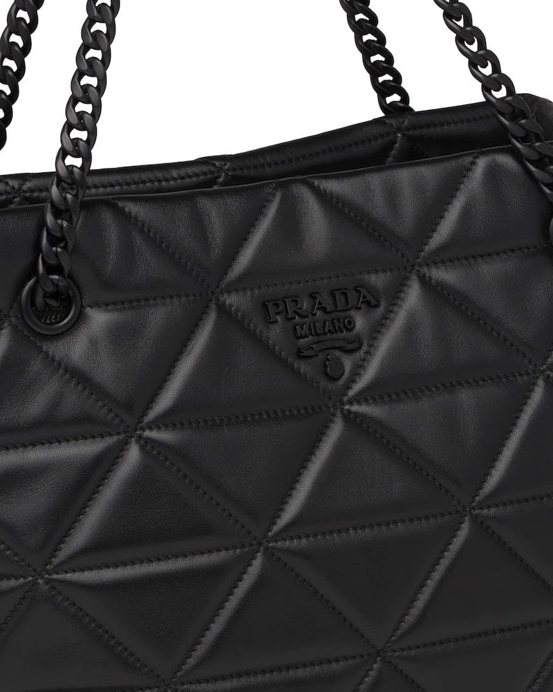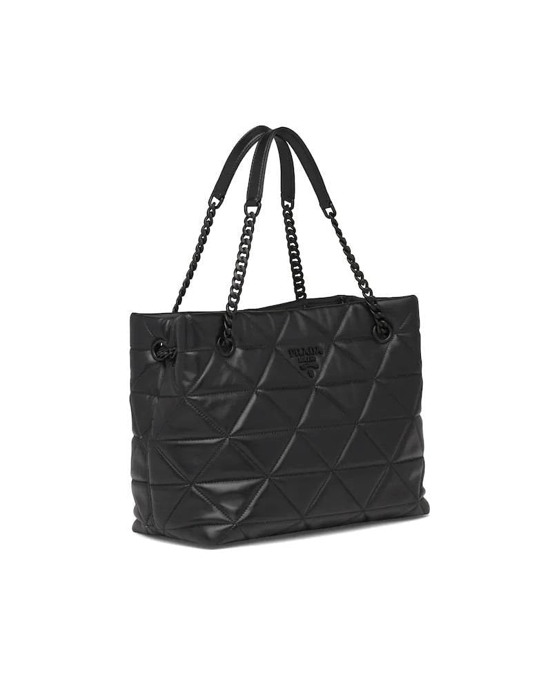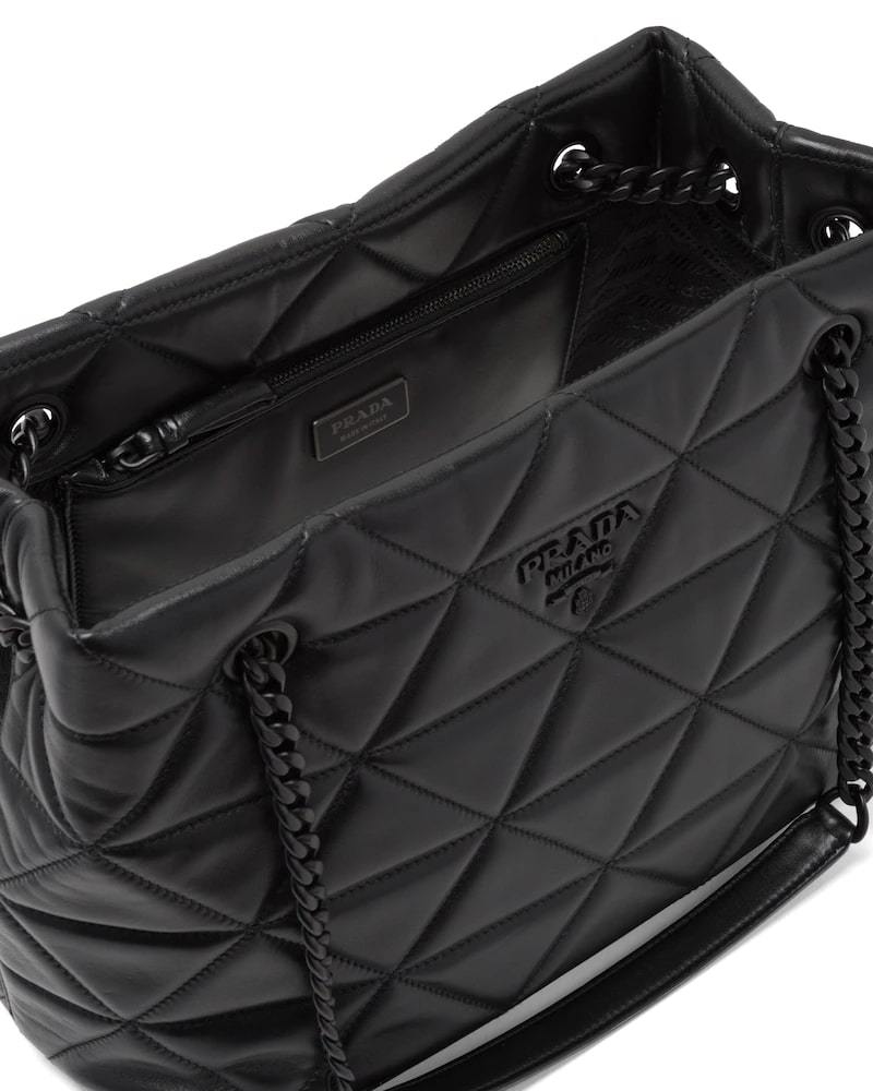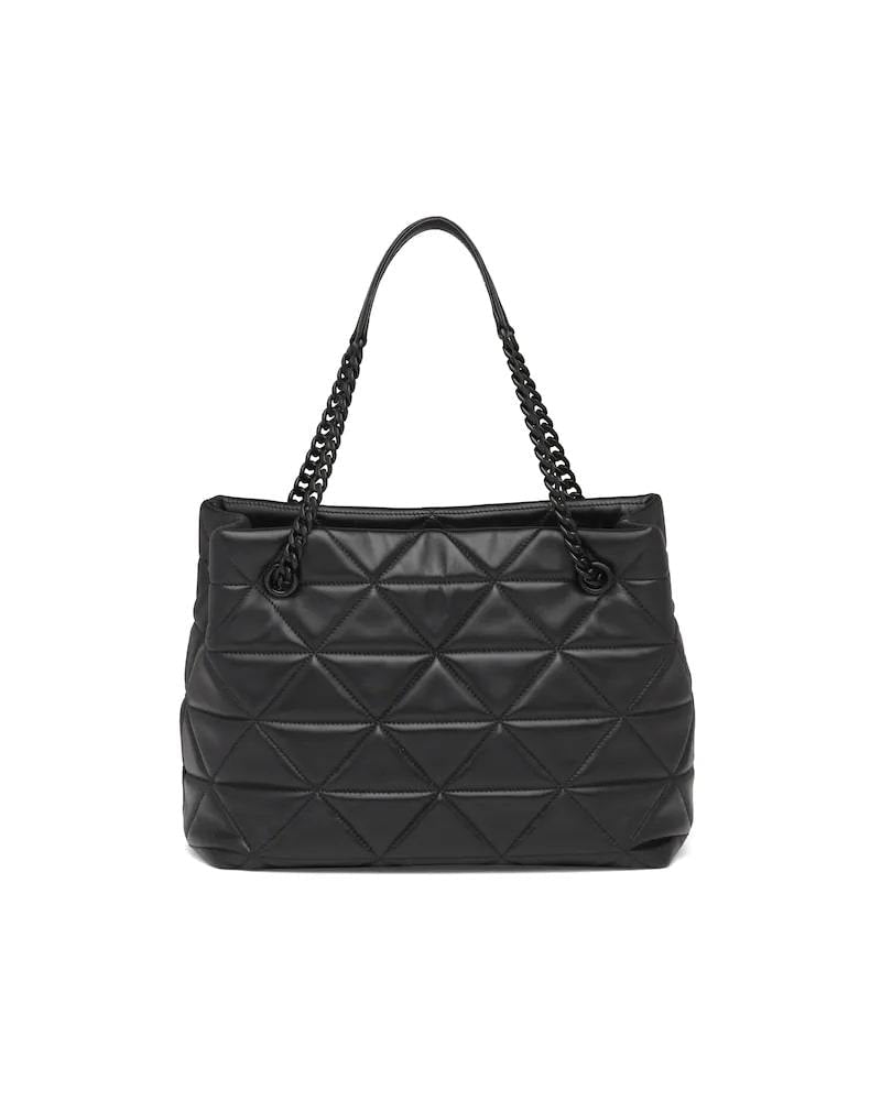 Quilted nappa leather creates a romantic geometric motif on this tote decorated with the metal logo.