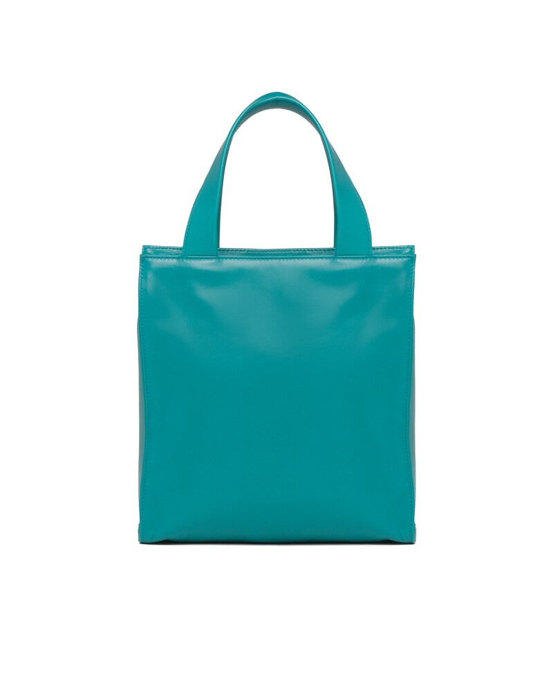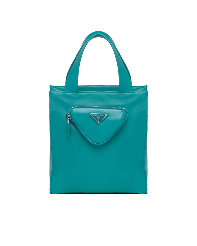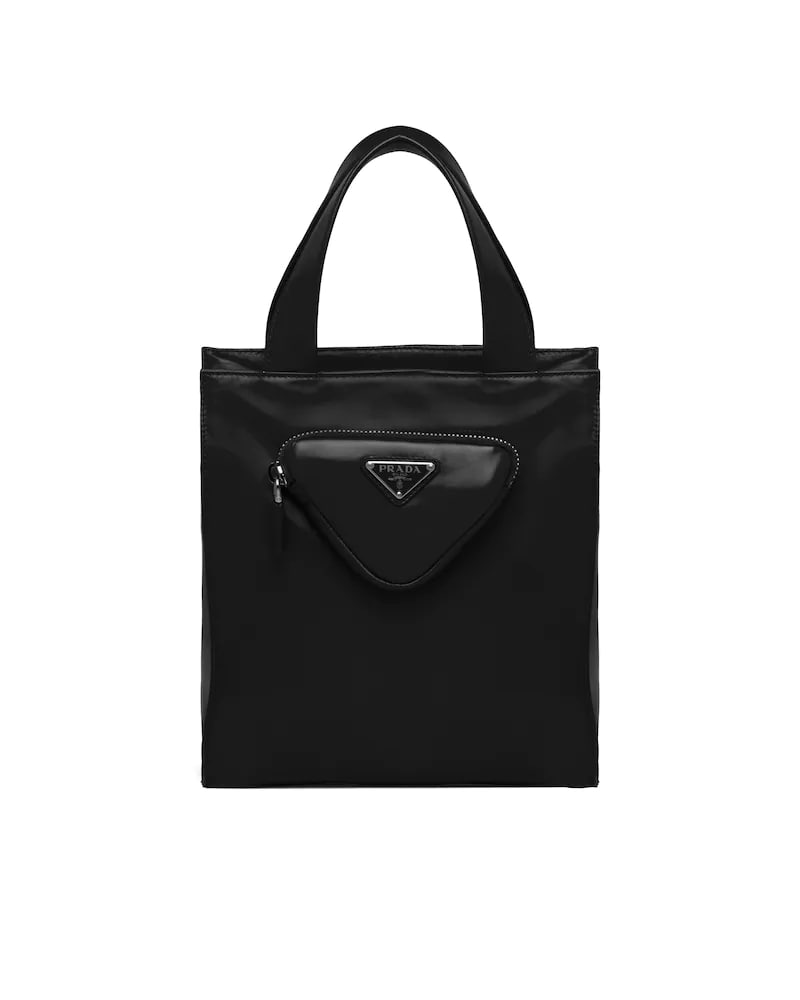 A study of the triangle inspires new shapes and novel interpretations of Prada's historic stylistic code. The iconic shape is proposed in the three-dimensional pocket that decorates this soft nappa leather tote. Sleek, minimalist lines give a contemporary attitude to this accessory with double handle and detachable shoulder strap so it can be worn in different ways.