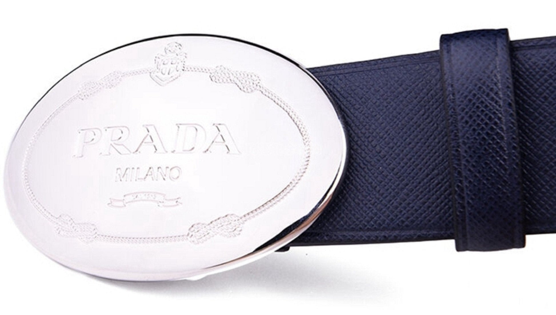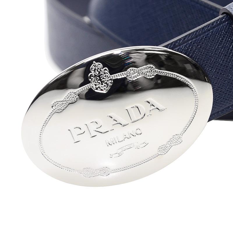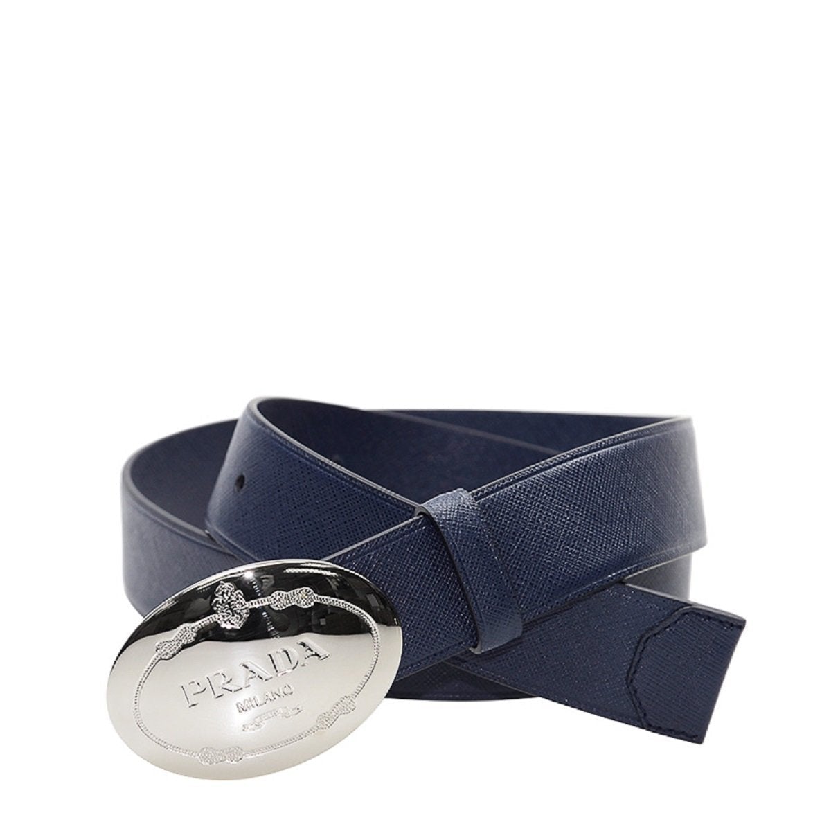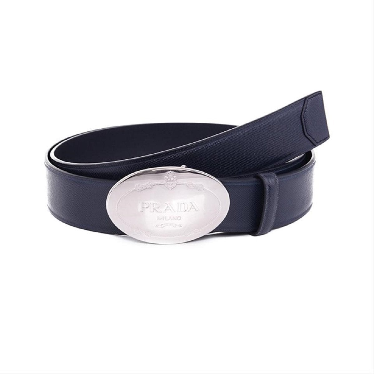 Prada Navy Blue Saffiano Leather Belt Silver Belt Buckle 2CM046 Size 100 / 40