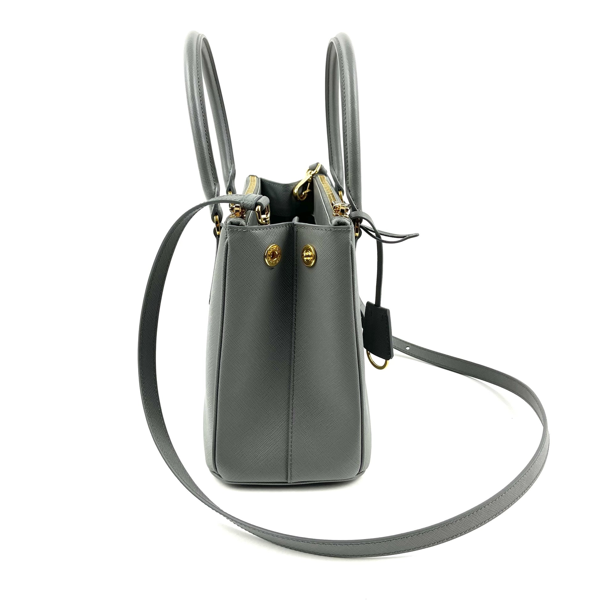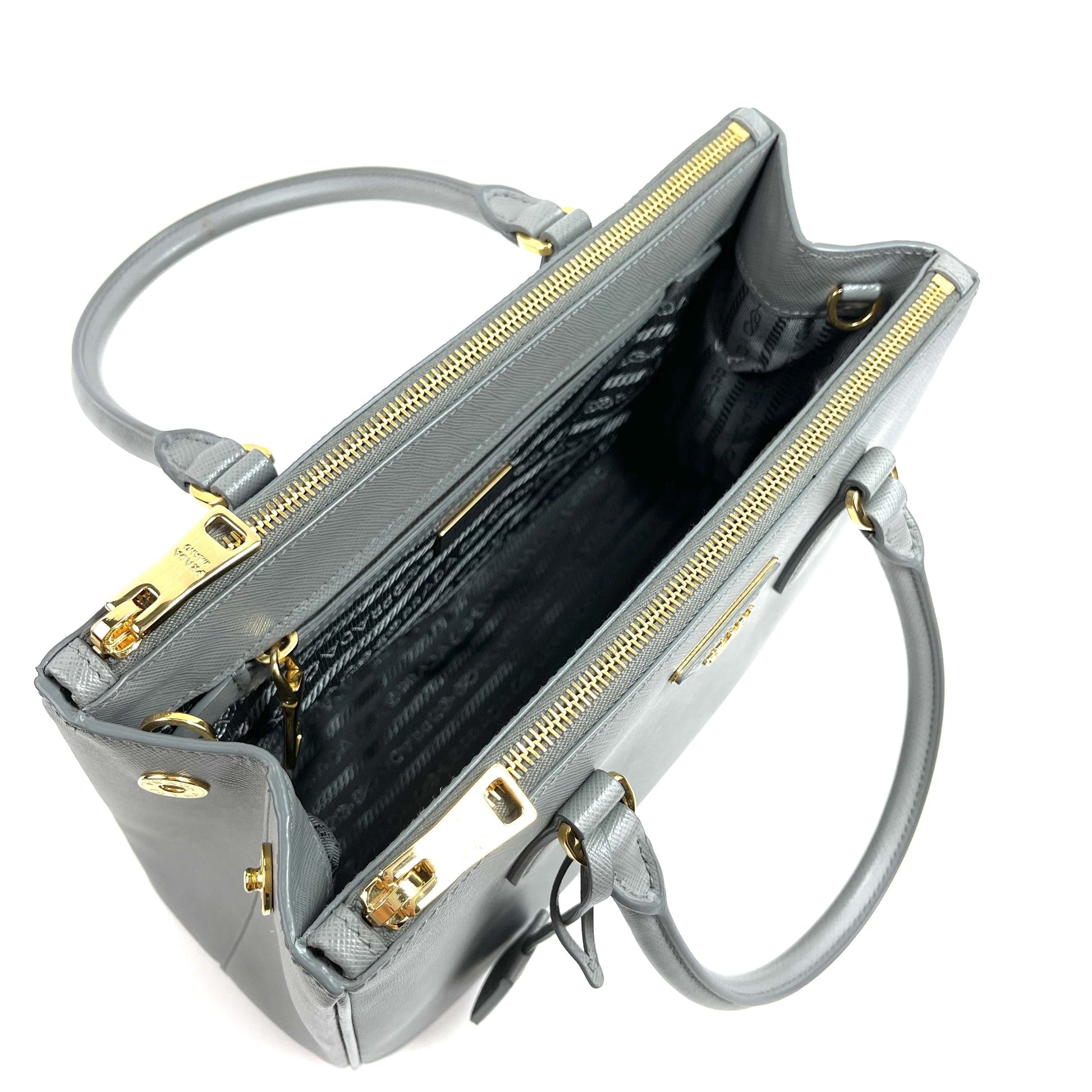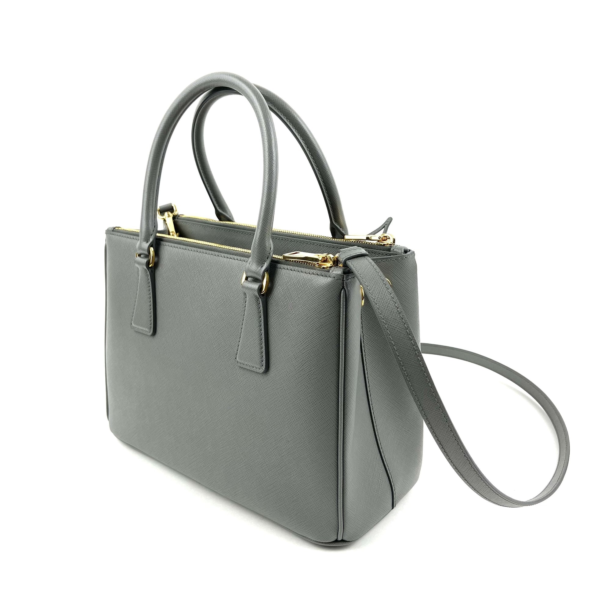 PRADA Small Saffiano Cuir Tote w/Strap - Grey
