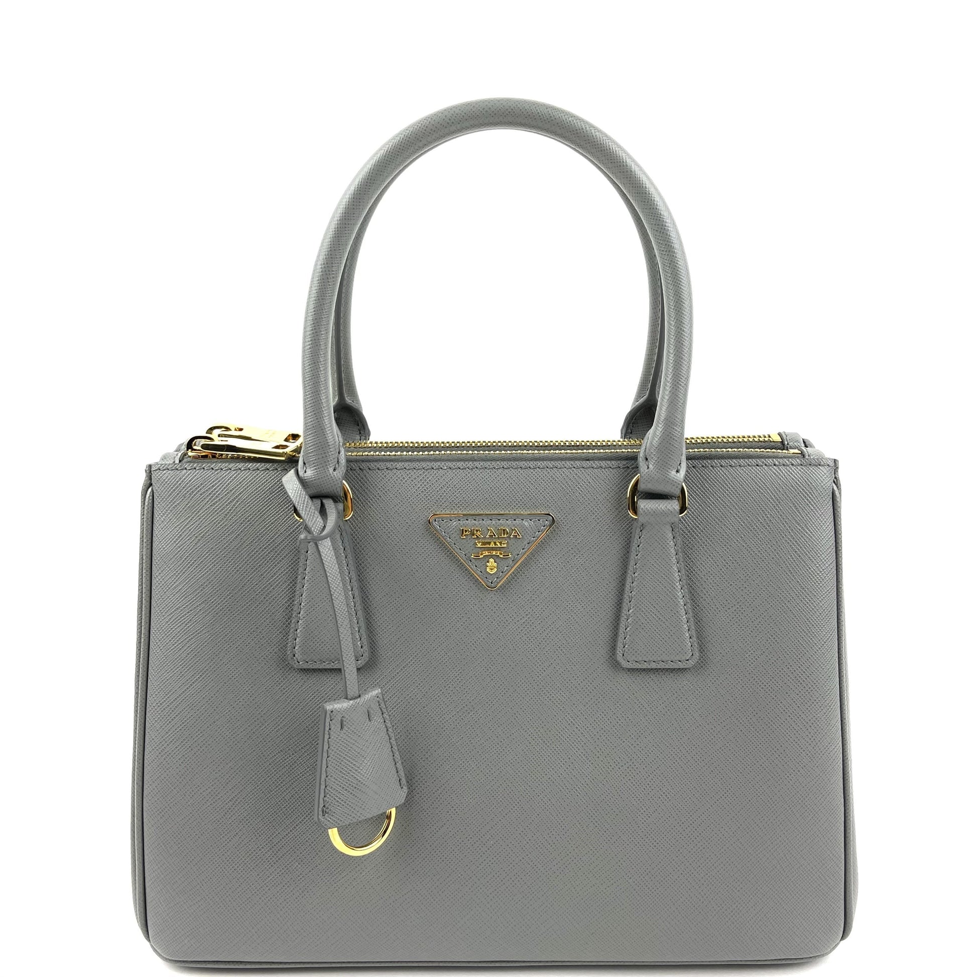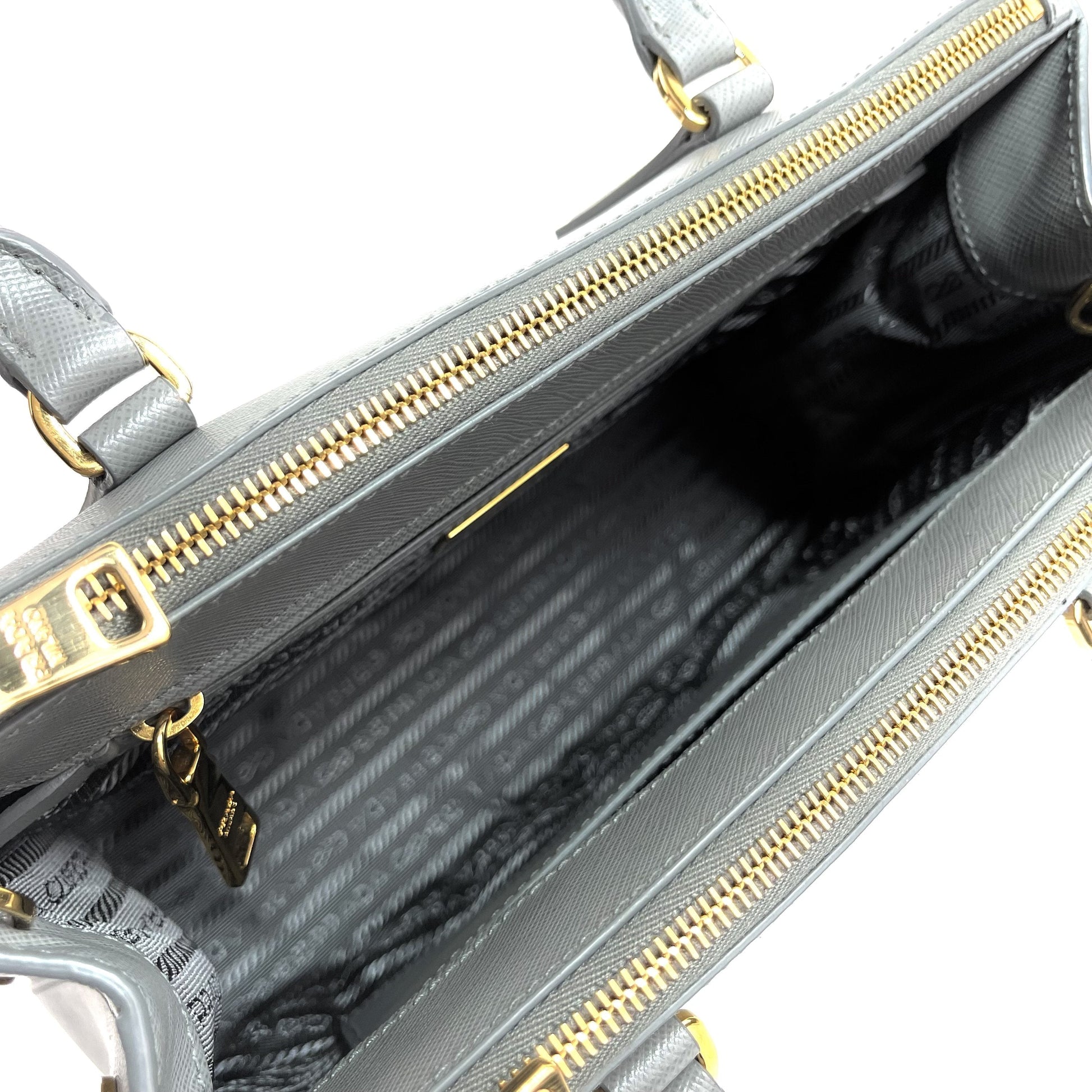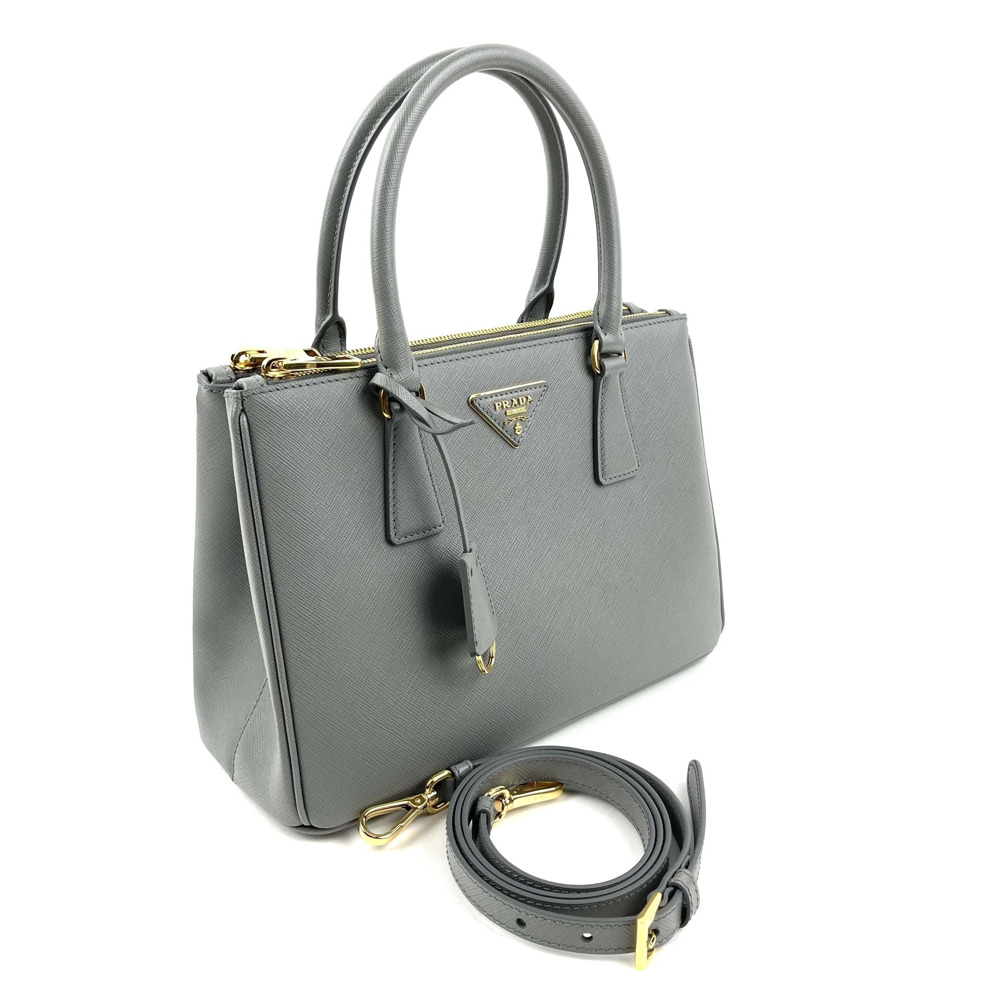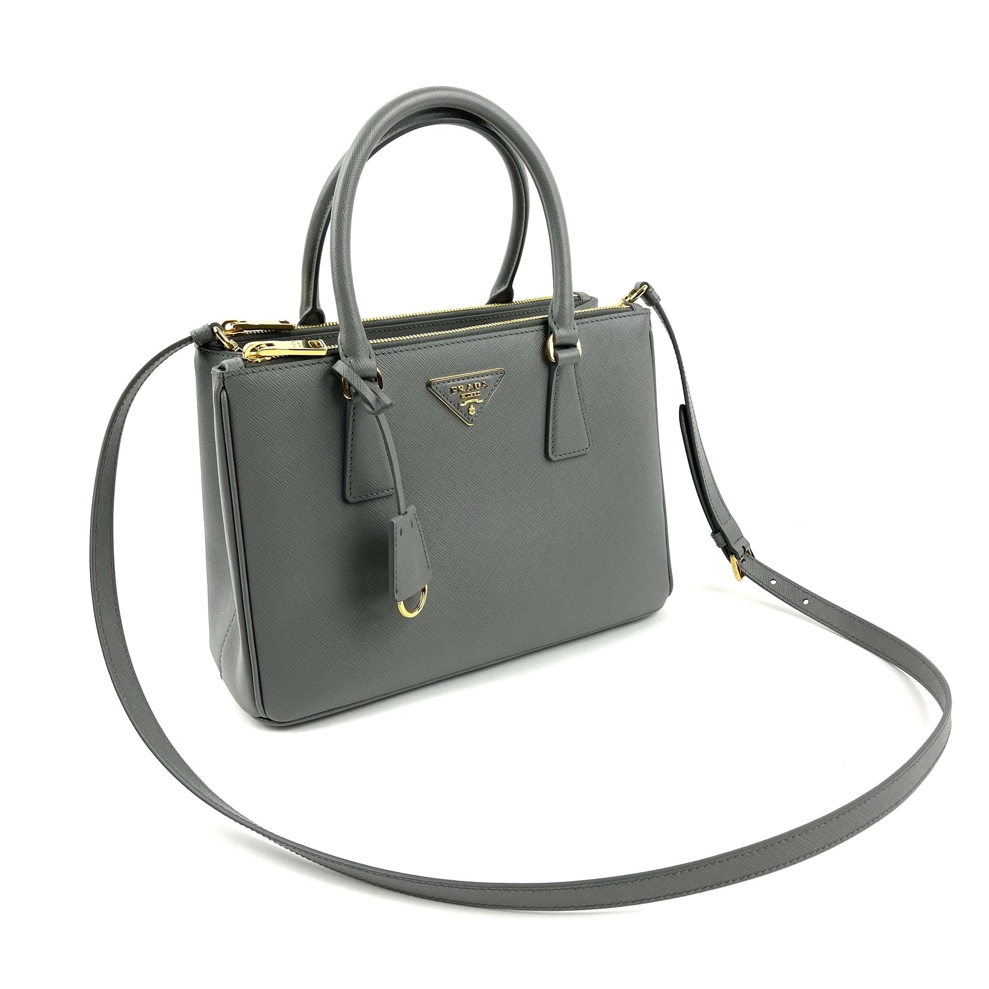 PRADA Small Saffiano Cuir Tote w/Strap - Grey