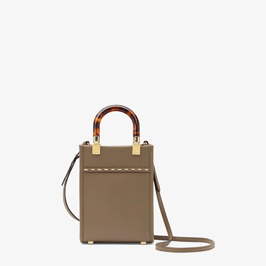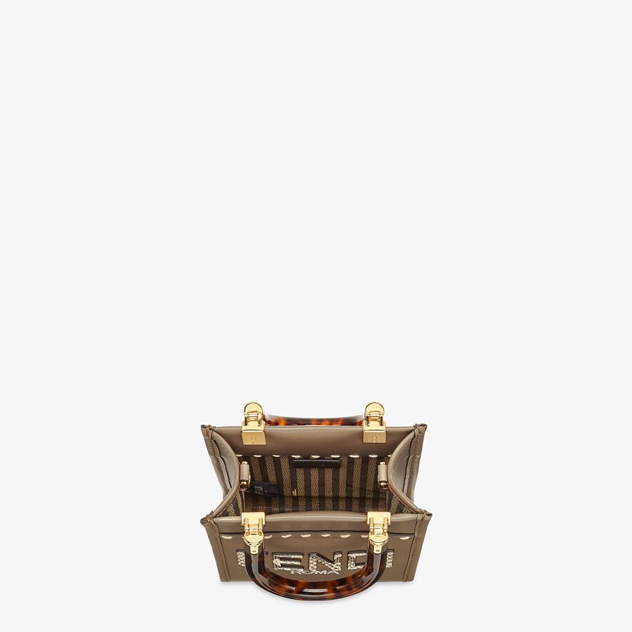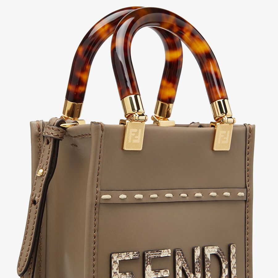 Mini Sunshine Shopper bag made of gray leather with FENDI ROMA lettering in python-look printed elaphe and stiff tortoiseshell-effect plexiglass handles.
