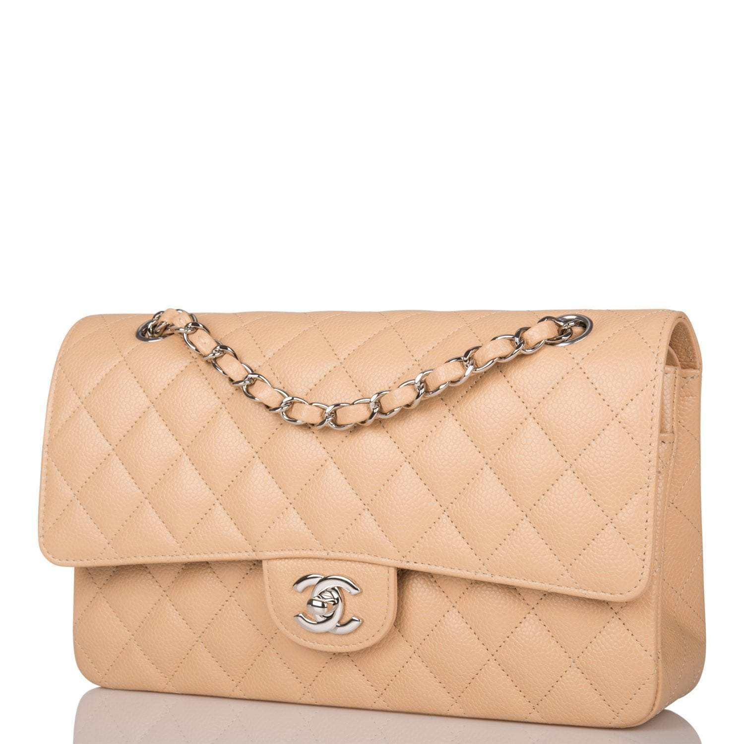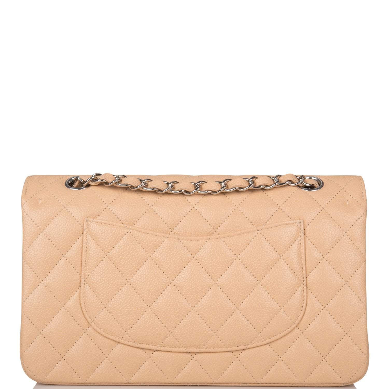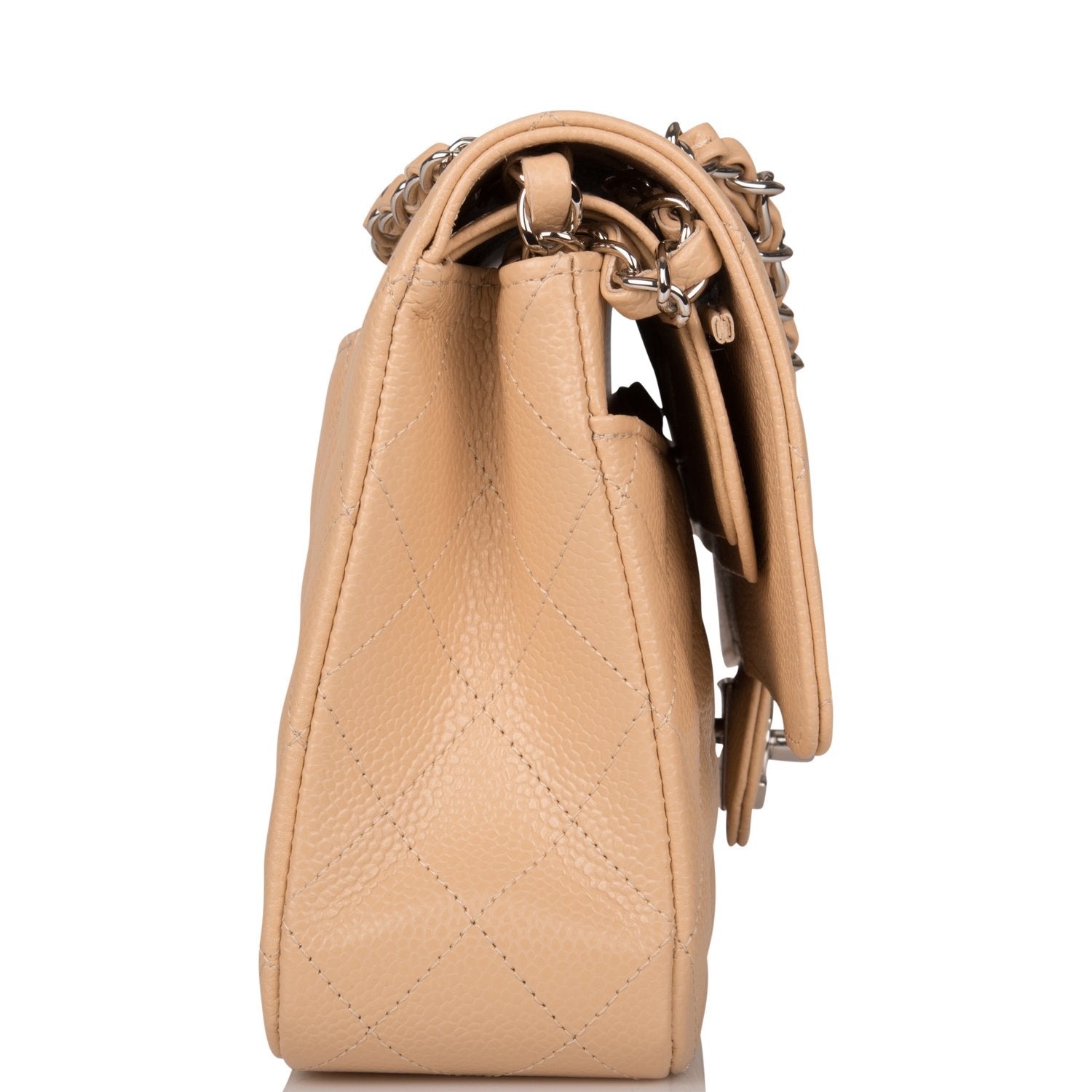 Chanel Beige Quilted Caviar Medium Classic Double Flap Bag Silver Hardware