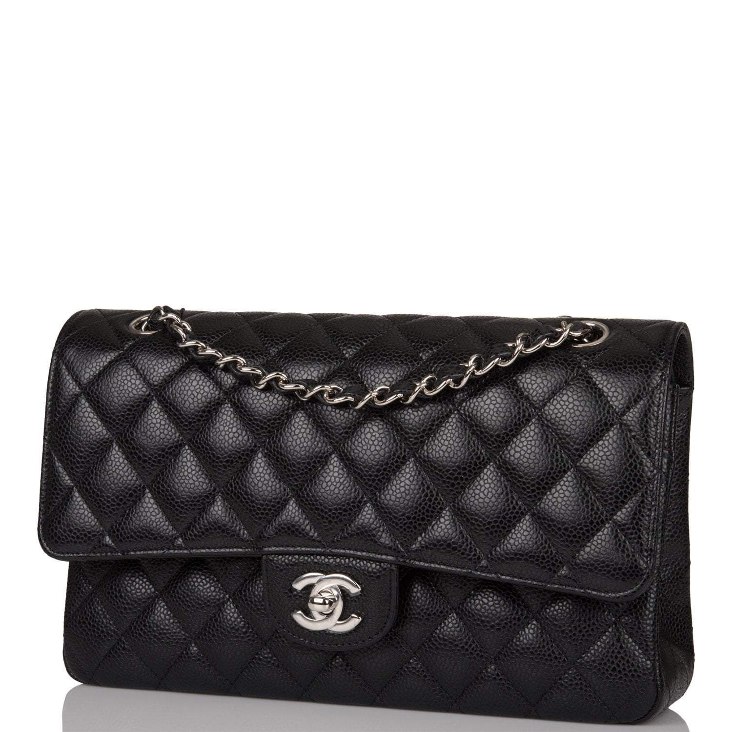 Chanel Medium Classic Double Flap Bag Black Quilted Caviar Silver Hardware